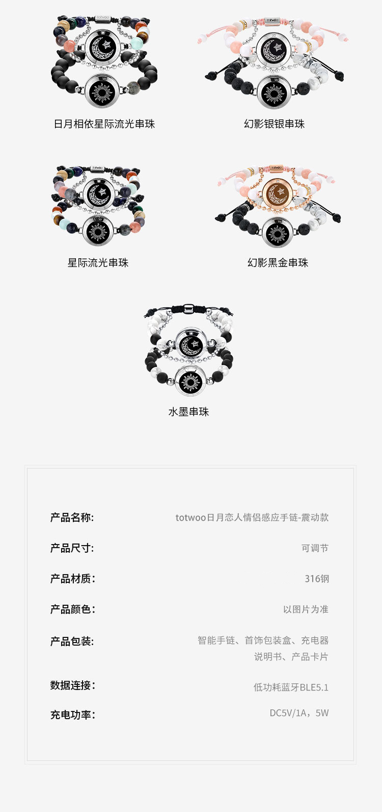 Totwoo Smart Sensor Couple Bracelet Sun and Moon Lovers Flashing Vibration Long-Distance Relationship Original Gift for Valentine's Day