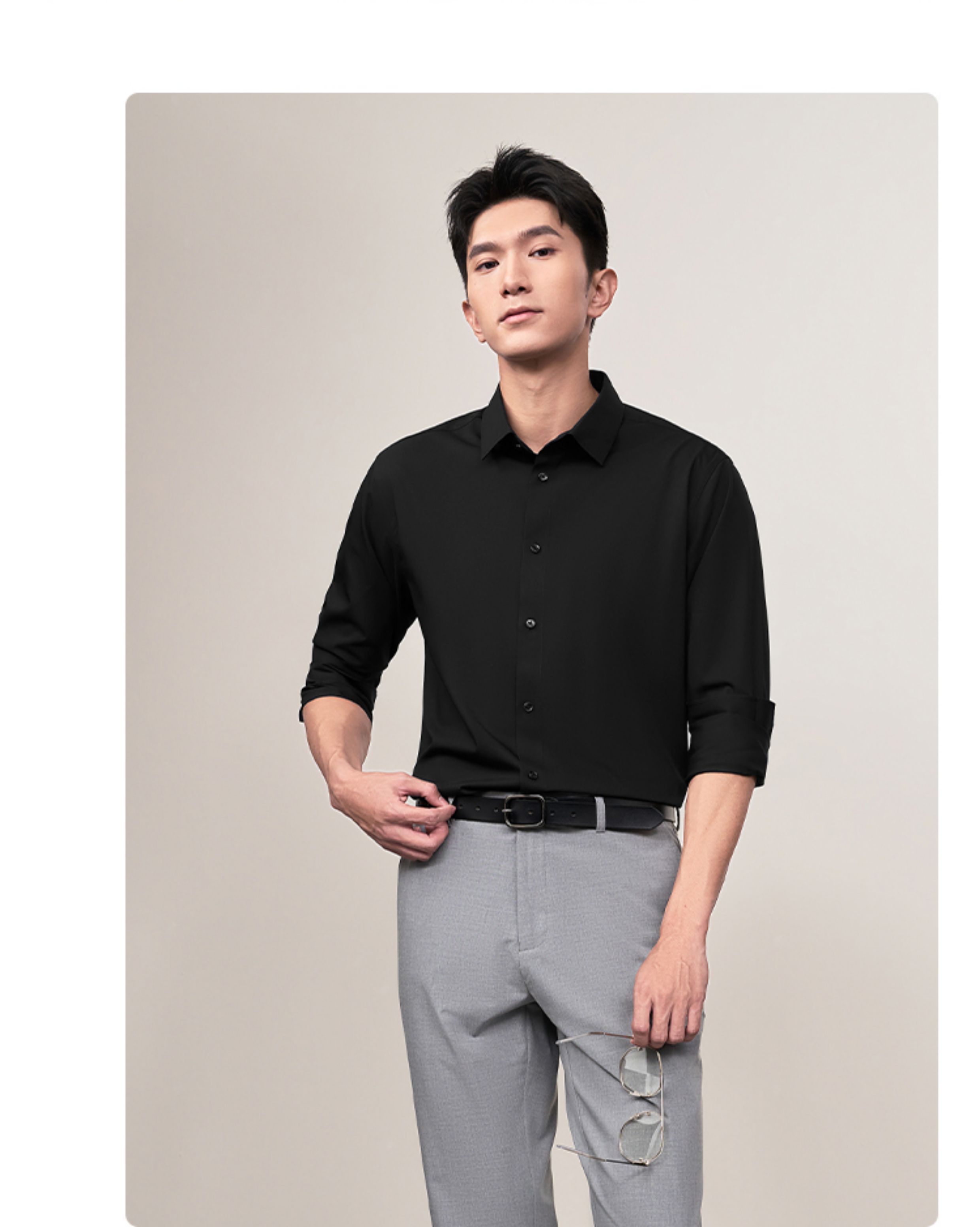 HLA Long-Sleeved White Shirt for Men, Wrinkle-Free Summer Shirt, Simple Business Black Work Shirt for Men