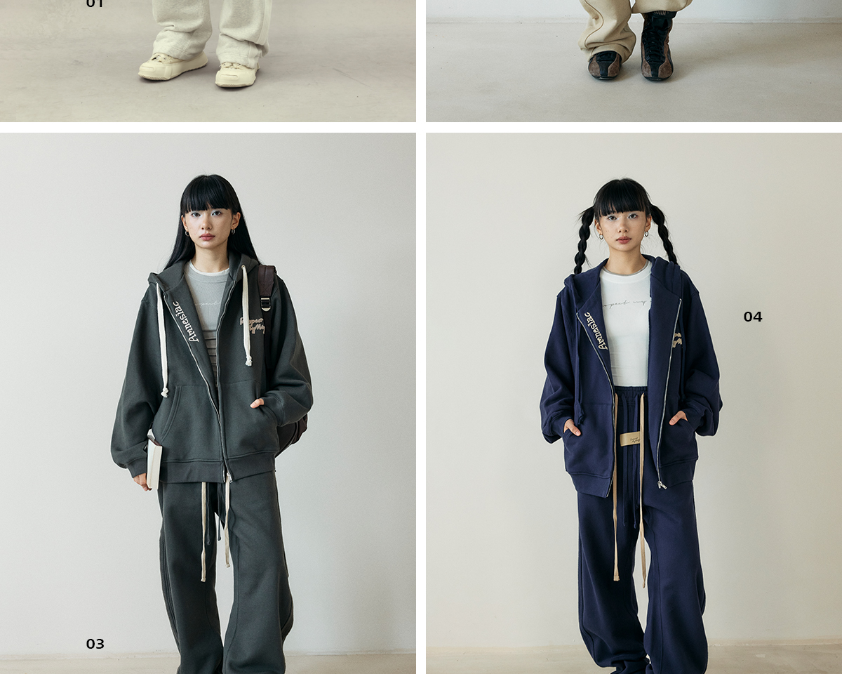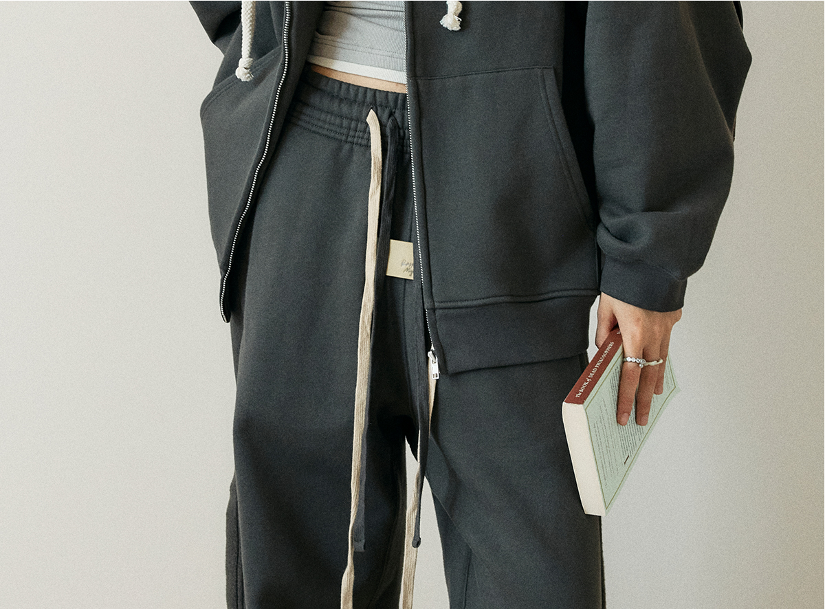 [Celebrity Style] Respect My Way Scimitar Loose Fleece-Lined Sweatpants Casual Pants Autumn and Winter Cleanfit