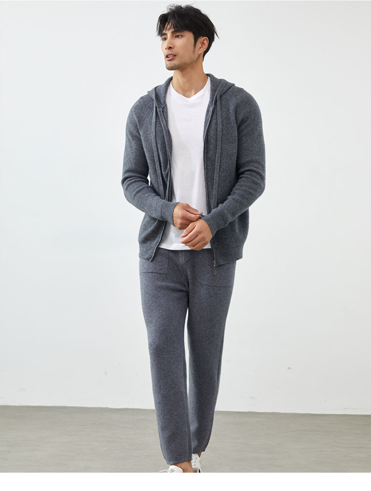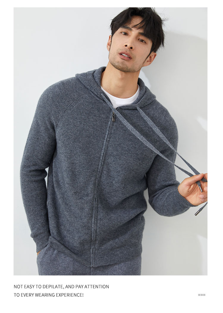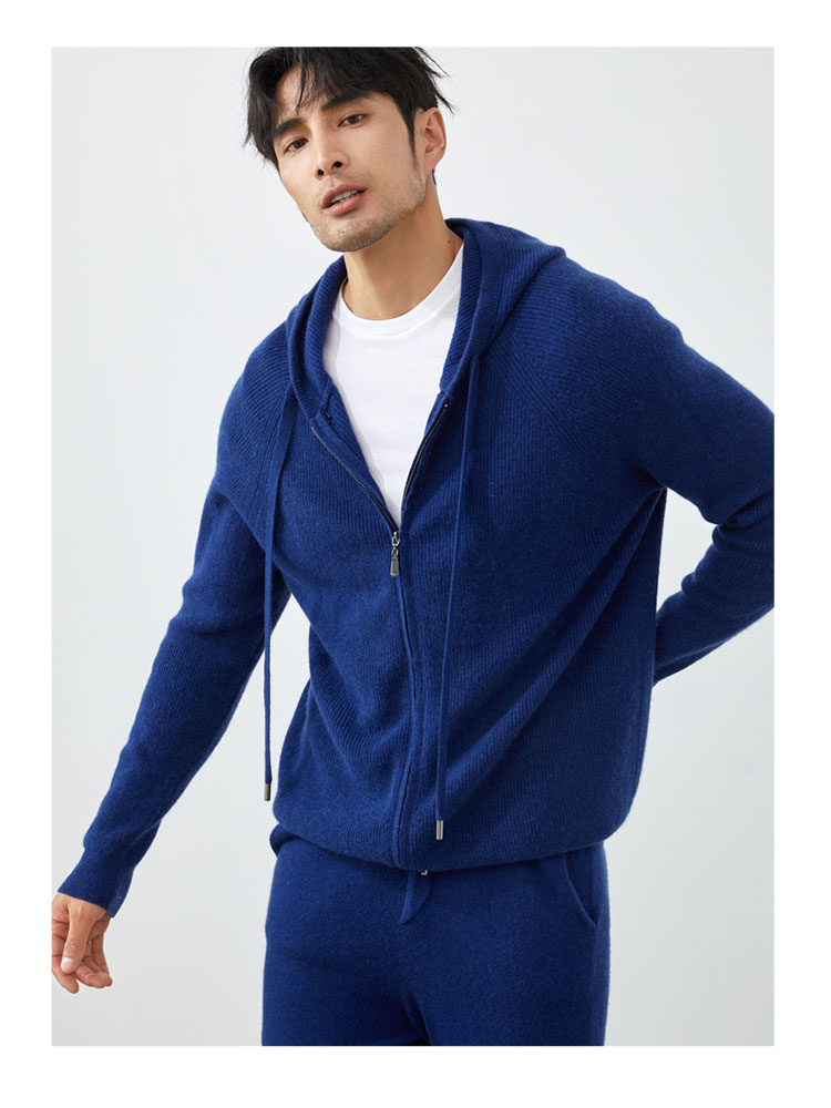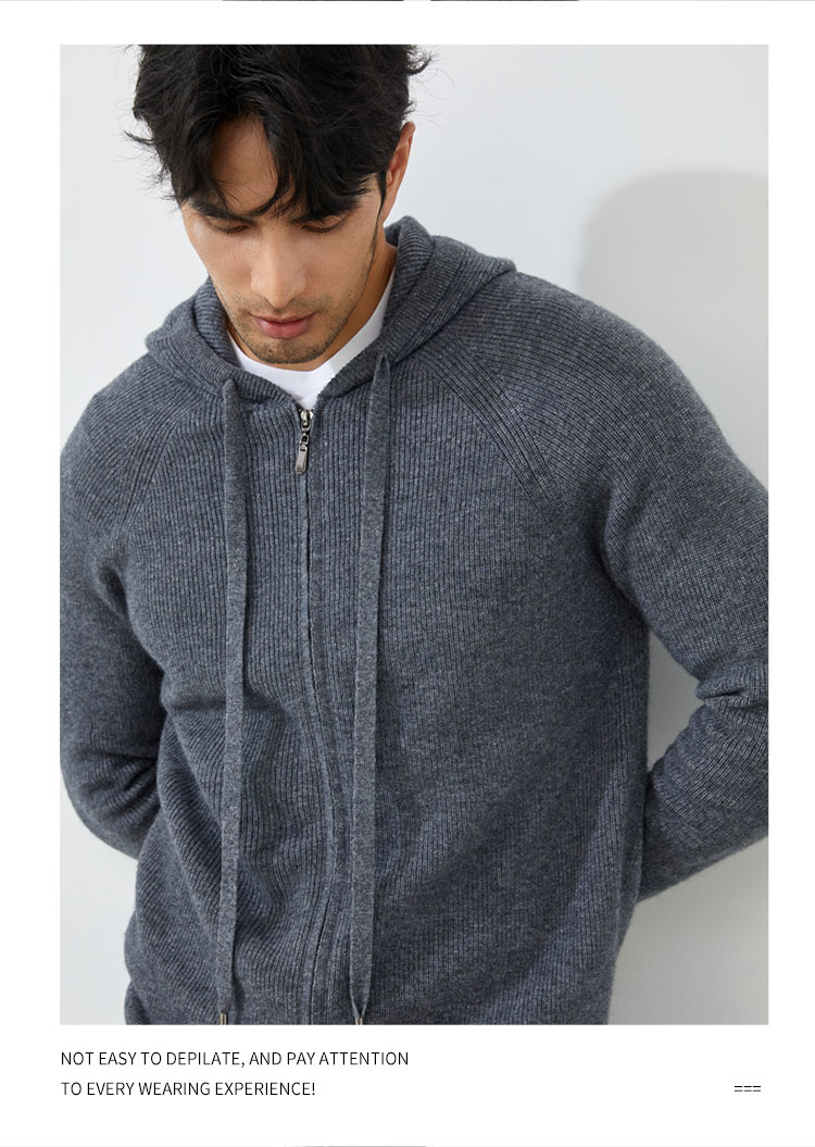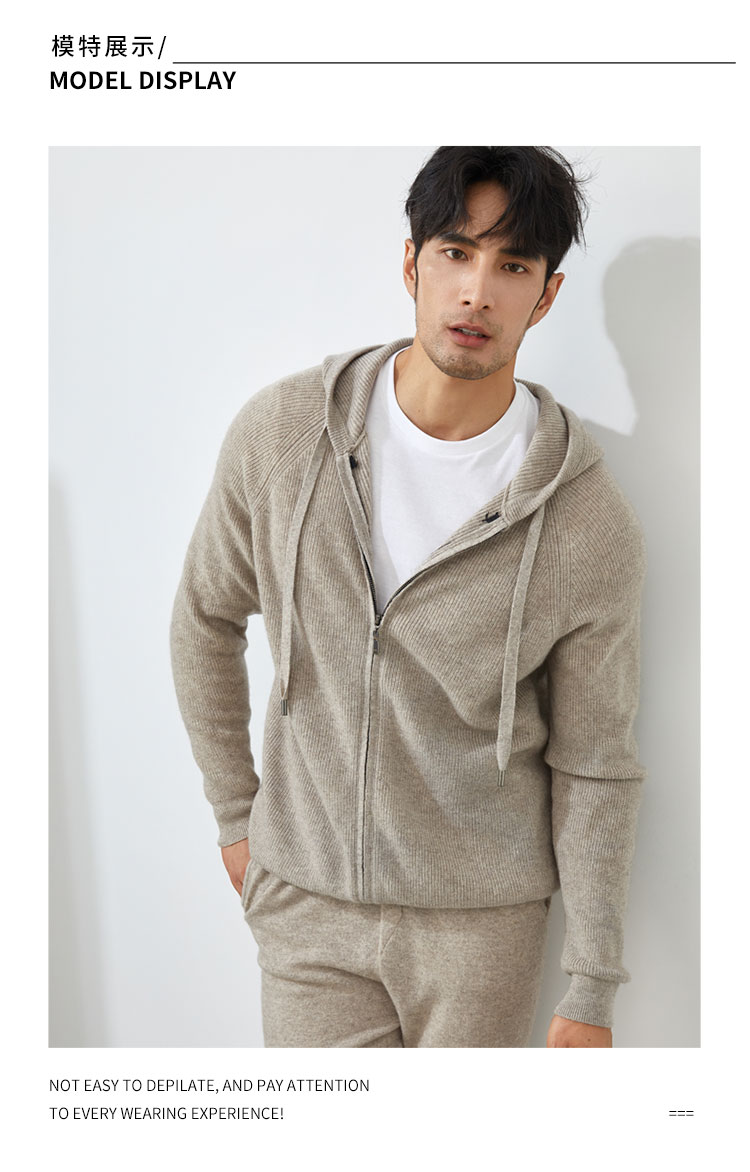 Autumn and Winter High-End Cashmere Knitted Jacket Sports Jogging Zipper Hooded Cardigan Knitted Casual Sports Top for Men