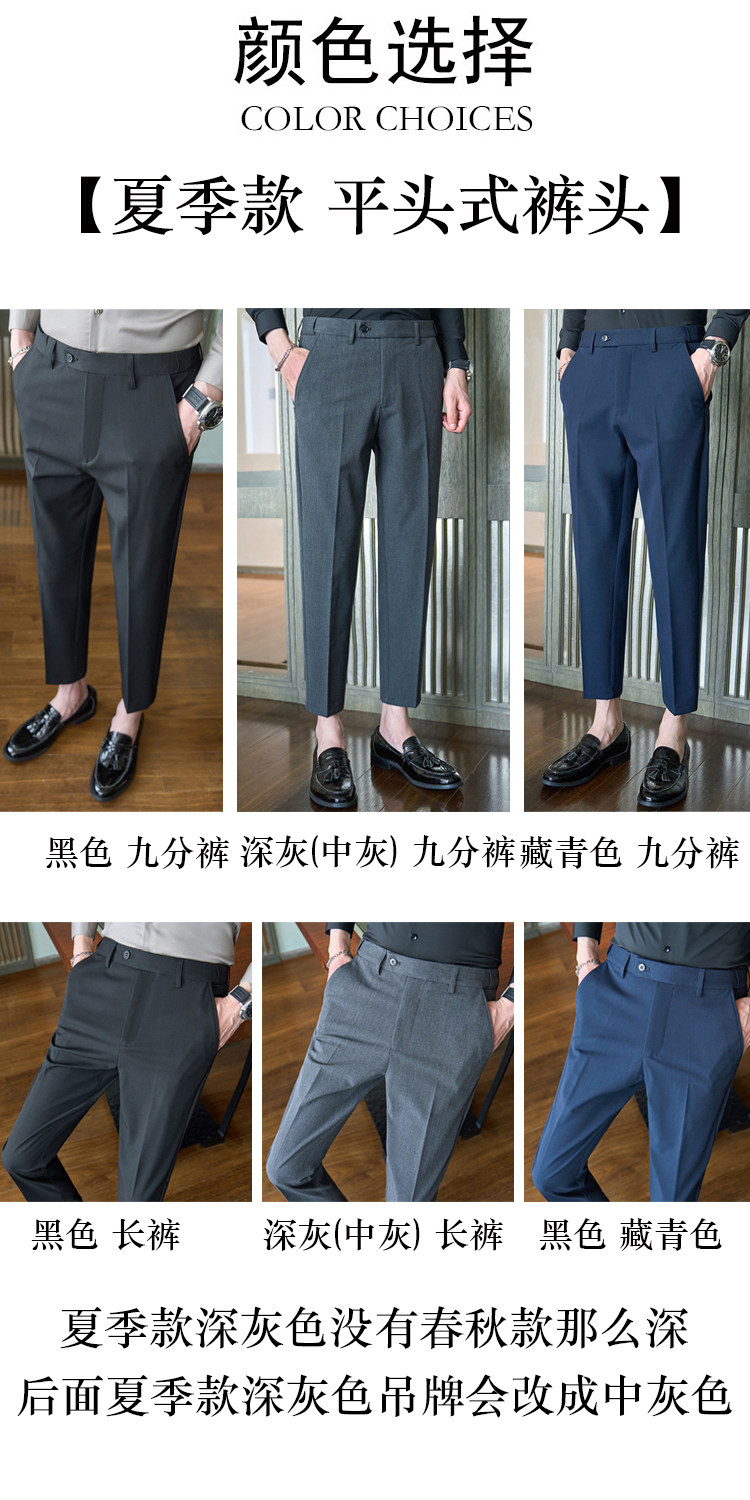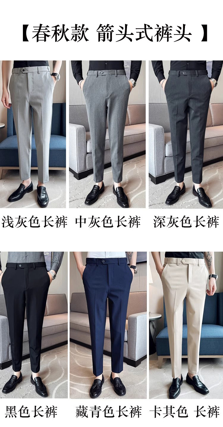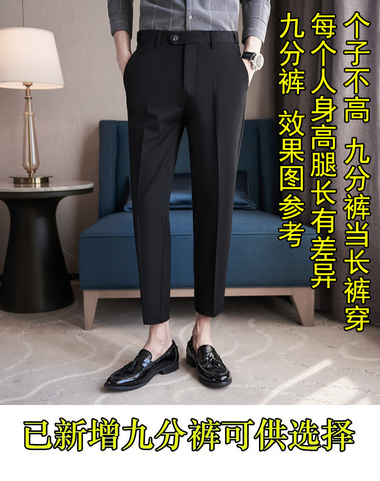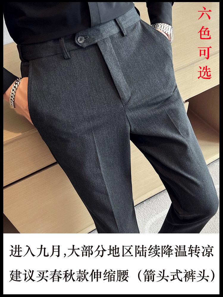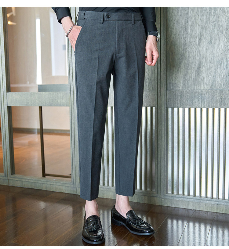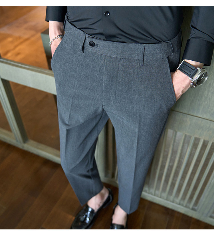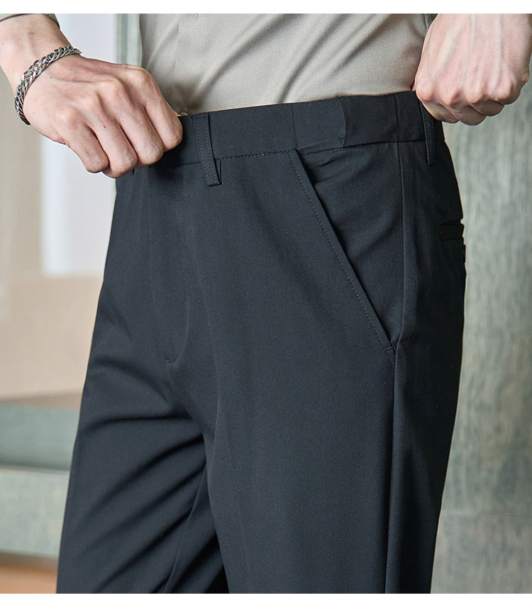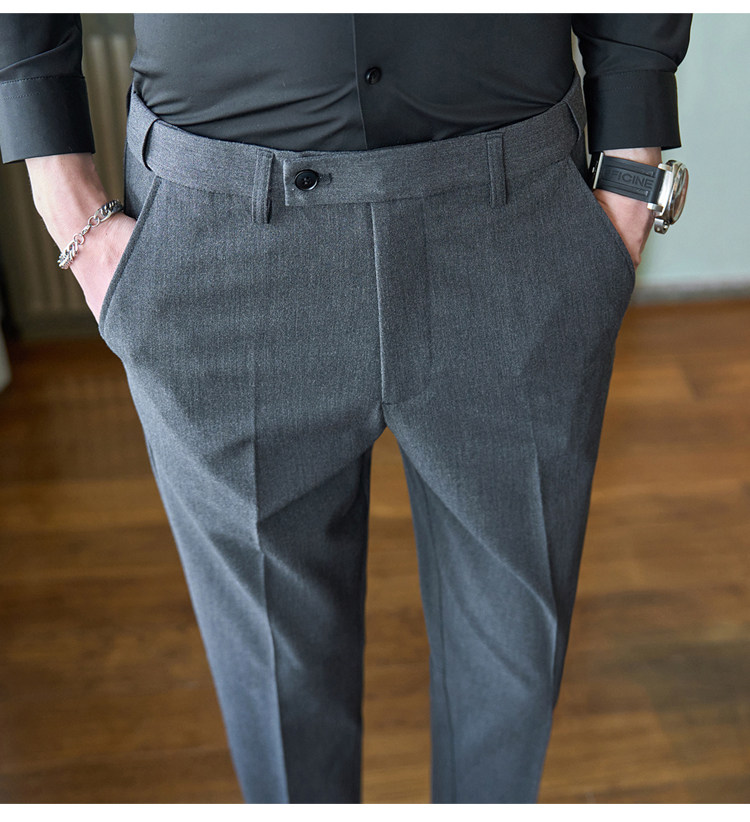 Invisible Elastic Waist Dress Pants for Men, High-End Slim Fit Cropped Pants, Spring and Autumn Style, Men's Business Formal Casual Long Trousers