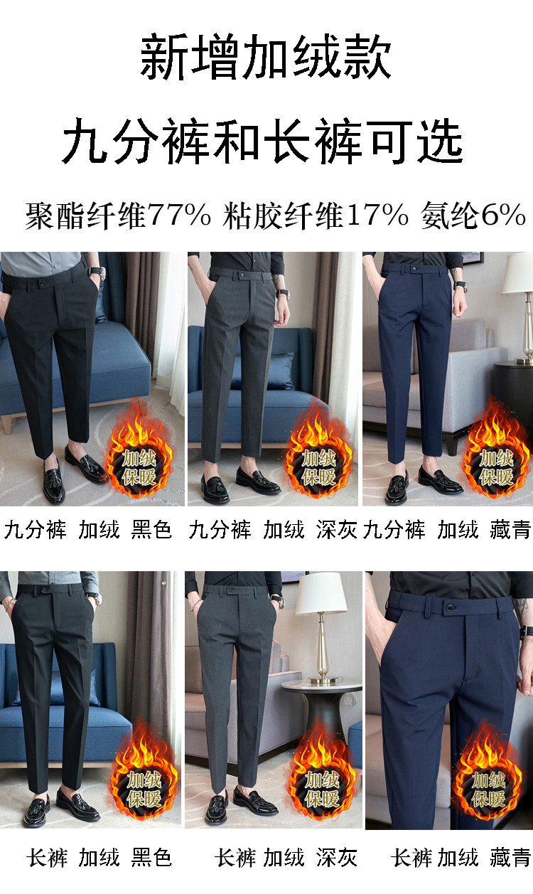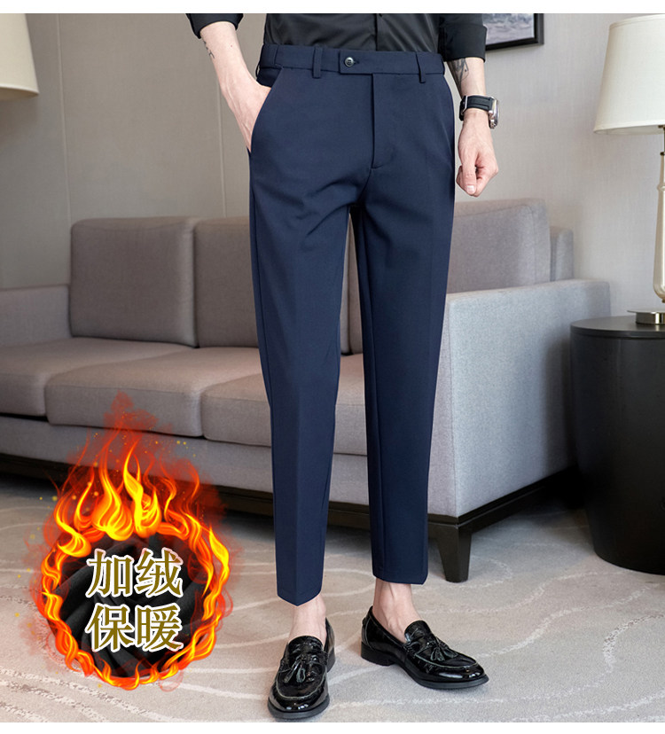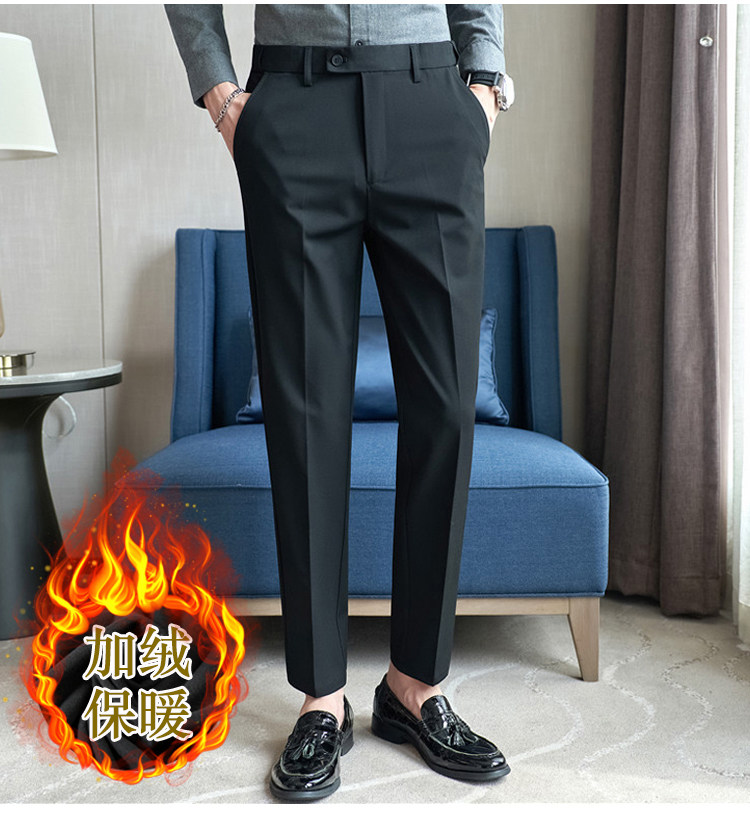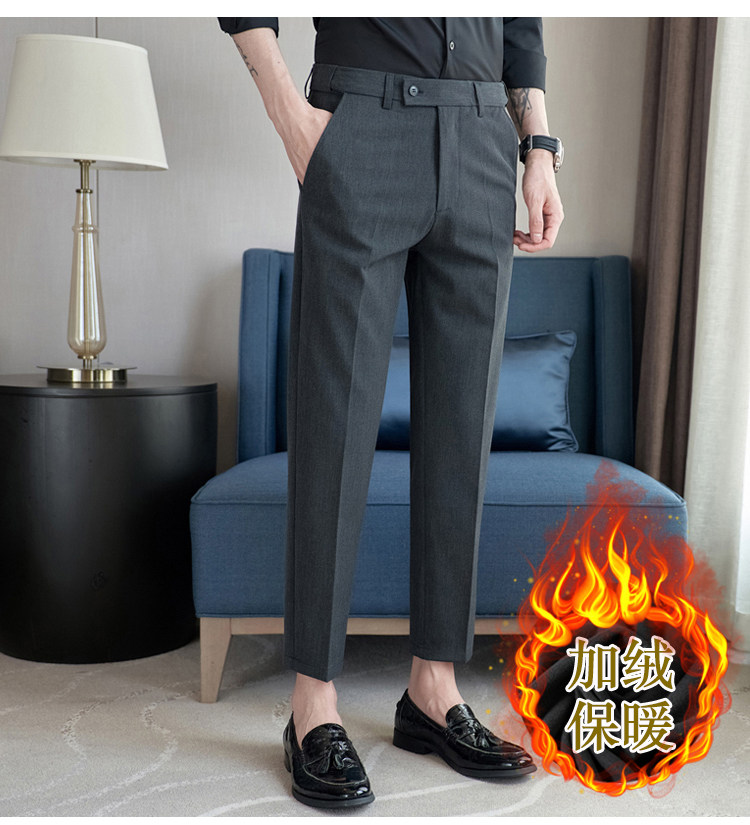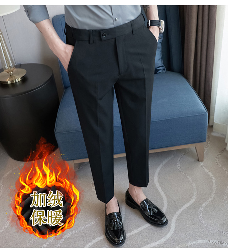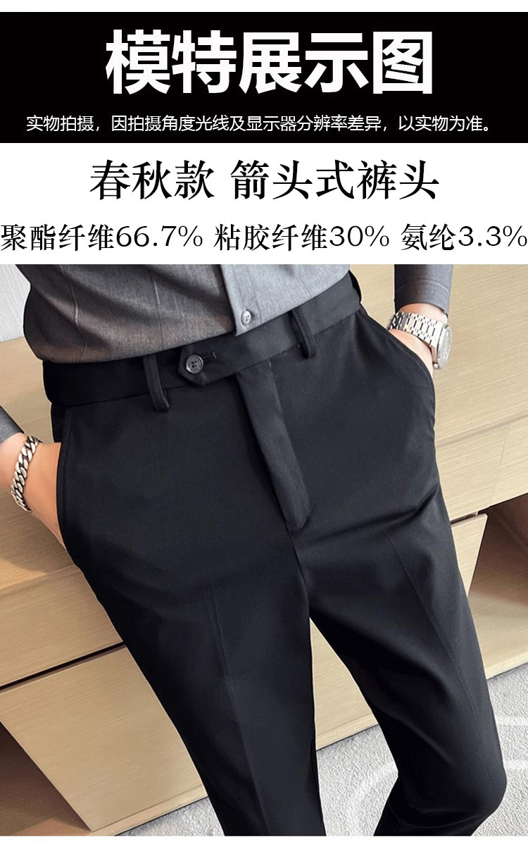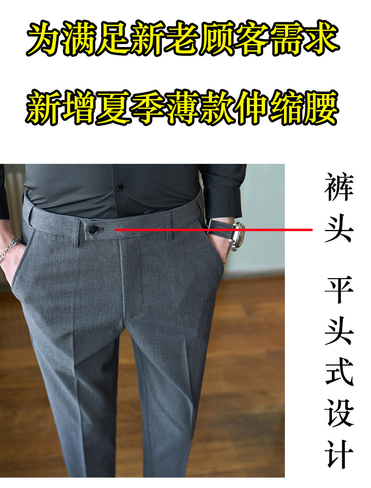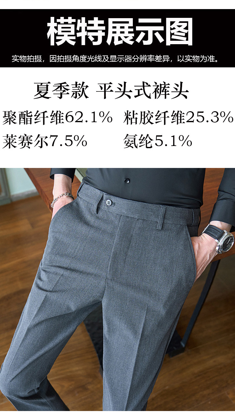 Invisible Elastic Waist Dress Pants for Men, High-End Slim Fit Cropped Pants, Spring and Autumn Style, Men's Business Formal Casual Long Trousers