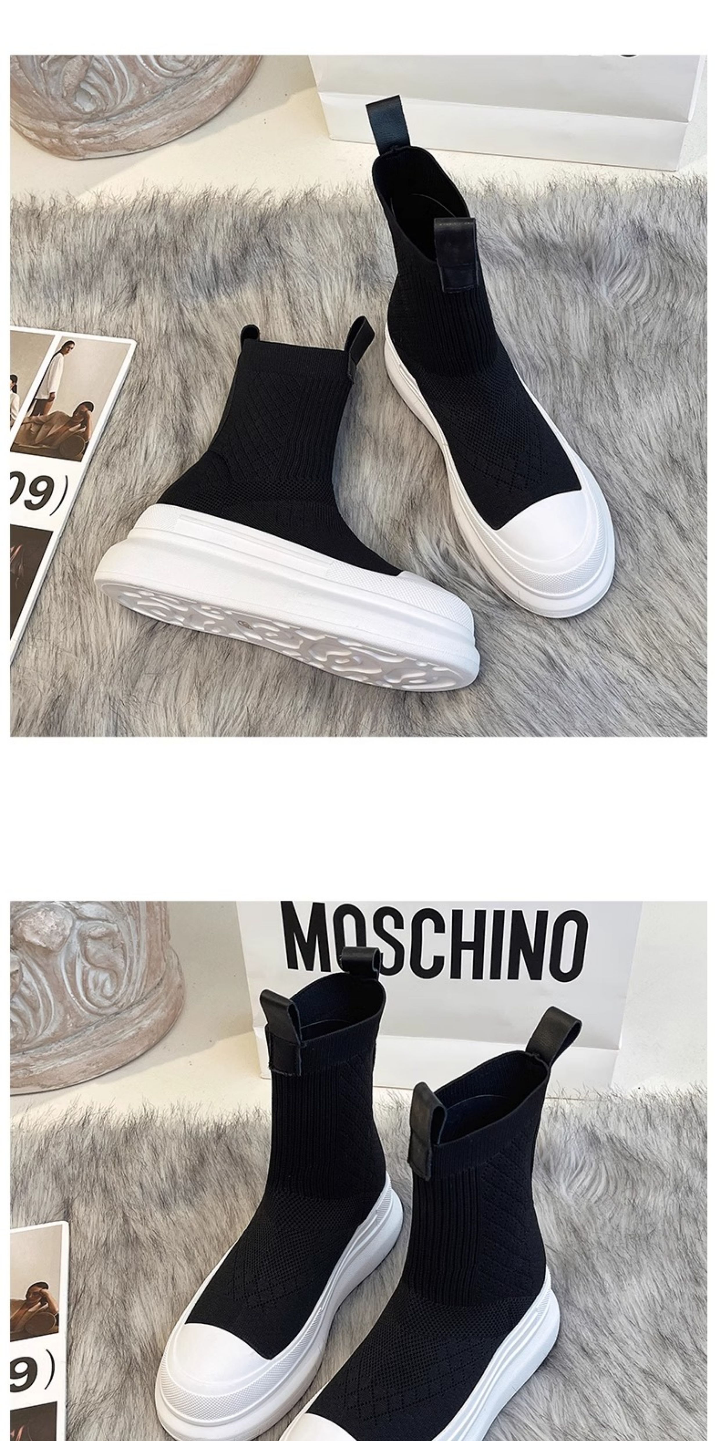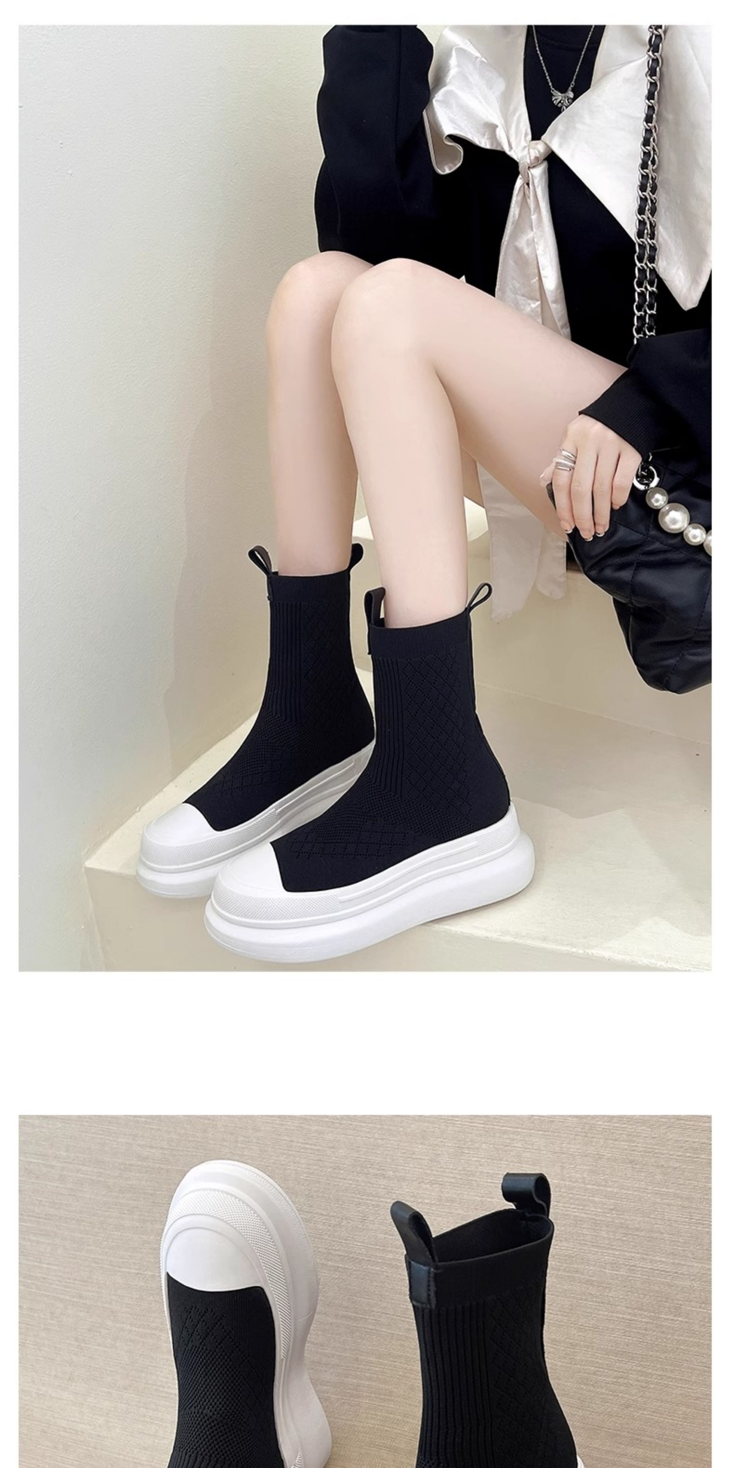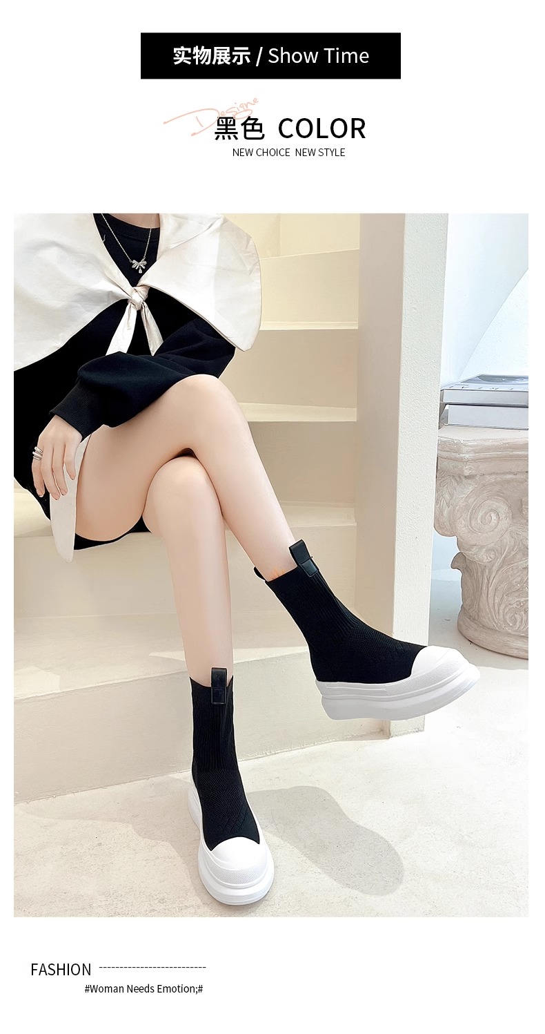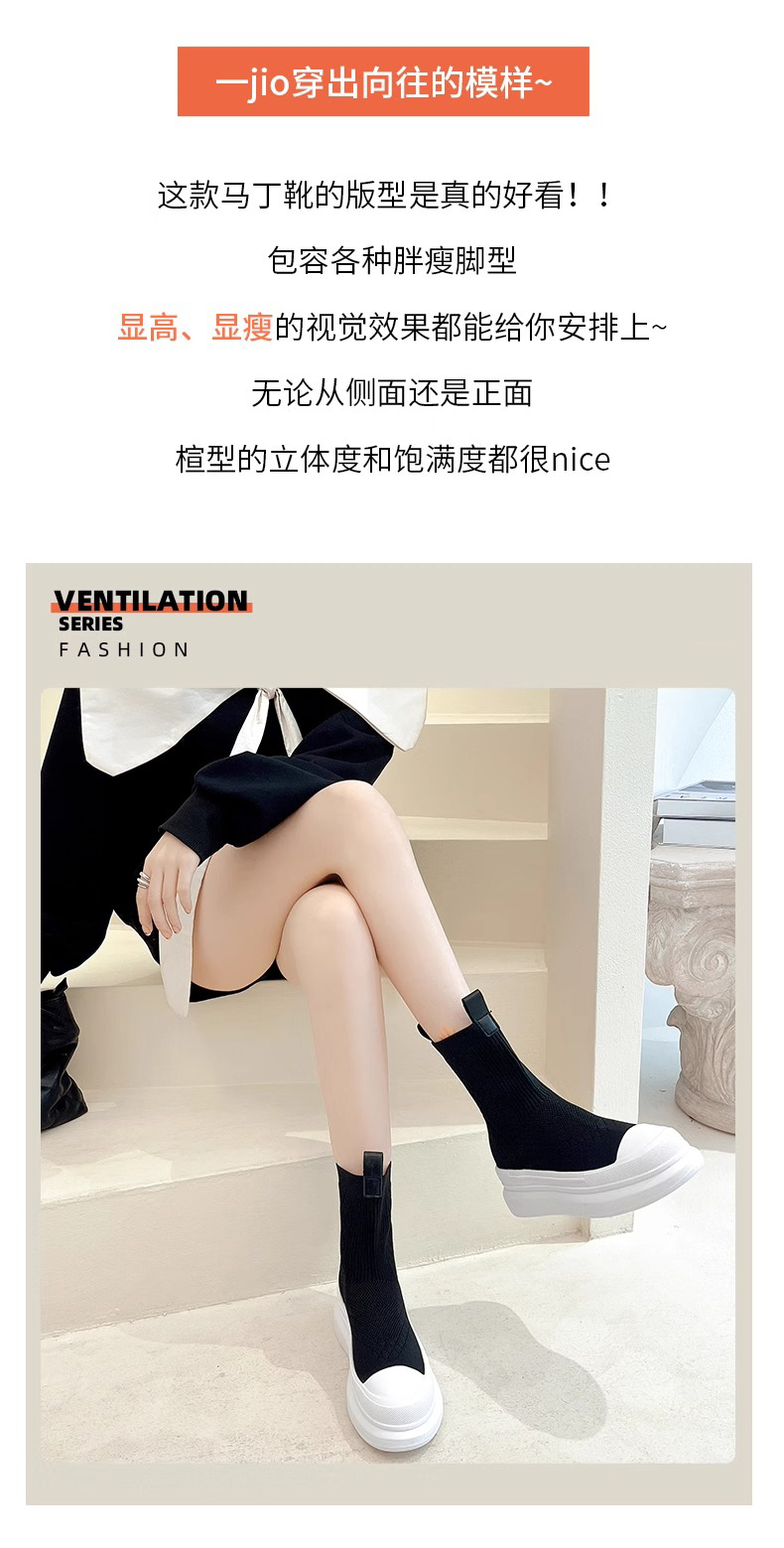 Hong Kong 2025 Fly-Knit Breathable Single Boots Platform Thick-Soled Sock Boots Short Boots Women's Slim Boots Knitted Casual High-Top Shoes