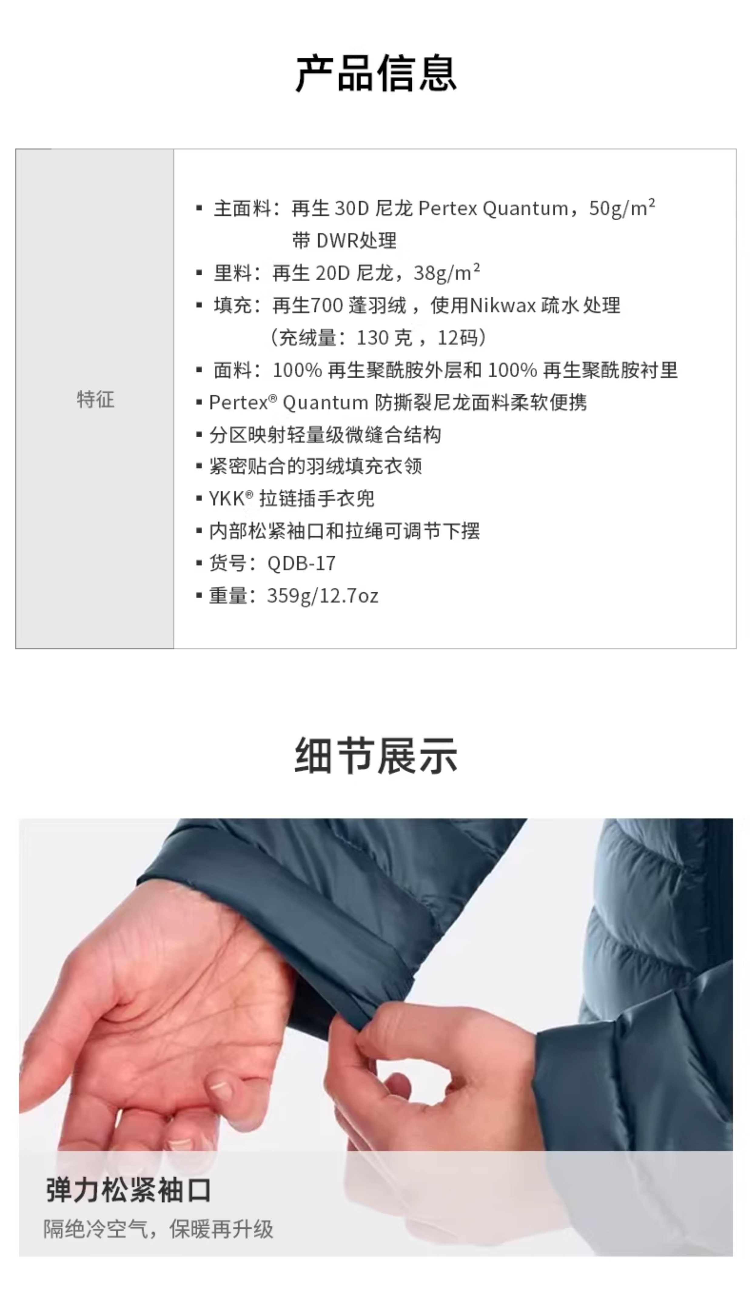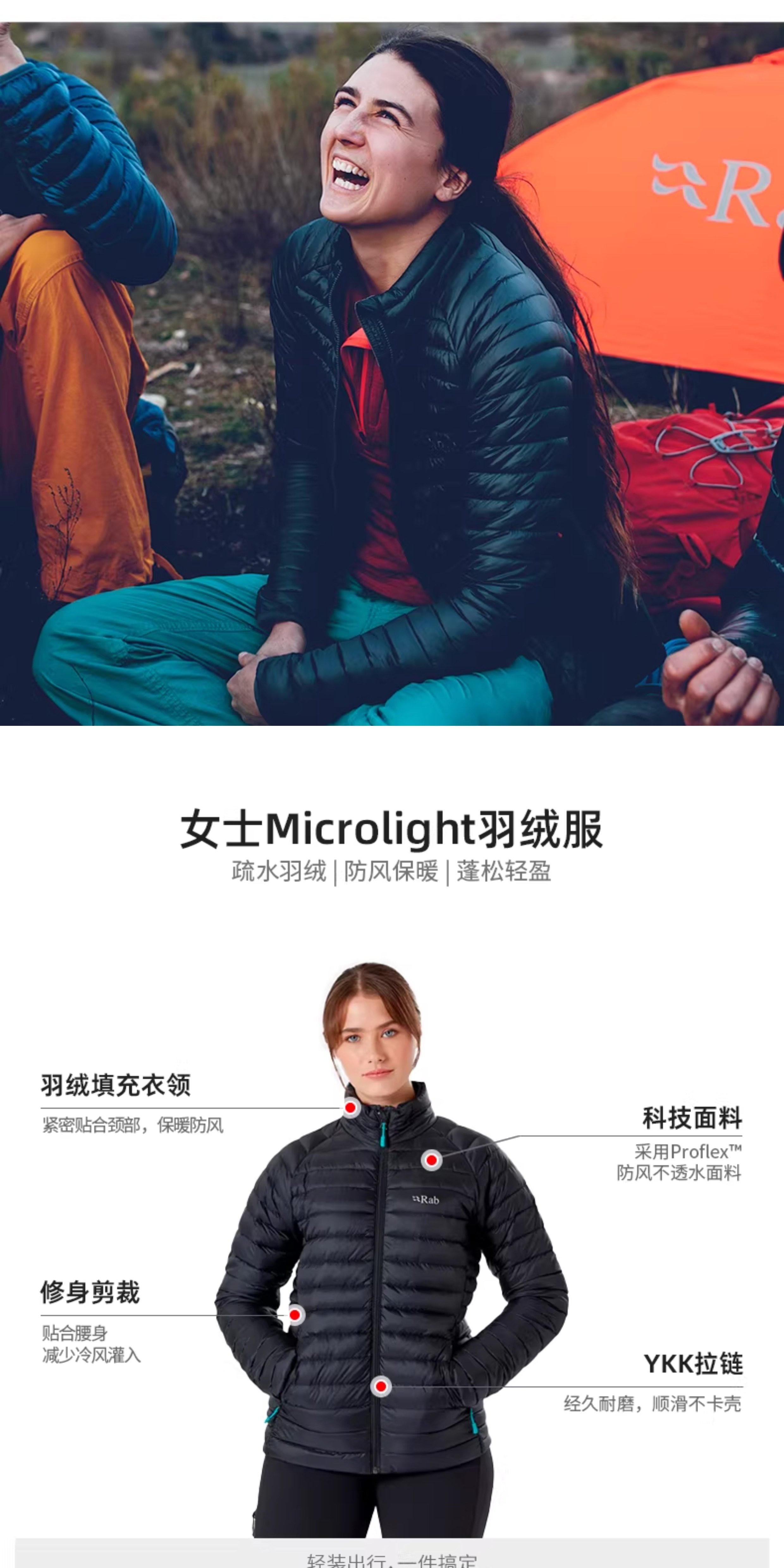 Rab Ruipu Microlight Women's 700 Puff Lightweight down Jacket Warm Slim Fit Sports Jacket Qdb-17