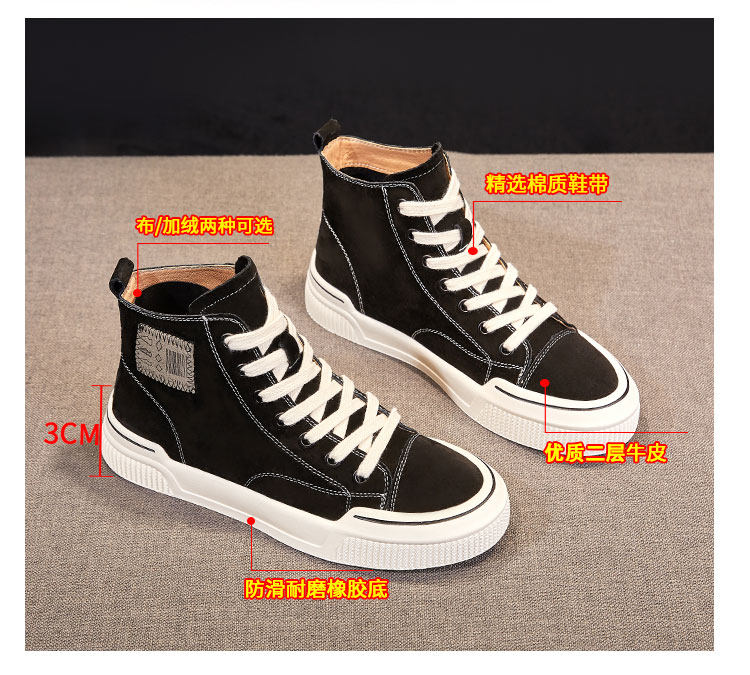 Hong Kong Genuine Leather High-Top Shoes, Little Black Shoes for Women, 2026 Autumn and Spring New Style, Internet Celebrity Flat Shoes, Casual and Comfortable for Sports