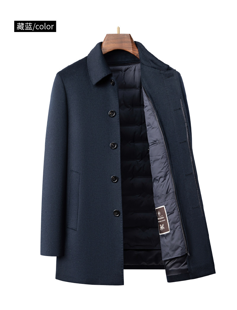 Pierre Cardin Cashmere Coat for Men, Autumn and Winter Woolen Trench Coat, Thickened Lining for Middle-Aged and Elderly, Dad's Style