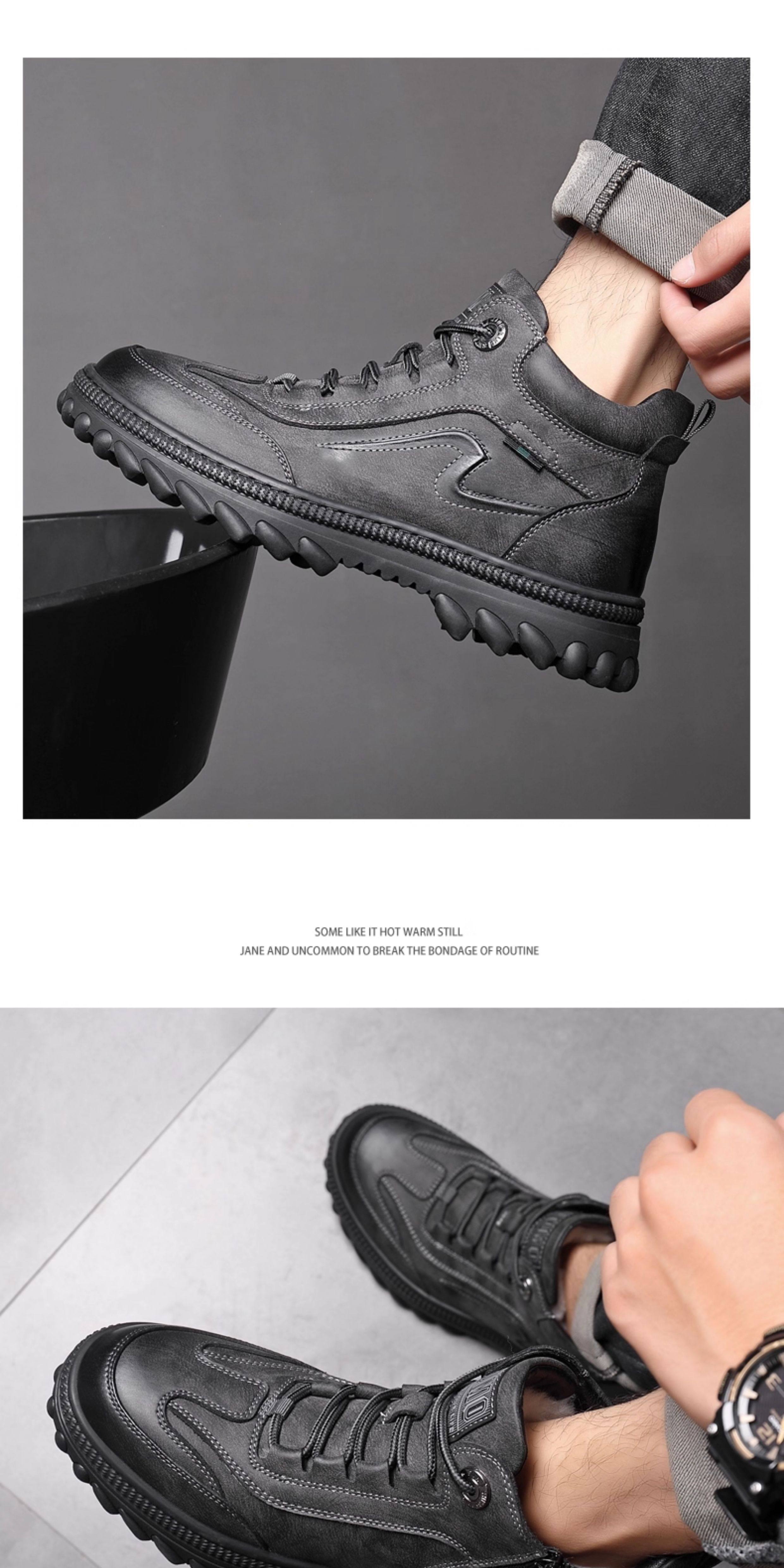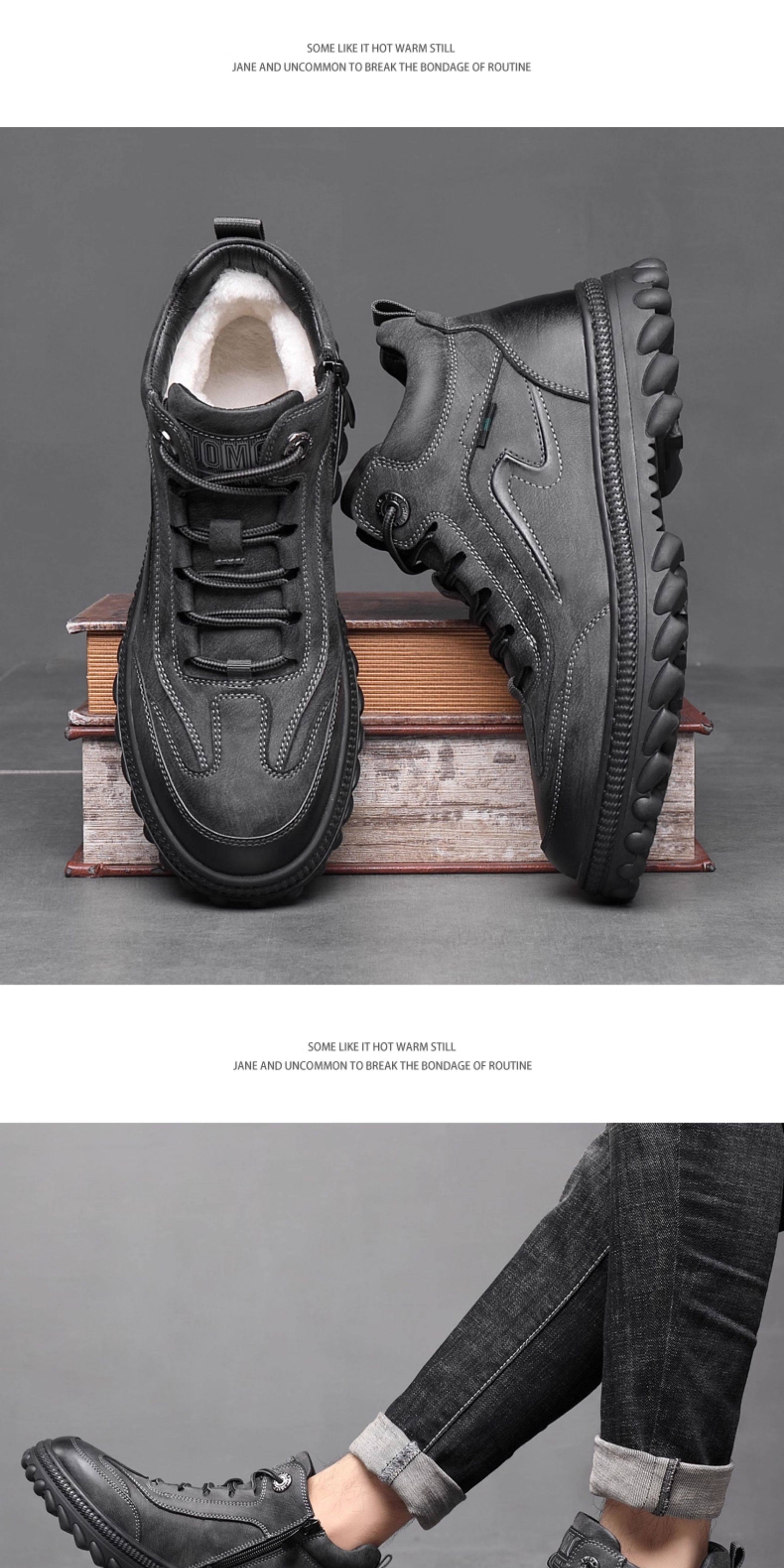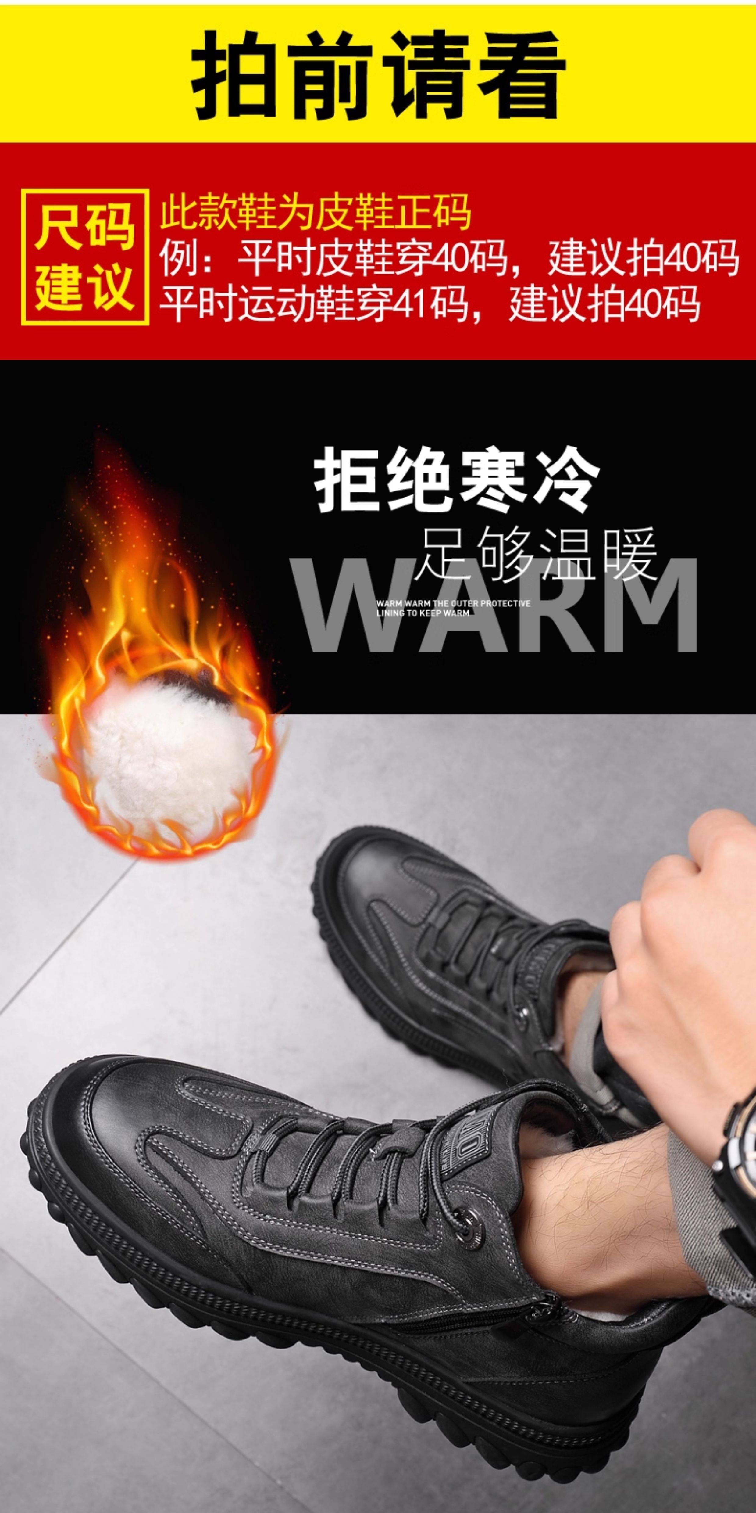 Men's Cotton Shoes, Genuine Leather, Wool, Fleece-Lined, Thickened, High-Top Casual Cotton Leather Shoes, Non-Slip, Warm Men's Shoes, Winter Snow Boots