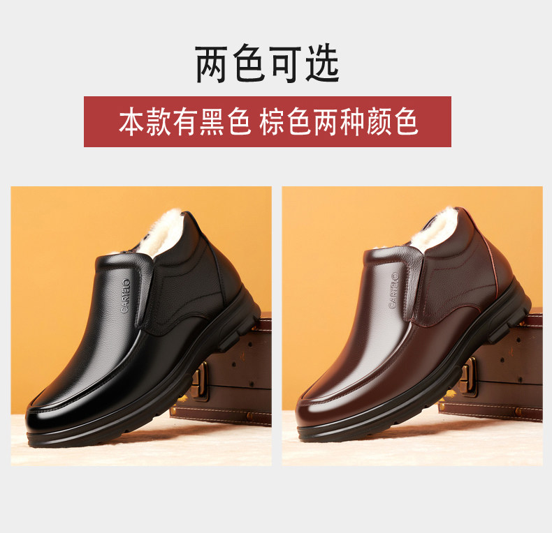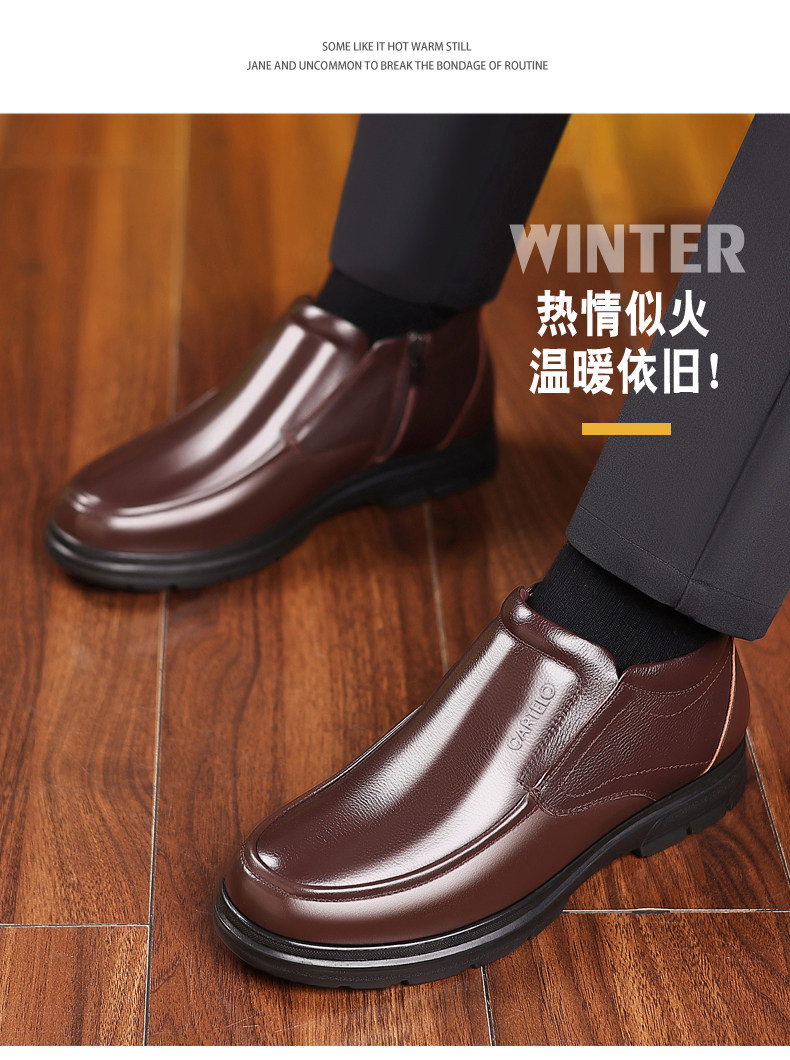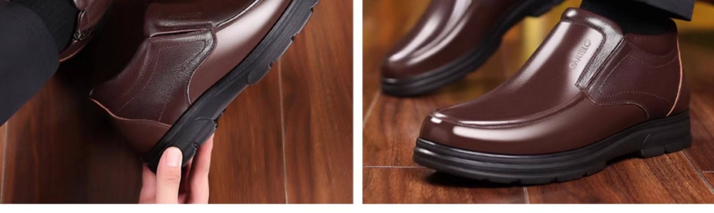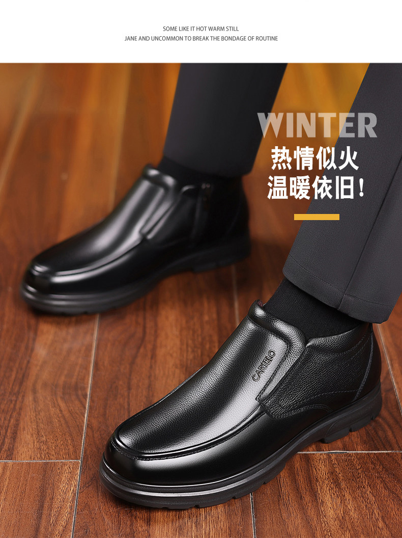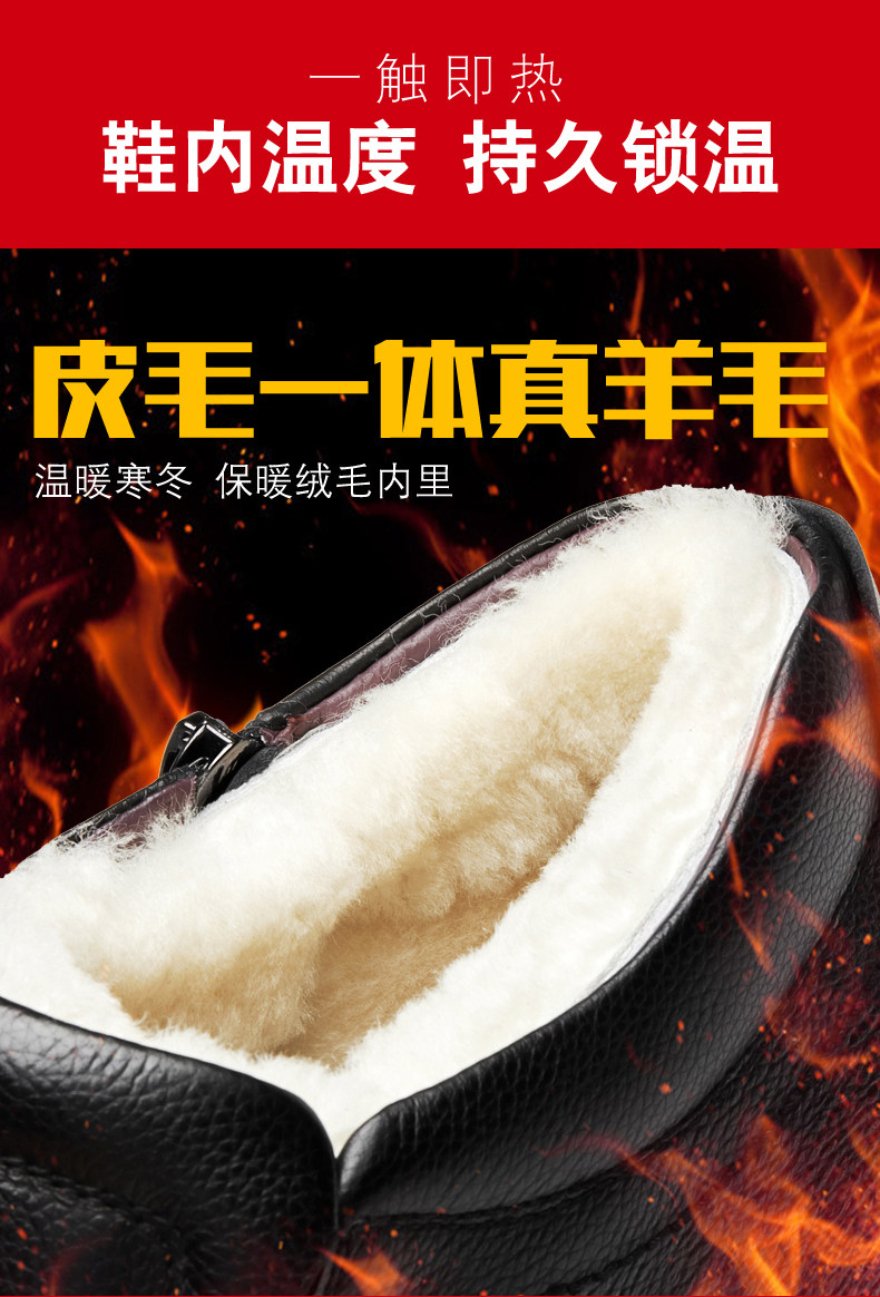 Winter Genuine Leather Wool Warm High-Top Cotton Shoes for Men, Slip-On Fleece-Lined Men's Leather Shoes, Cotton Leather Shoes for Middle-Aged and Elderly Dads