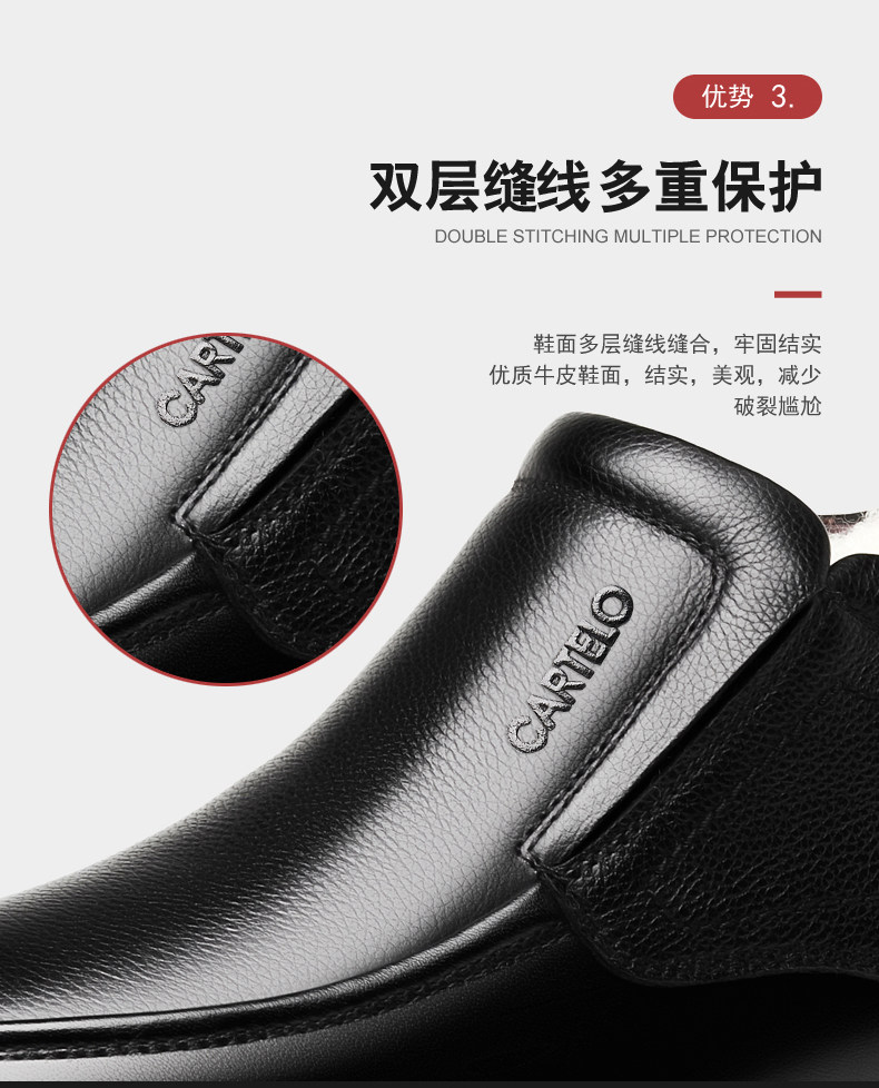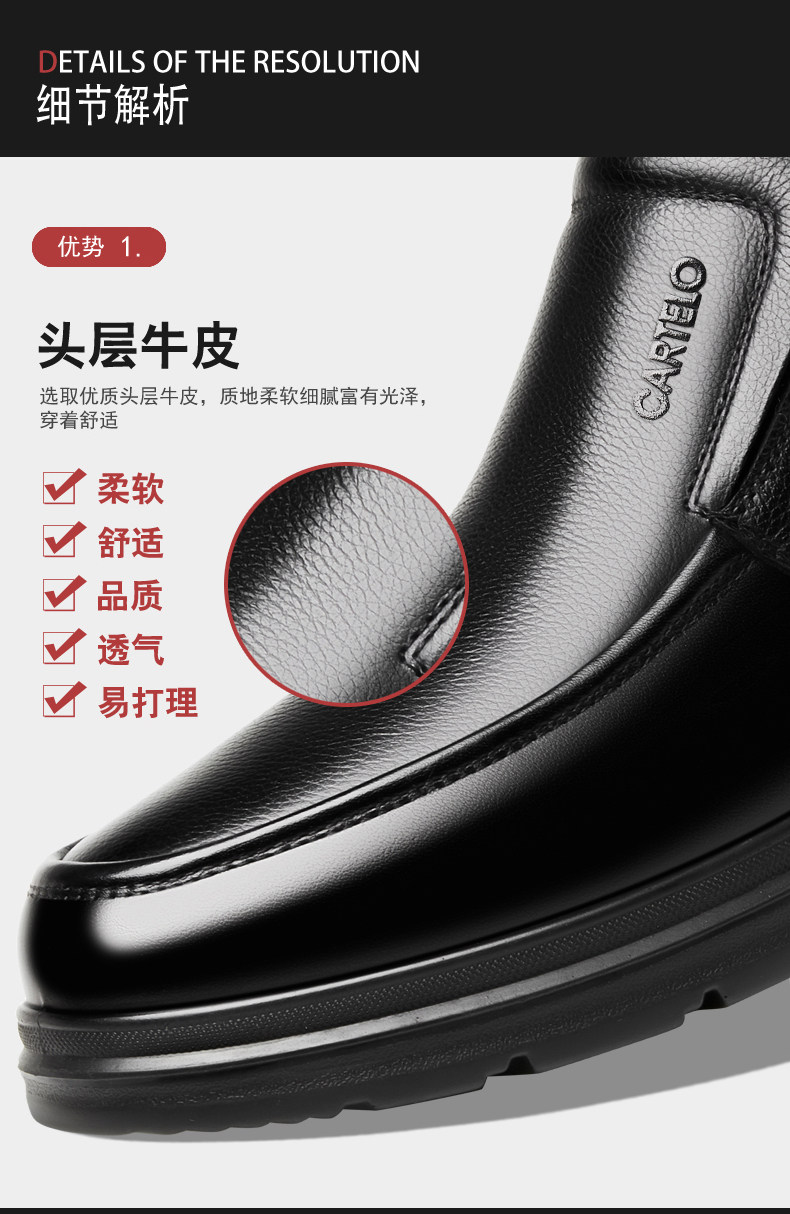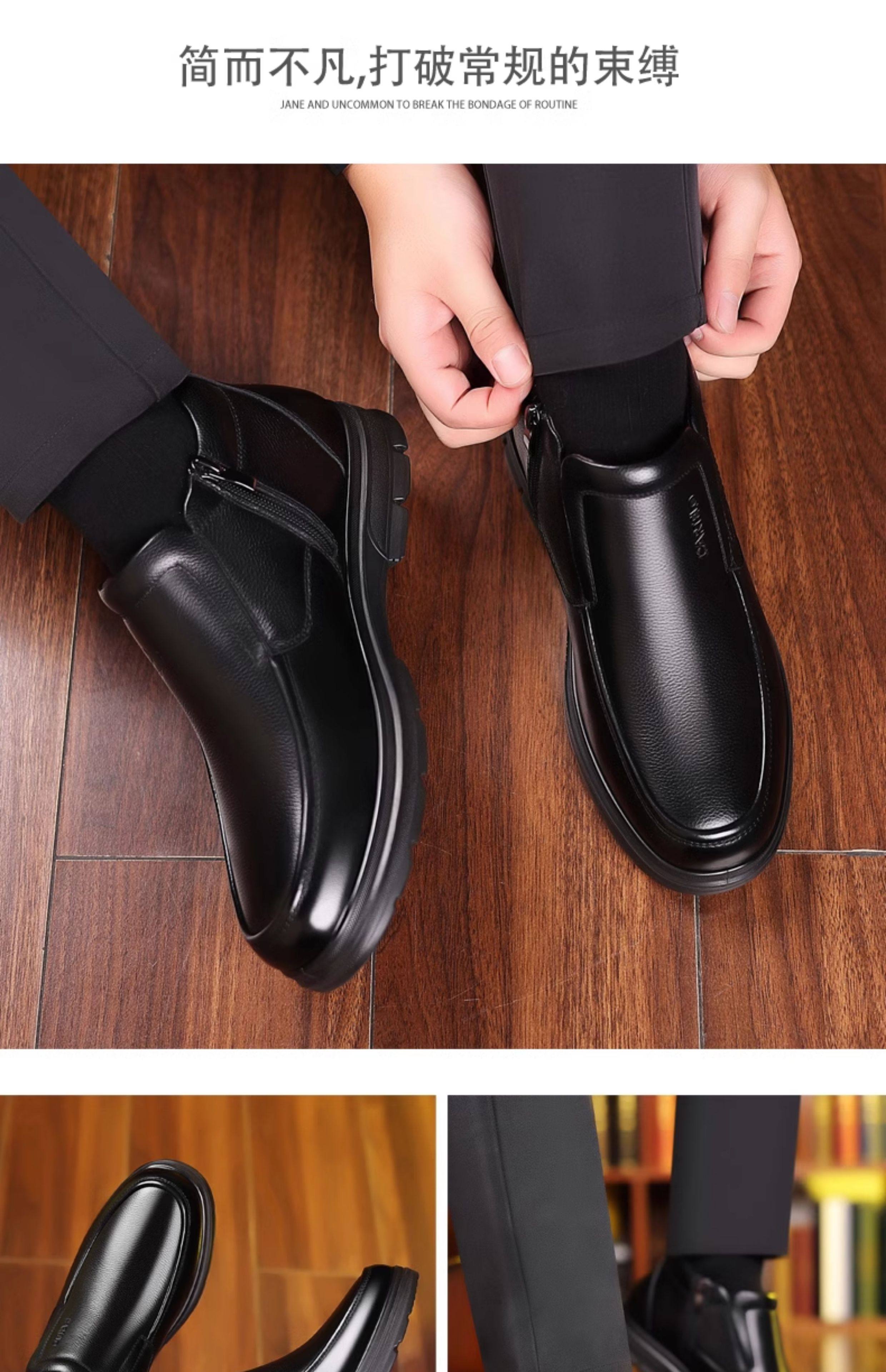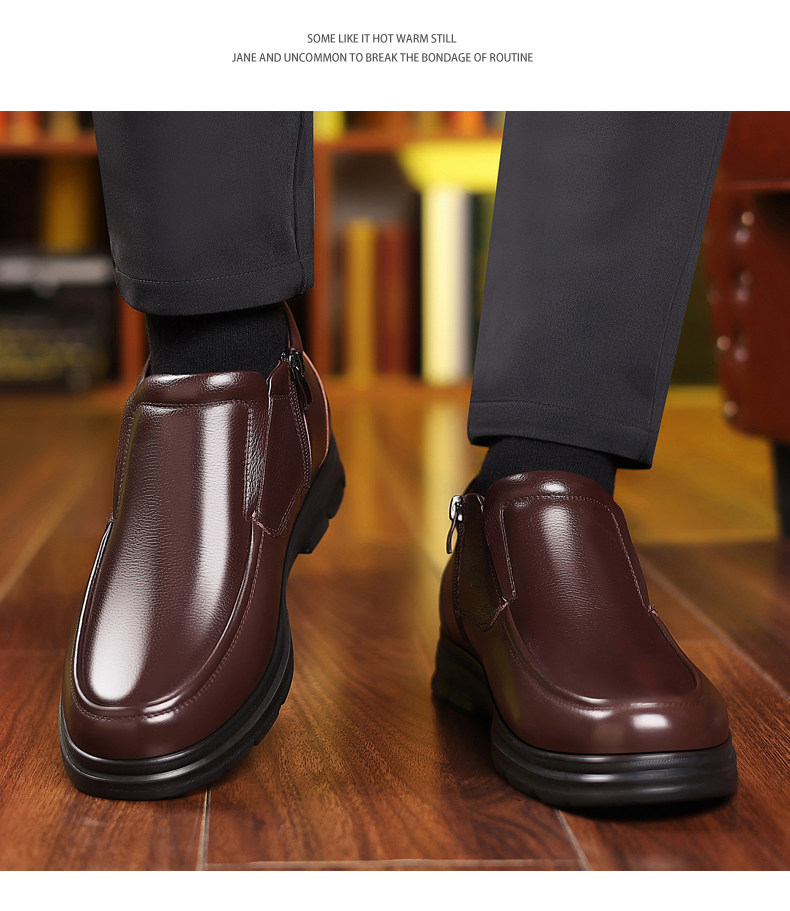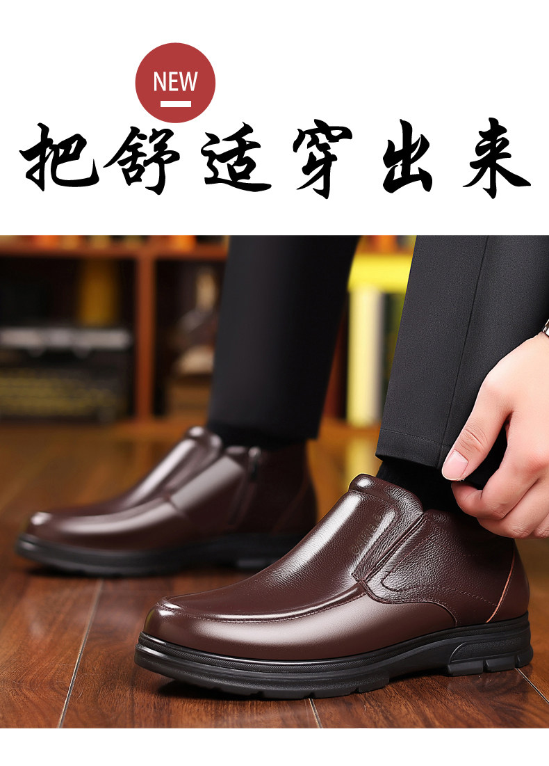 Winter Genuine Leather Wool Warm High-Top Cotton Shoes for Men, Slip-On Fleece-Lined Men's Leather Shoes, Cotton Leather Shoes for Middle-Aged and Elderly Dads