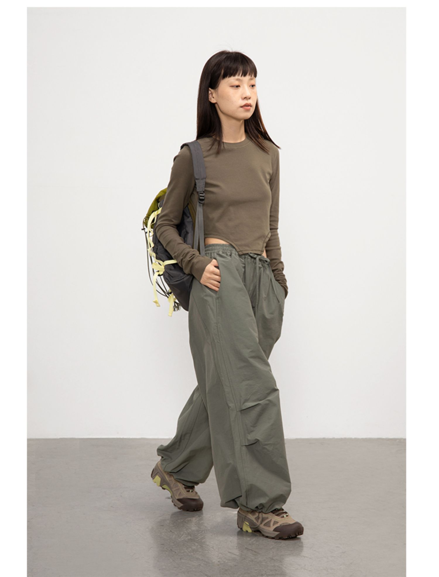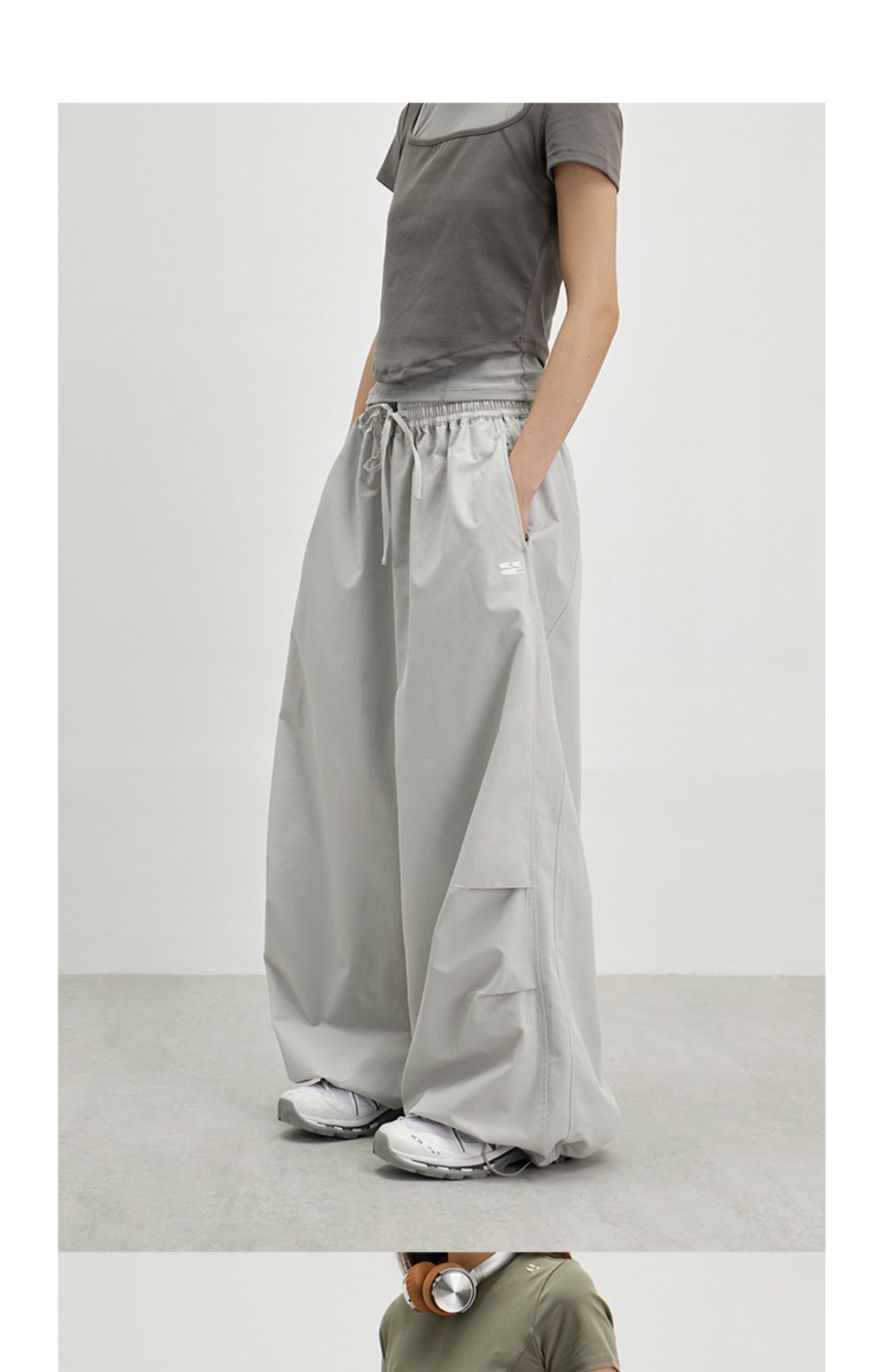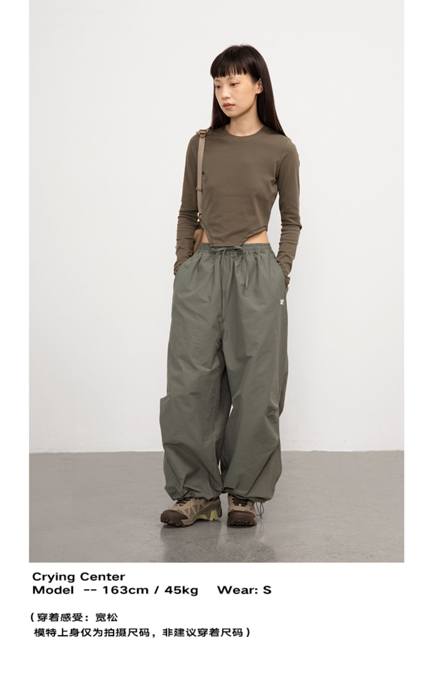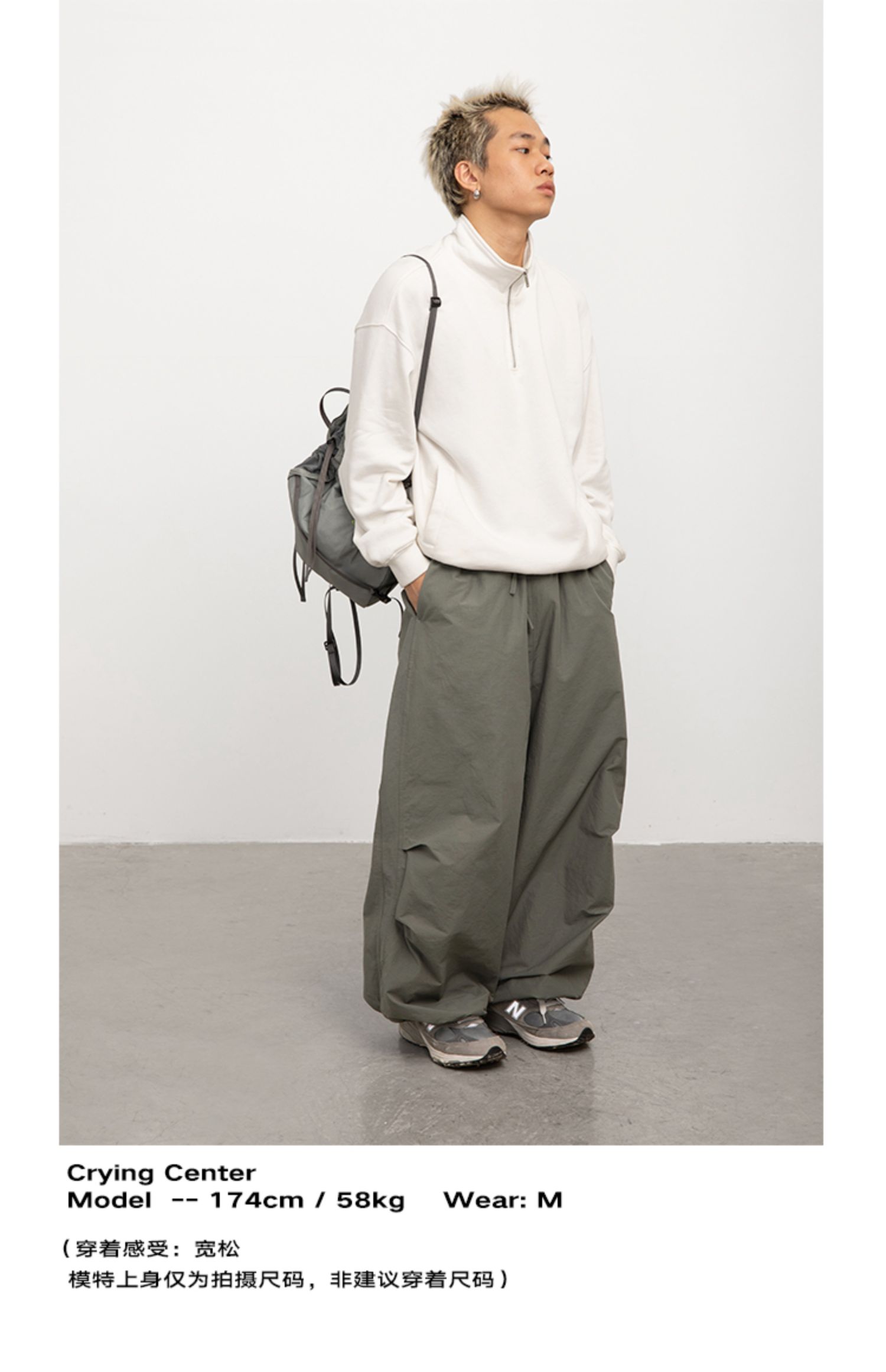 Cryingcenter Gray Green American Style Windbreaker Wide Leg Sports Pants Elastic Waist Fat Boy Air Pants Crying Center