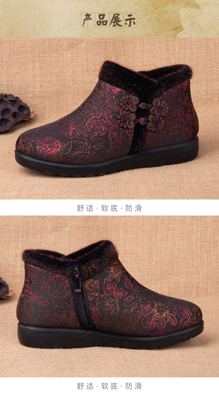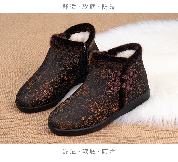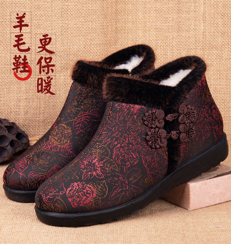Winter Northeast Pure Wool Women's Shoes, Old Beijing Cloth Shoes with Added Fleece, Elderly Cotton Shoes, Non-Slip and Warm Shoes for Middle-Aged and Elderly Women