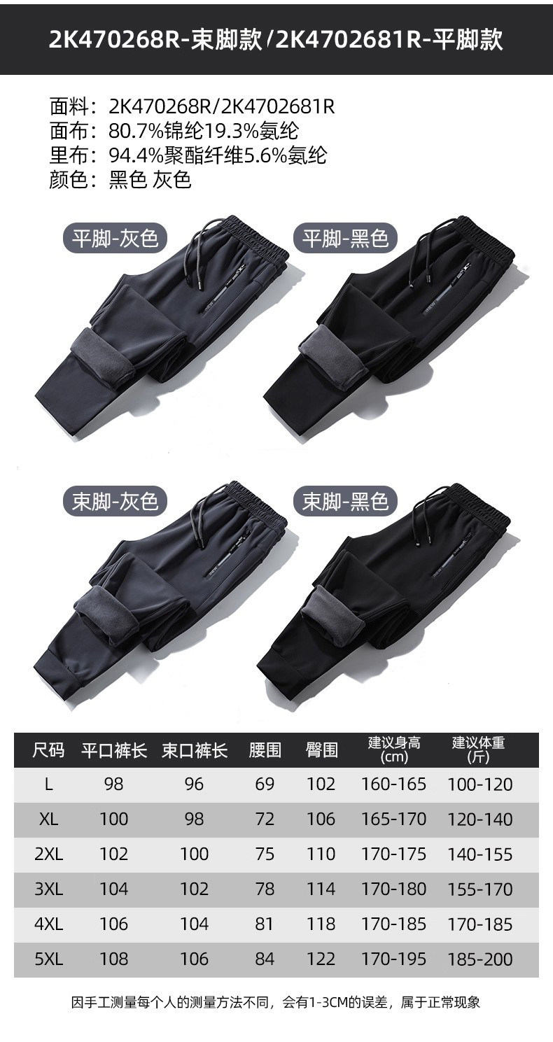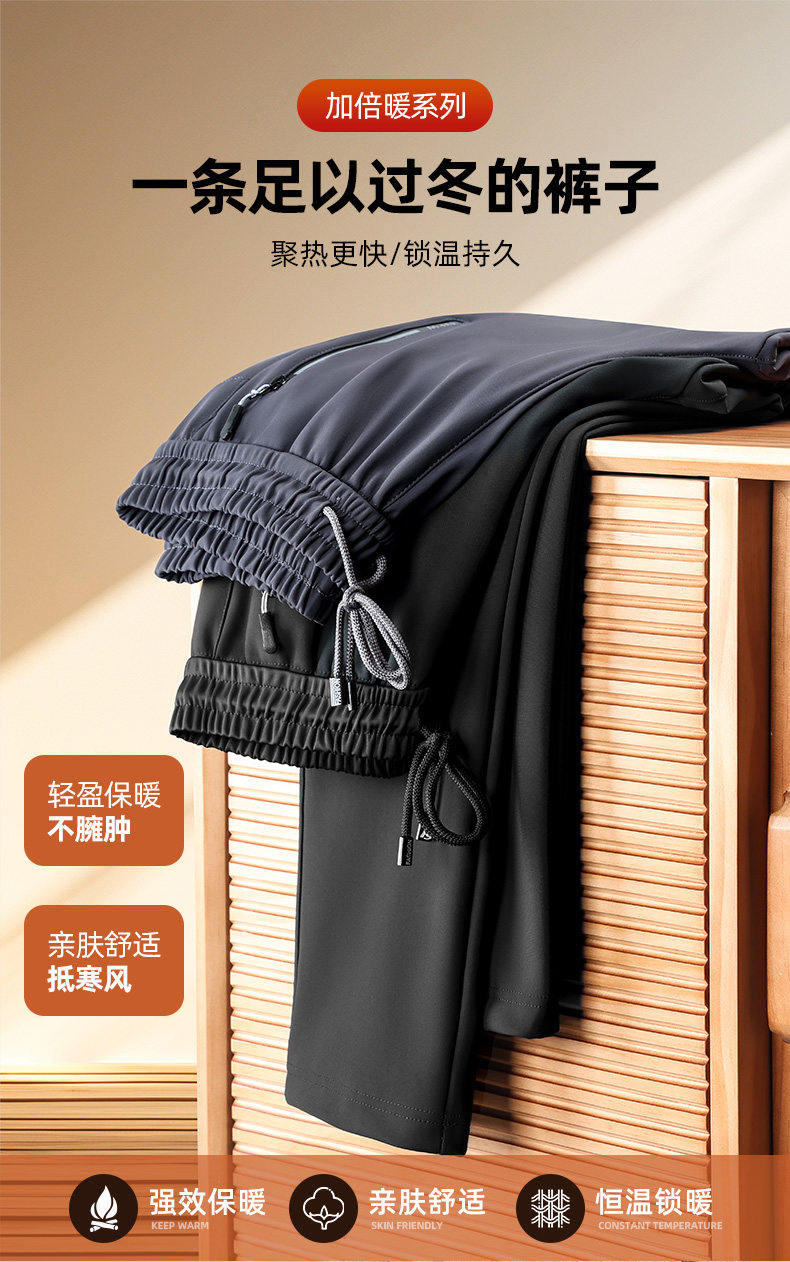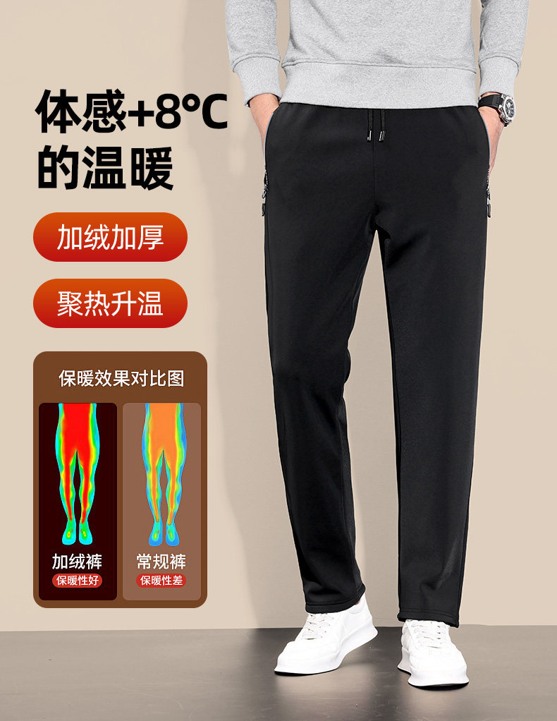 【Oriental Velvet Warmth】Romon Men's Fleece-Lined Pants Thickened Casual Pants 2025 Winter Elastic Straight-Leg Pants