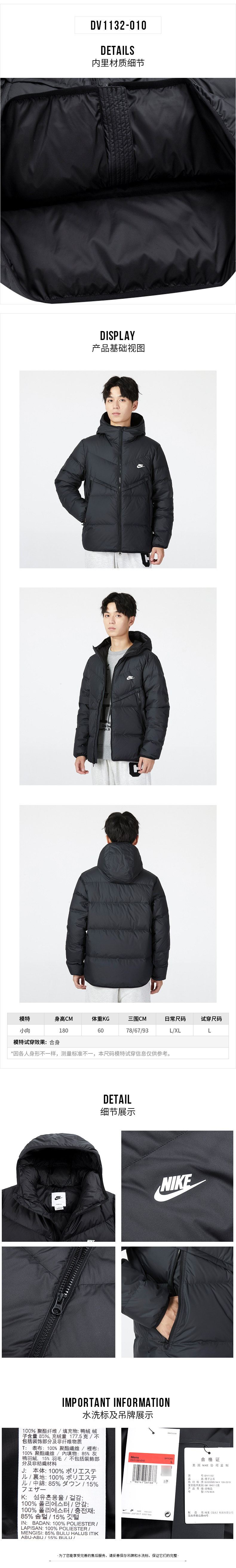 Nike Winter New down Jacket Men's Genuine Thick Coat Sports Jacket Windproof Top Warm Cotton Clothing
