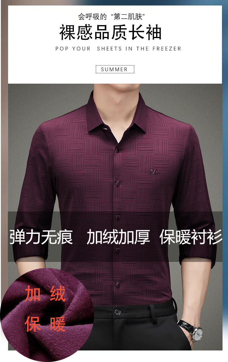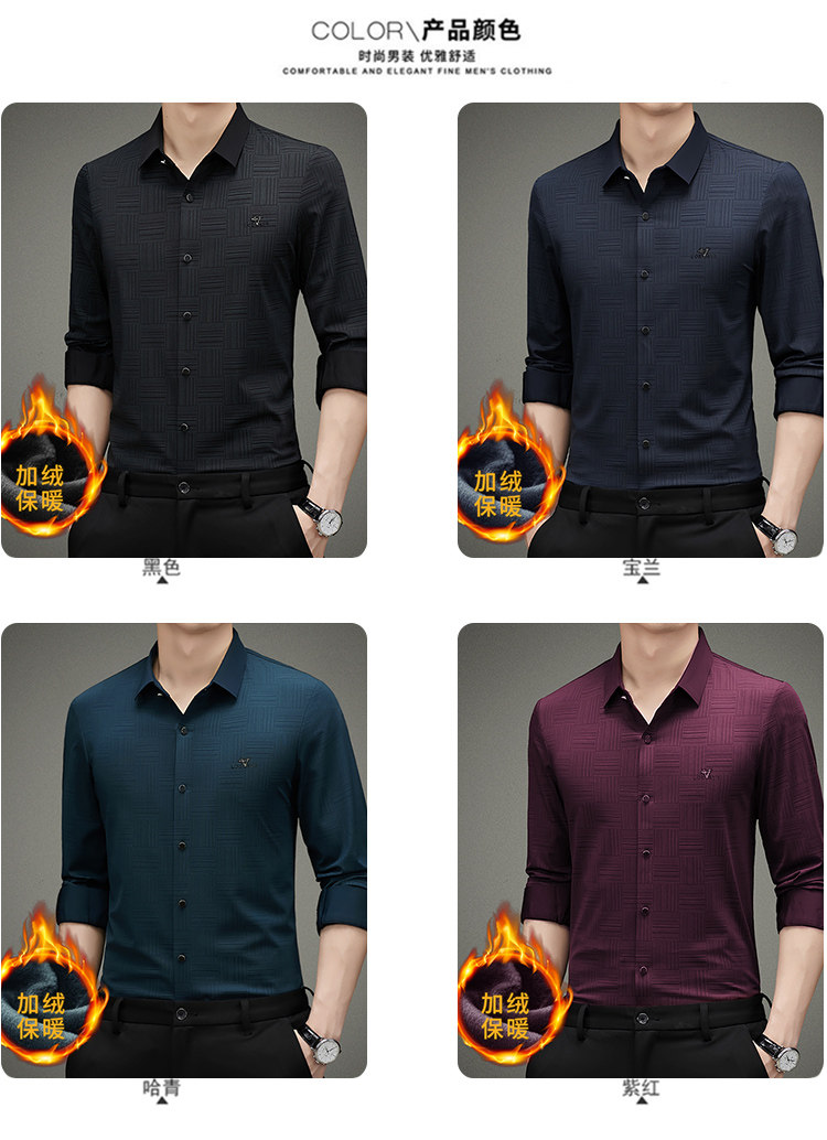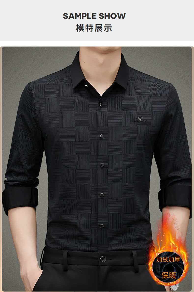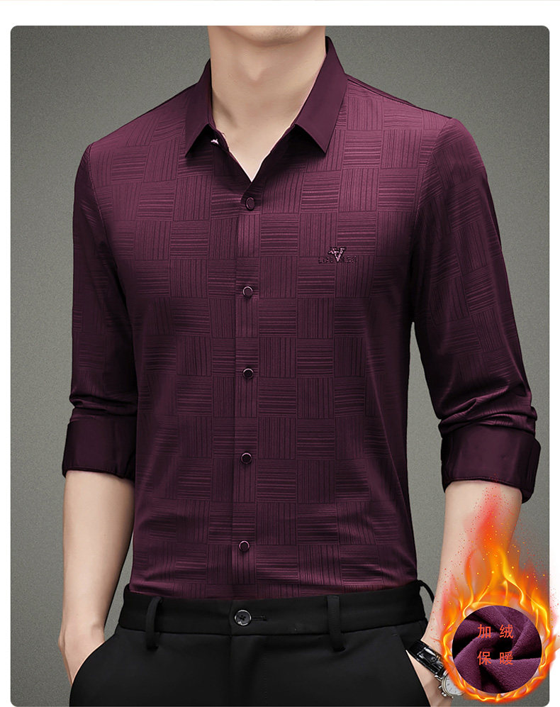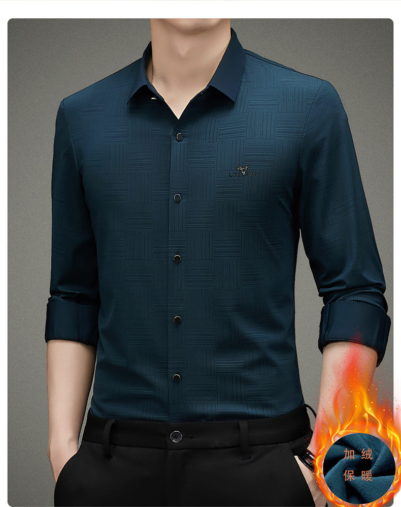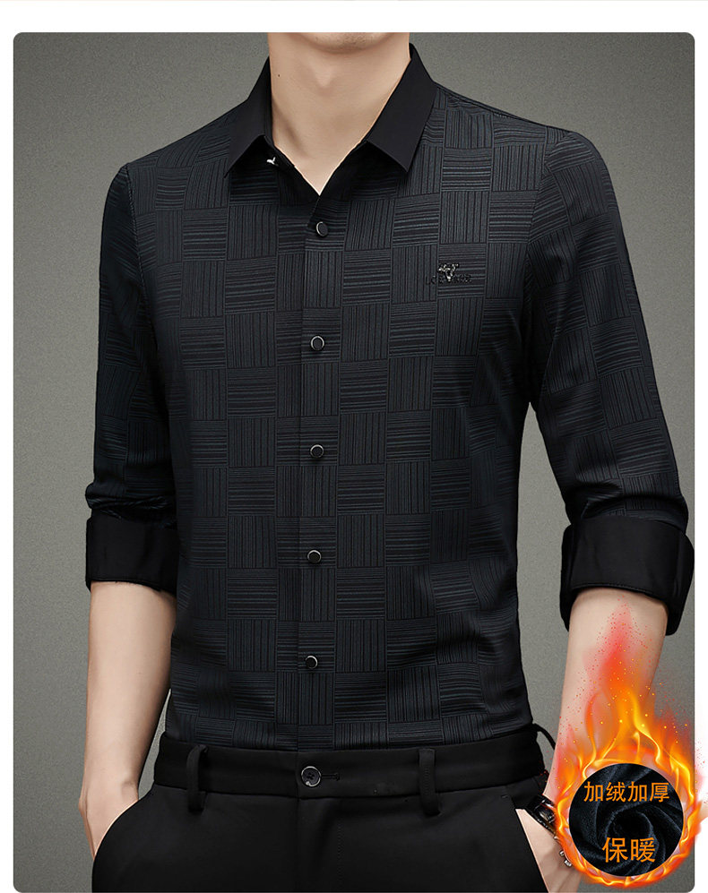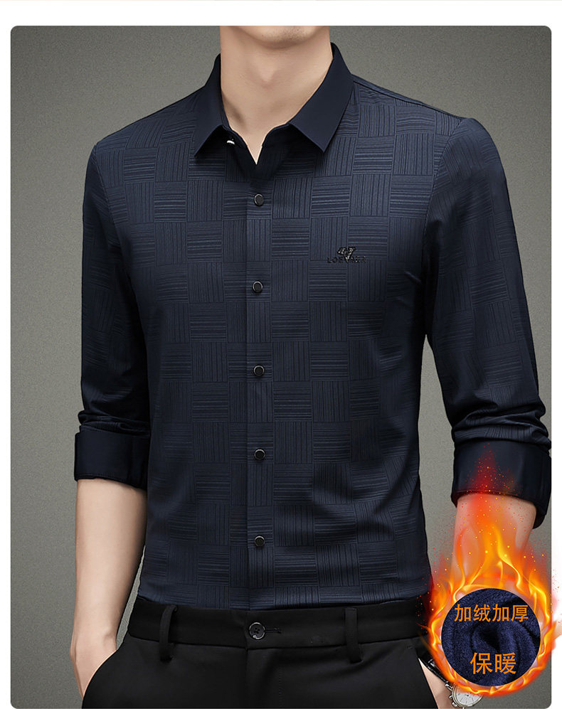 Romon Fleece-Lined Thickened Shirt for Men, Winter Business Casual, Warm, Wrinkle-Free, Non-Iron Shirt, Top, Base Layer Shirt