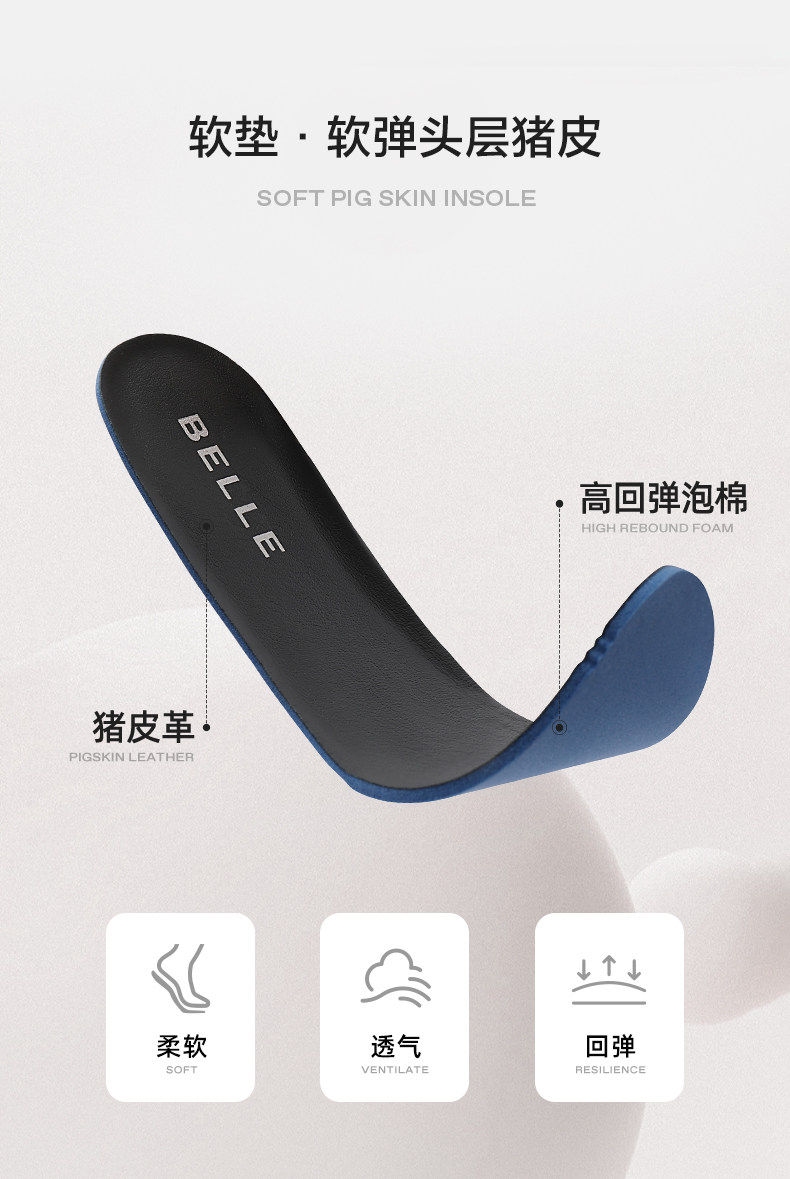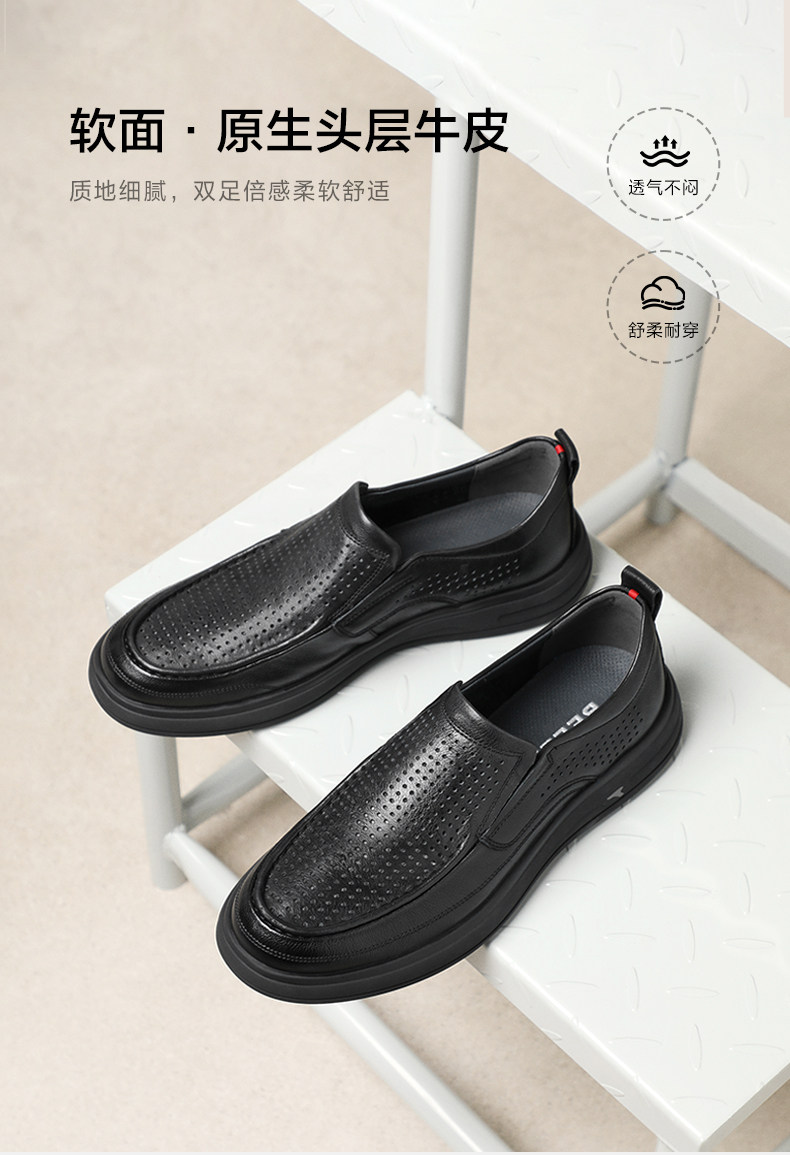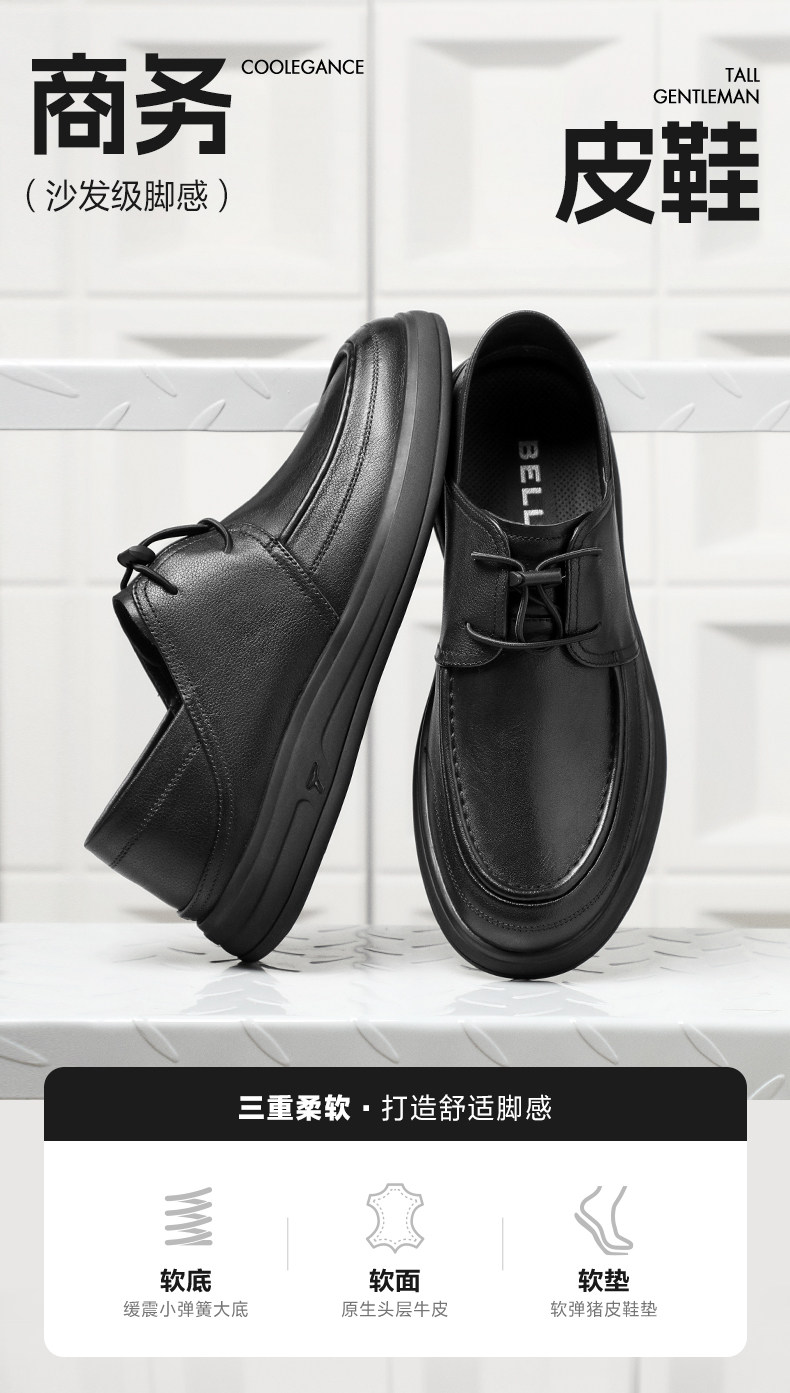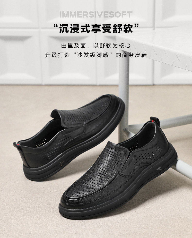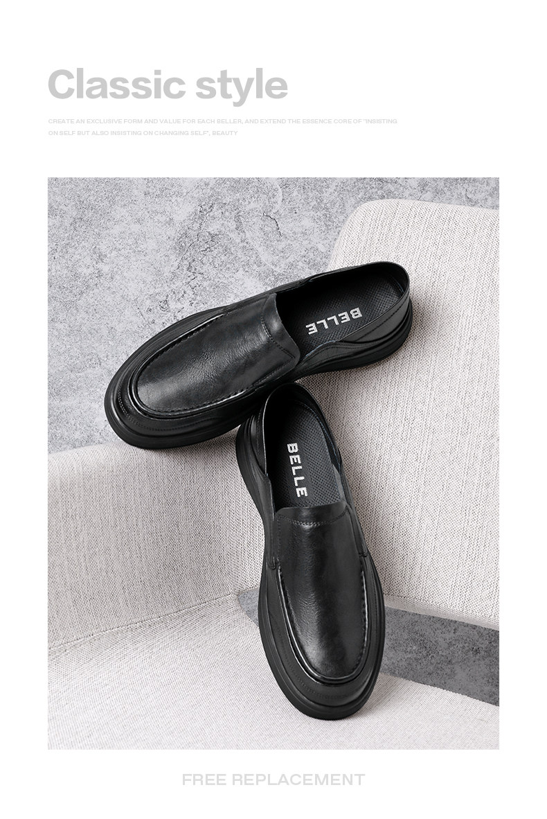Belle Men's Soft Sole Business Casual Leather Shoes Spring/Summer New Slip-On Breathable Genuine Leather Dad Shoes A1010A
