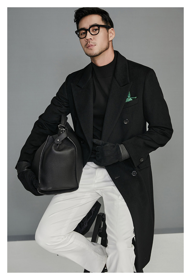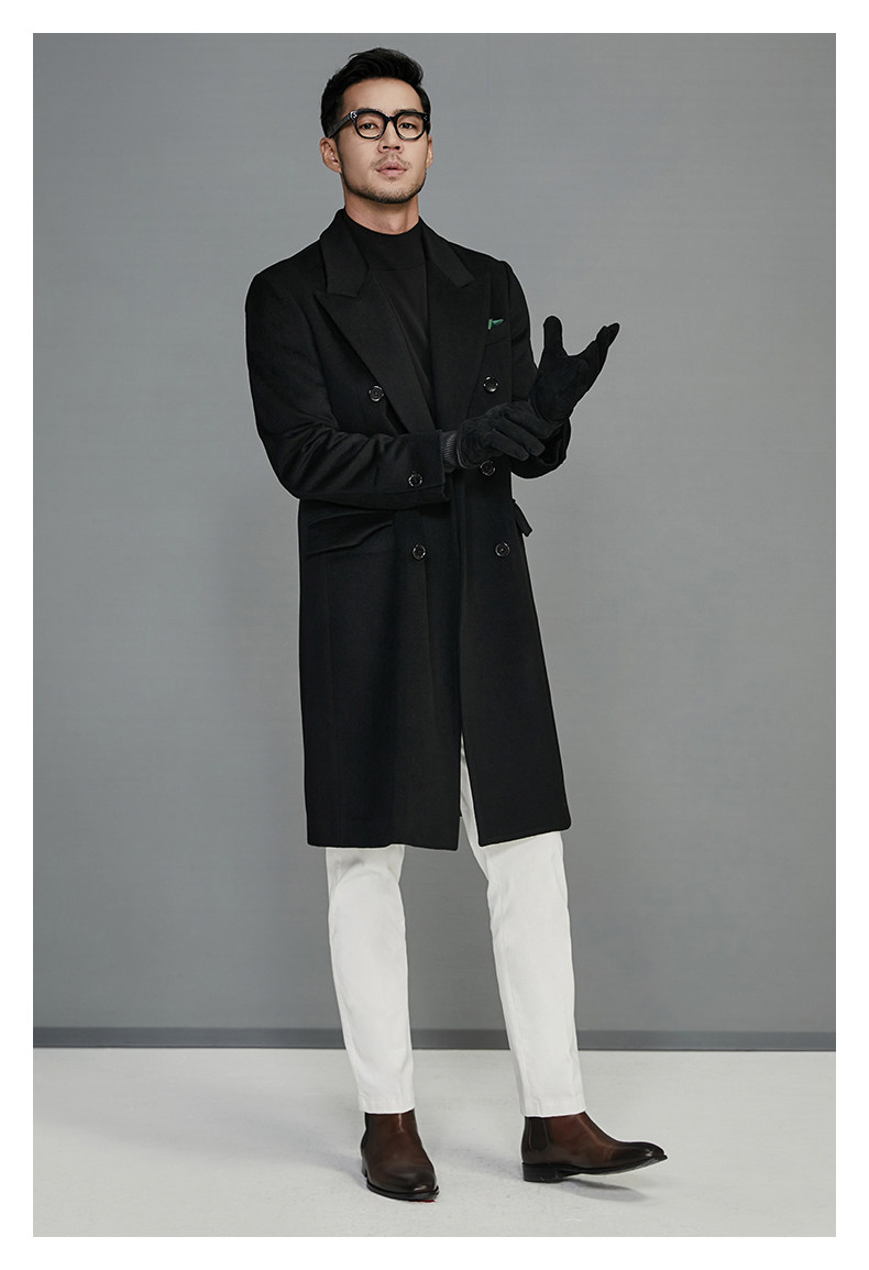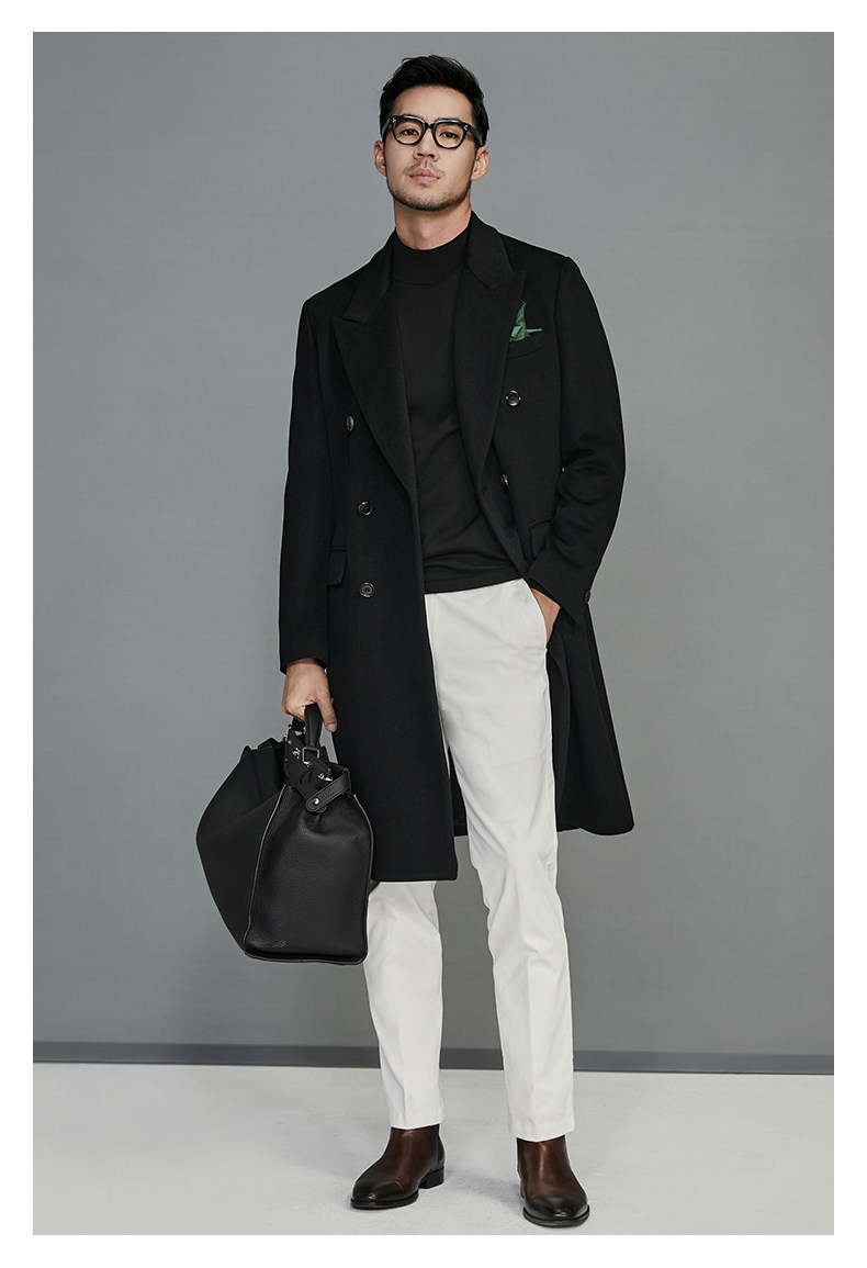 【100-Count High-Thread-Count Wool】Double-Breasted Coat for Men, New Autumn and Winter Woolen Coat, Men's Mid-Length Style