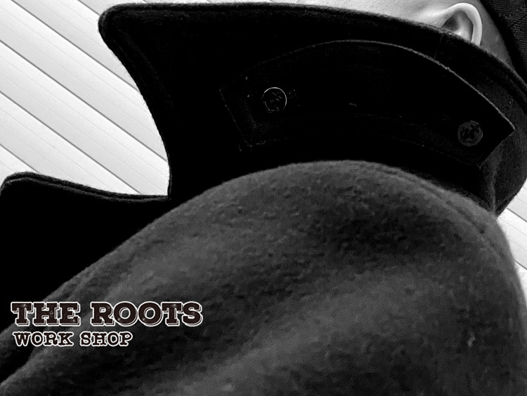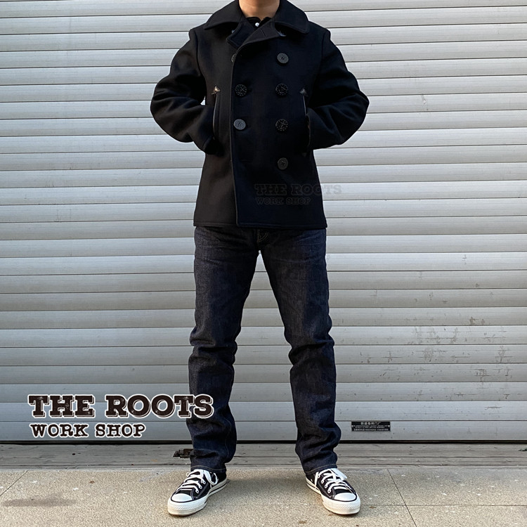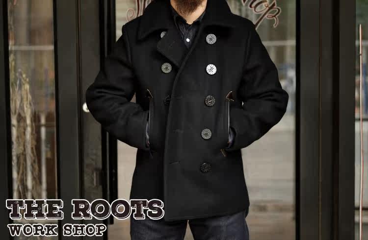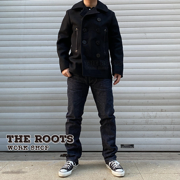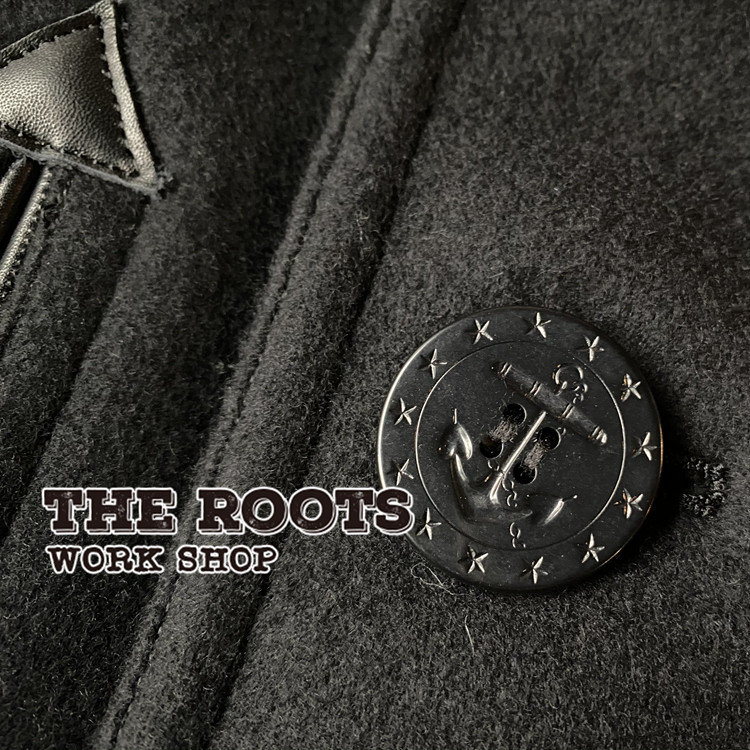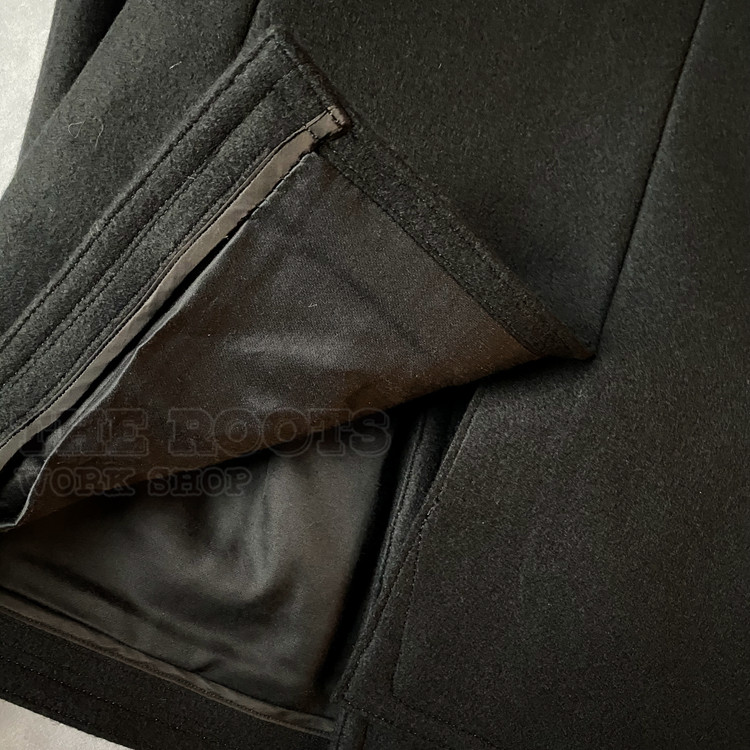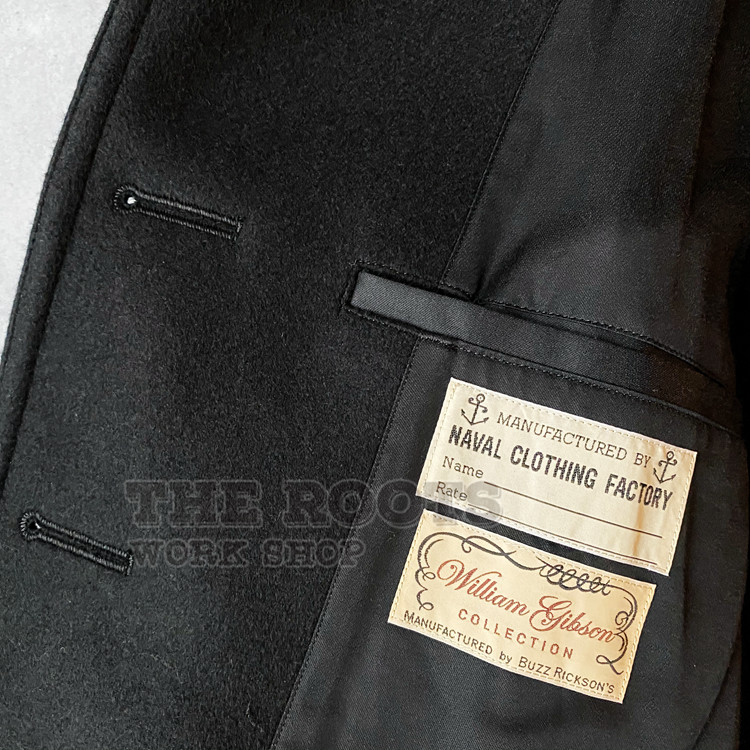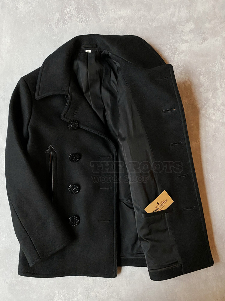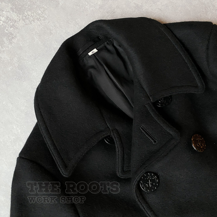 以1910s美国海军军官大衣为原型,选用36oz重磅梅顿羊毛,面料厚重挺括,13星船锚纽扣。领子大型为了在海上作业时,竖起遮住脸部对抗强风。斜插外口袋内里采用保暖性更好的灯芯绒面料。