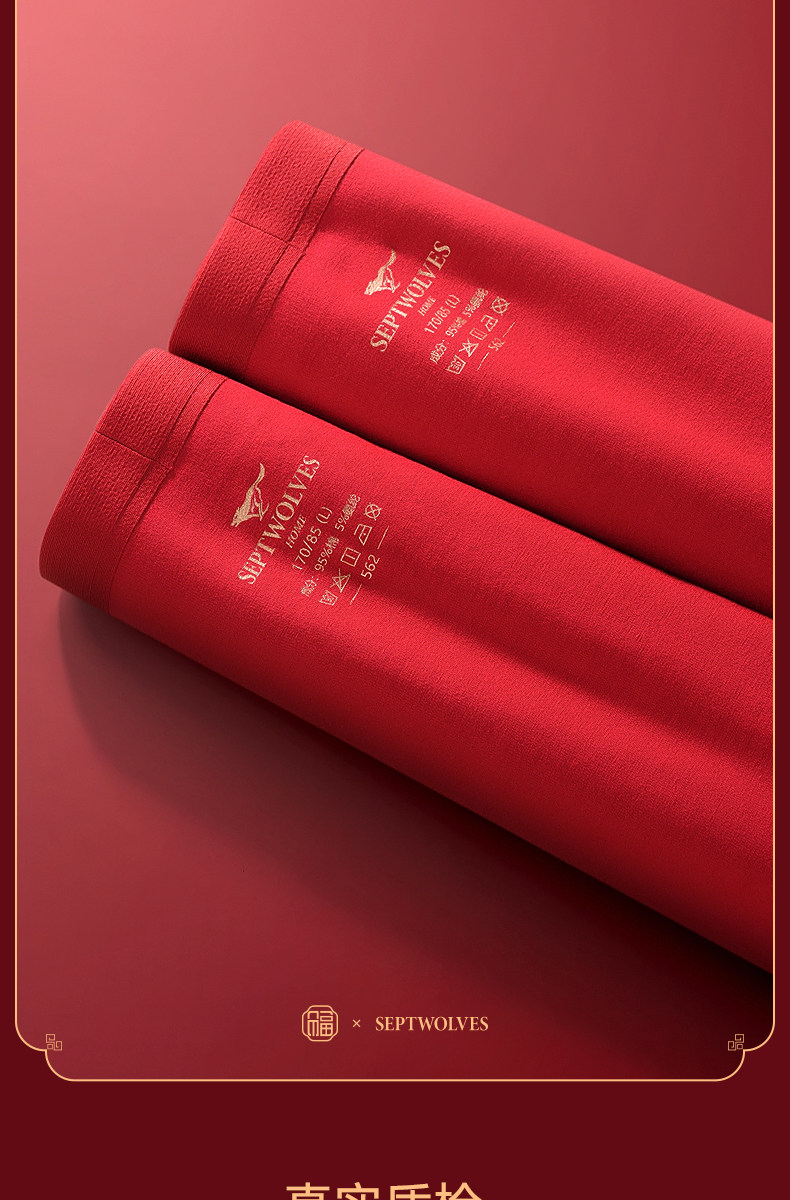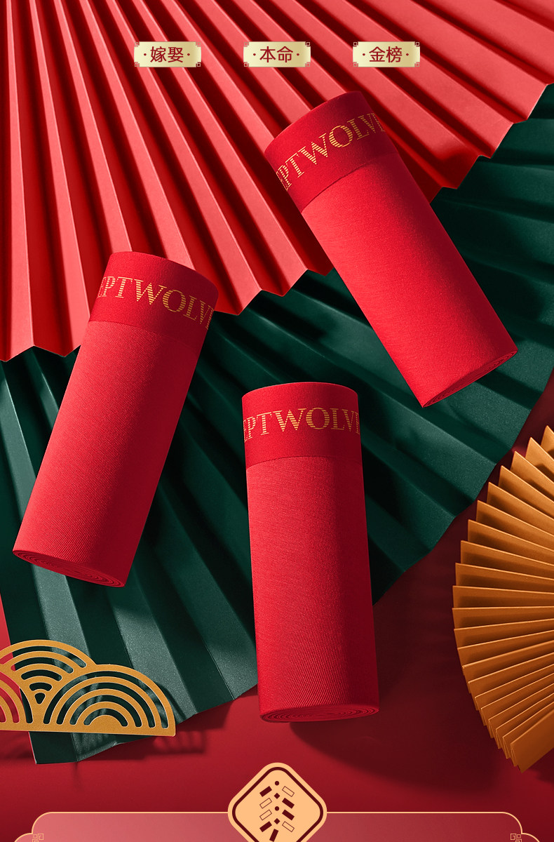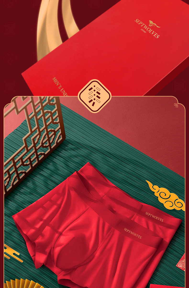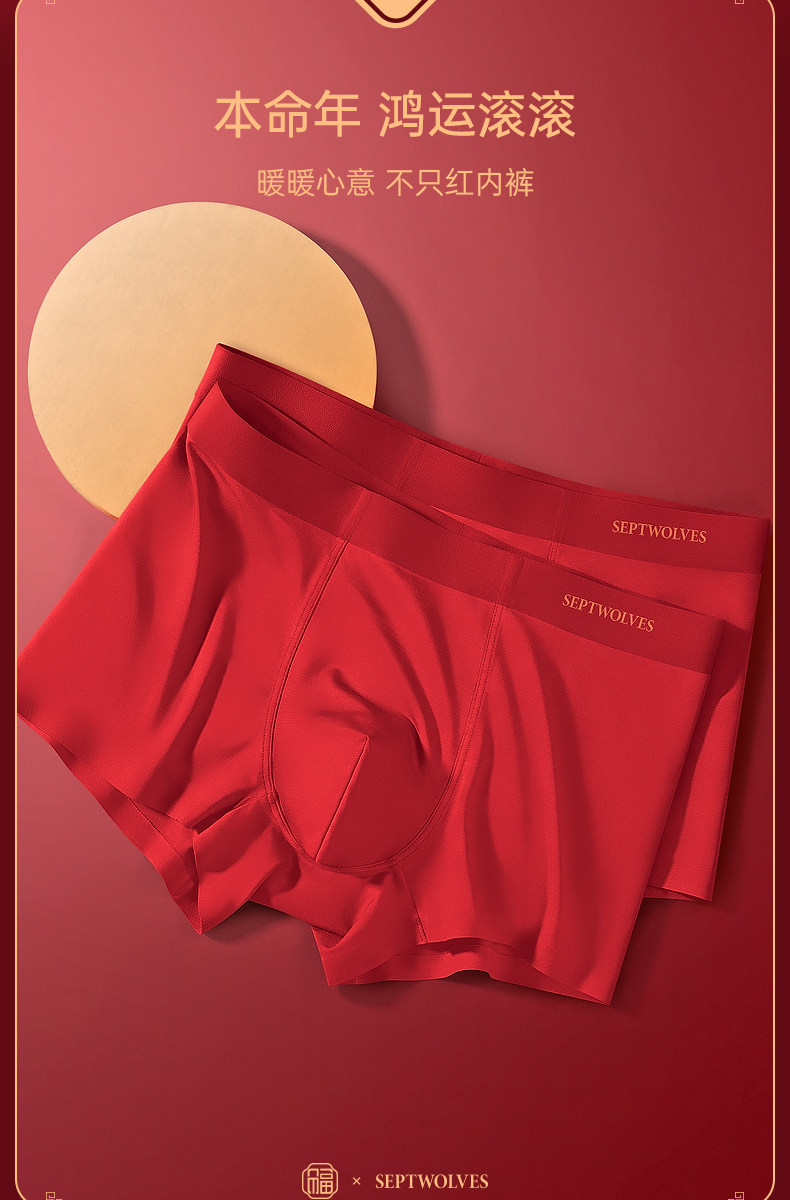 Septwolves Year of the Horse Zodiac Year Gift Men's Underwear Socks Pure Cotton Boxer Shorts Bright Red All-Cotton Boxer Briefs