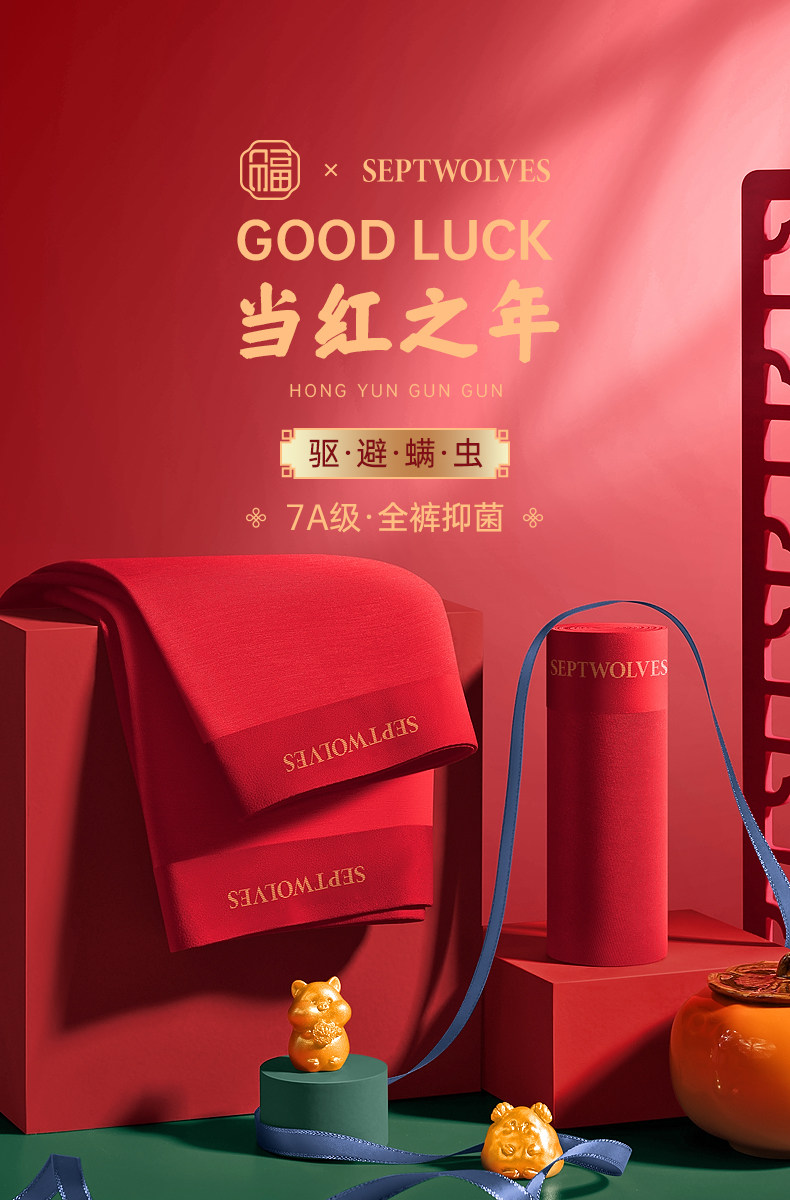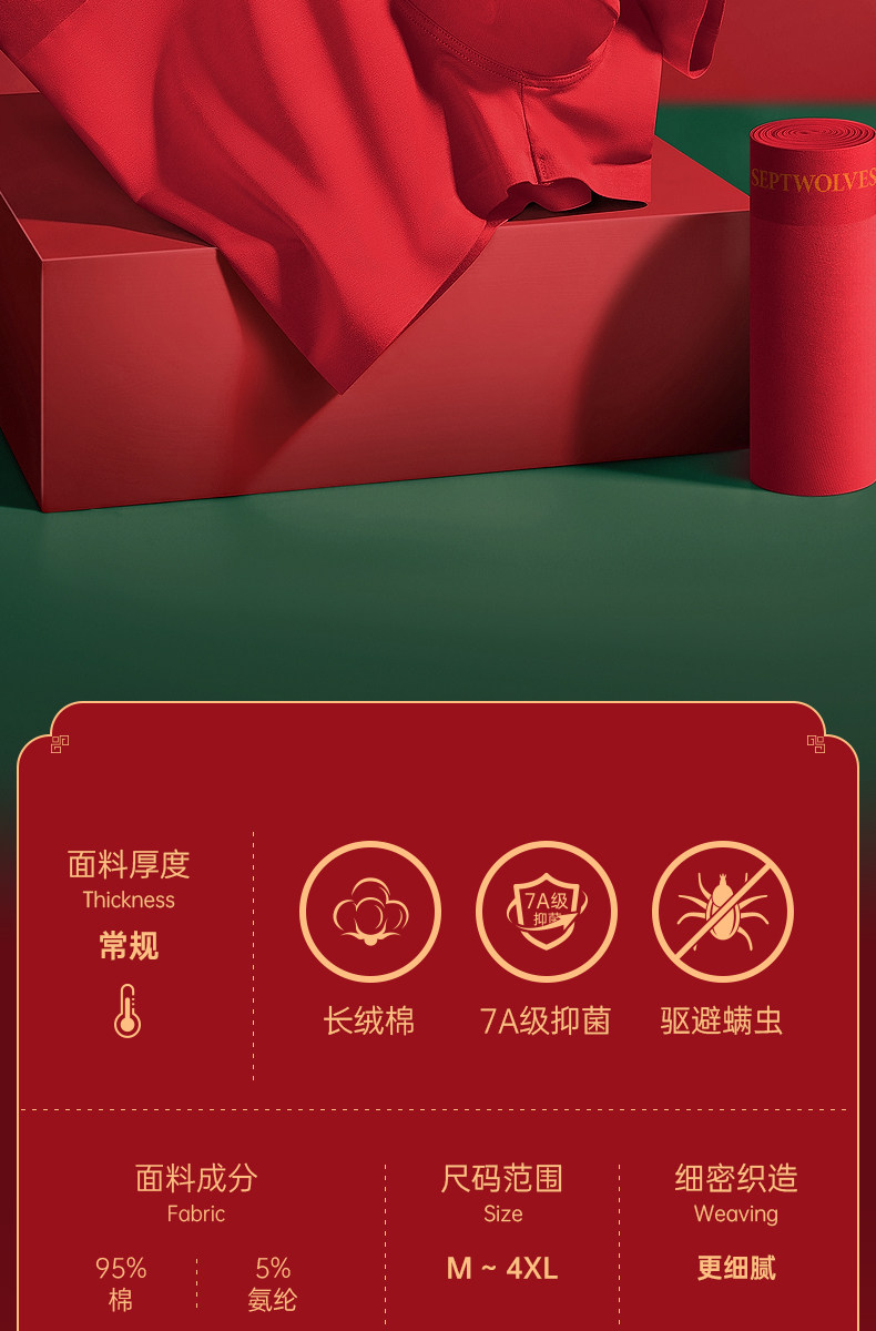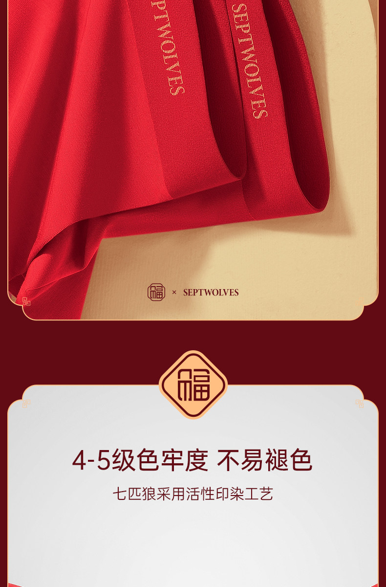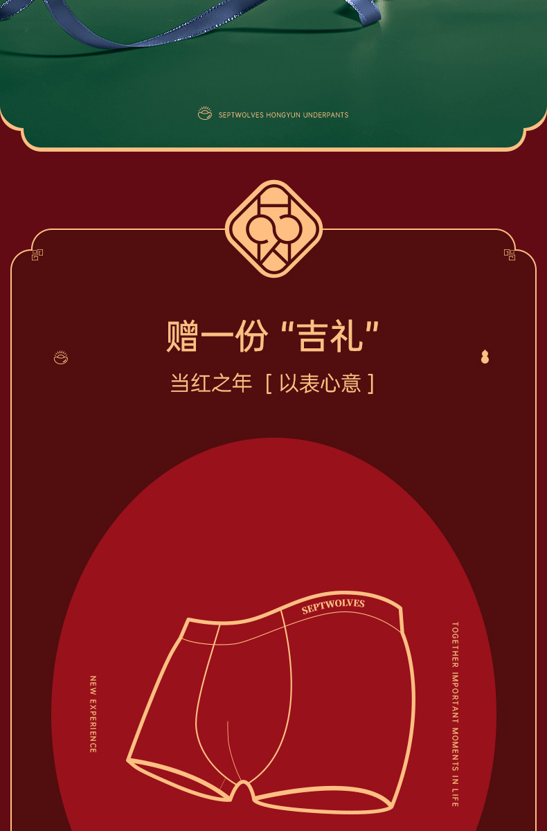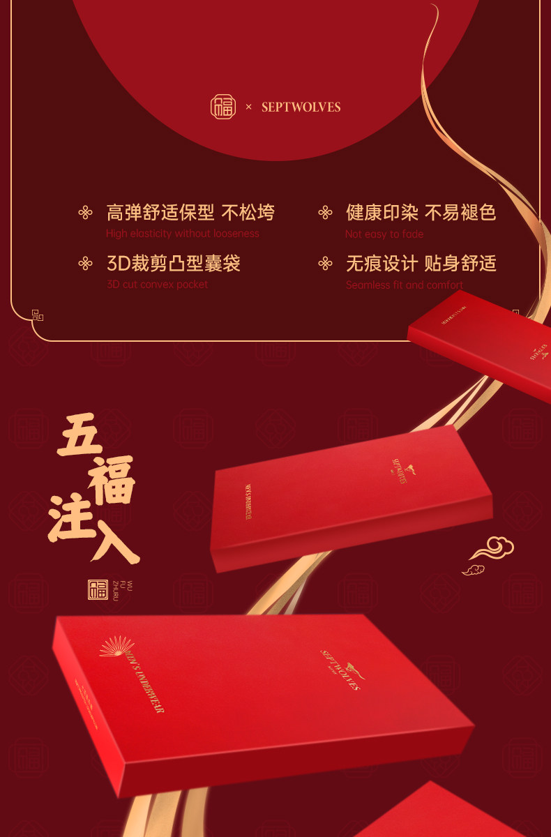 Septwolves Year of the Horse Zodiac Year Gift Men's Underwear Socks Pure Cotton Boxer Shorts Bright Red All-Cotton Boxer Briefs