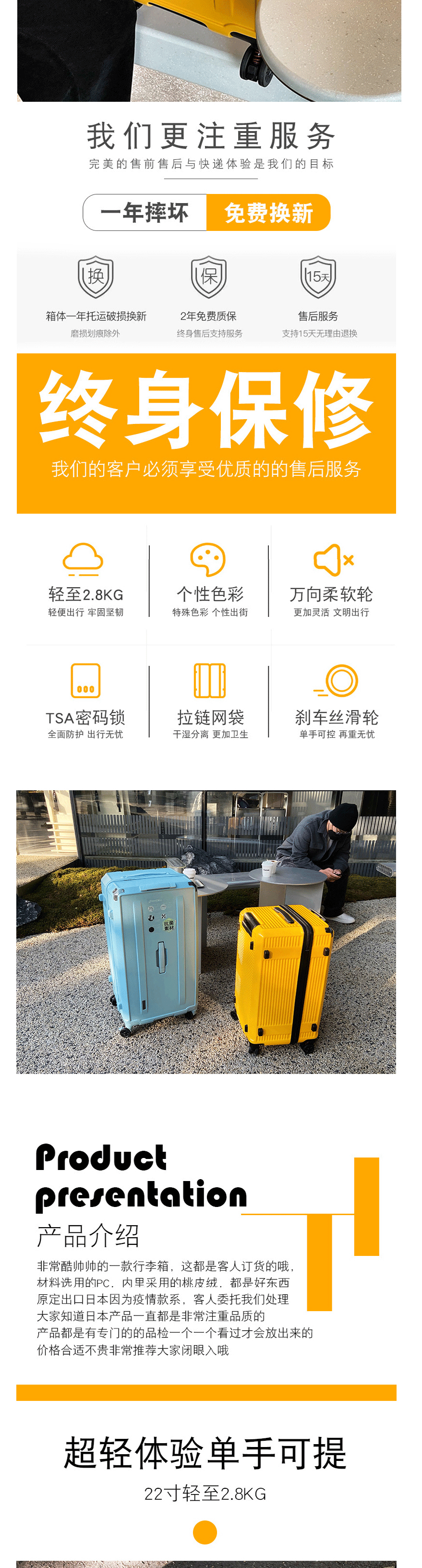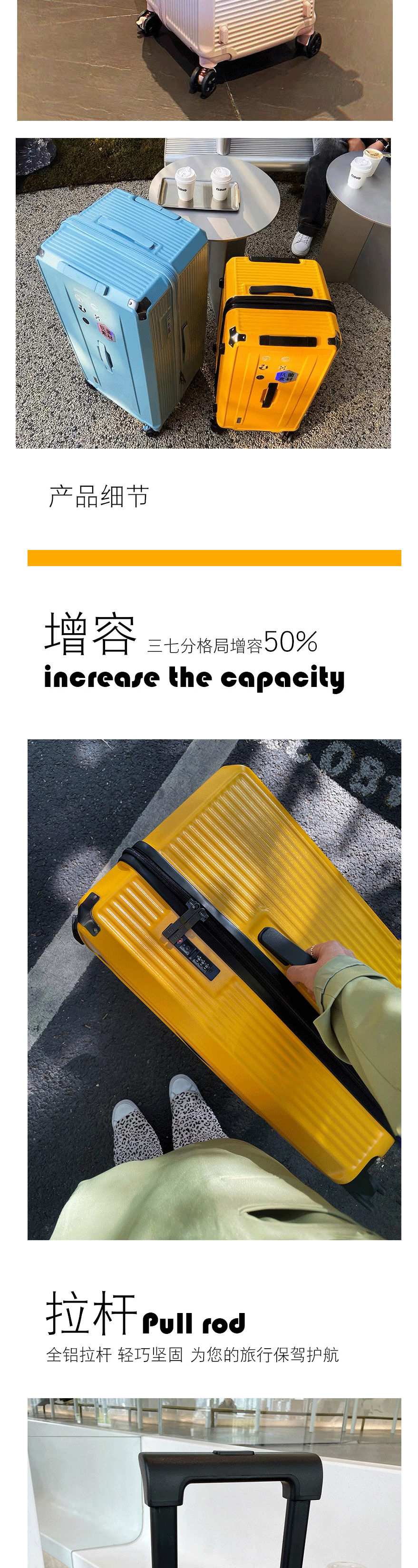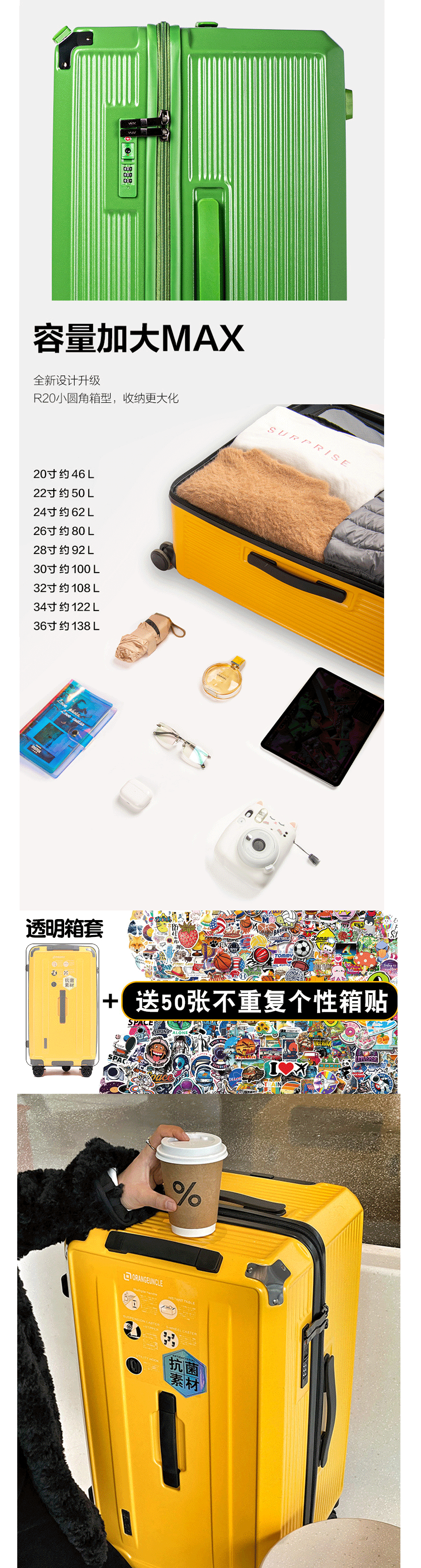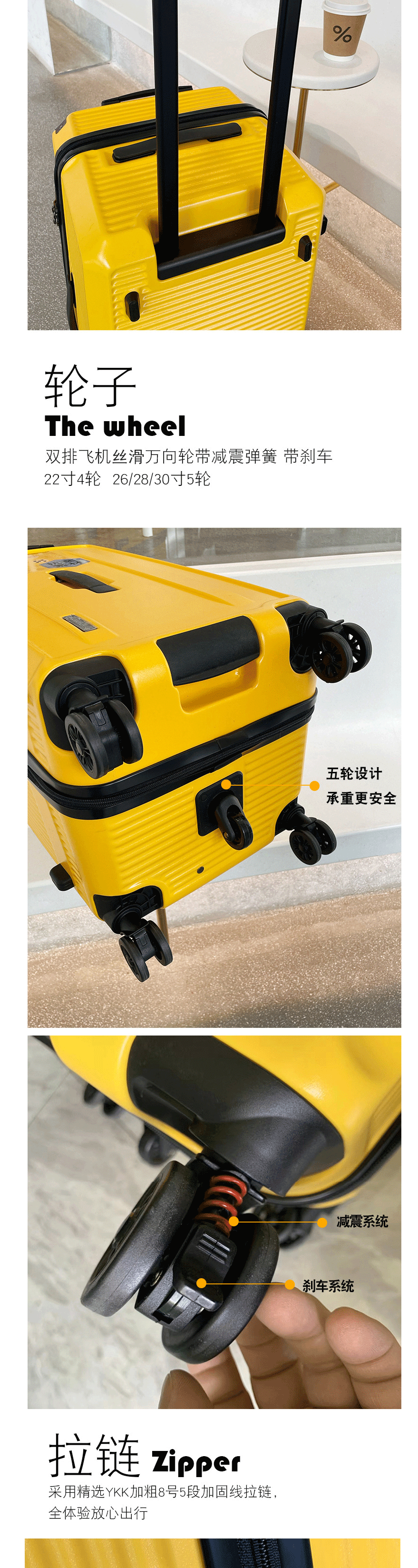 German Original Material! Ultra-Light, Large-Capacity Brake Wheel Trolley Suitcase, Travel Suitcase, Luggage for Women and Men, Password Lock, Carry-On