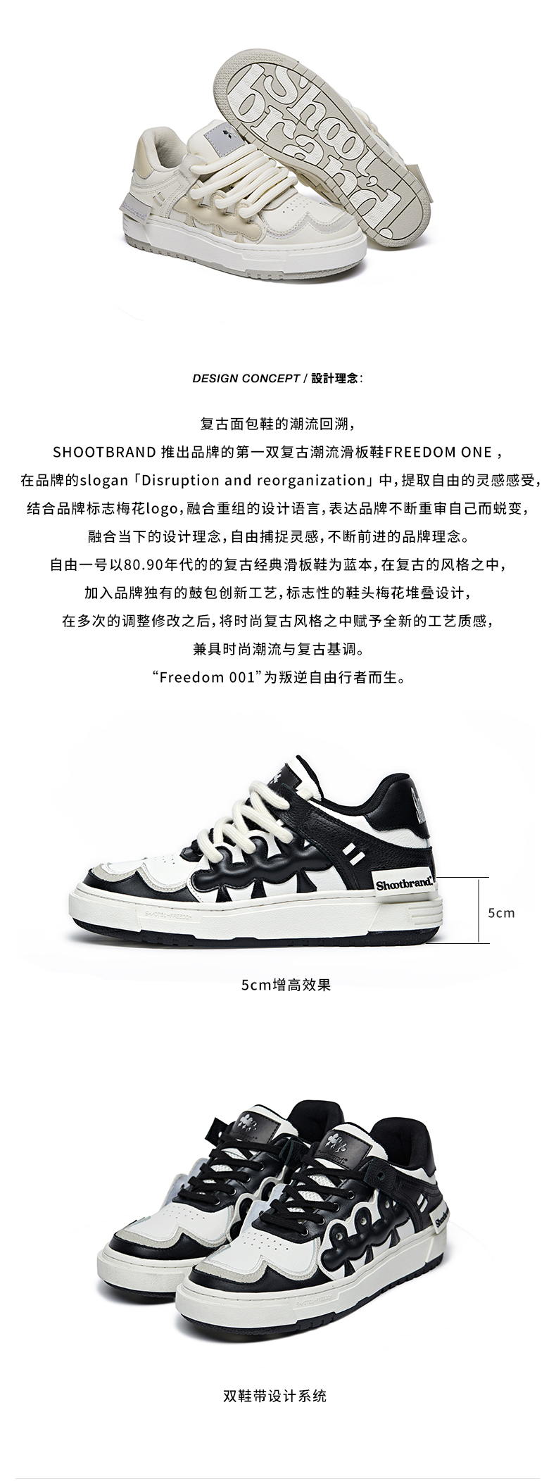 [Wang Hedi Same Model] SHOOT BRAND Freedom No.1 Board Shoes Retro Plum Blossom Shoes Thick Sole Couple Board Shoes