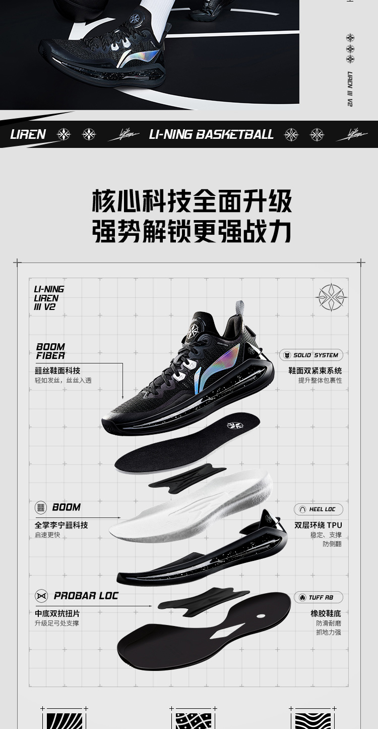 Li-Ning Basketball Shoes Blade 3V2 Unisex Shock-Absorbing Rebound Low-Top Professional Basketball Game Shoes