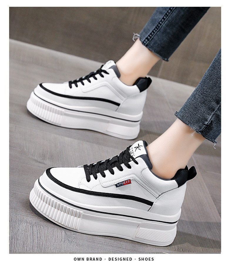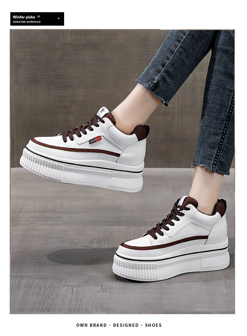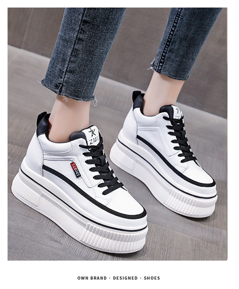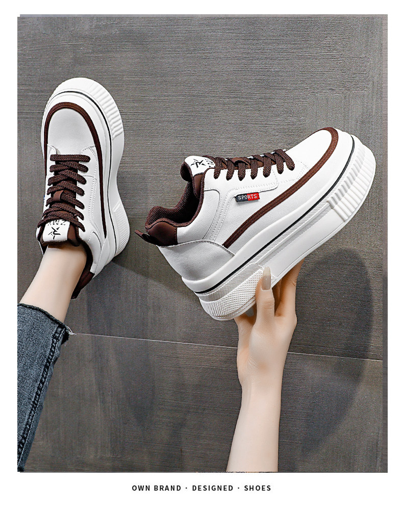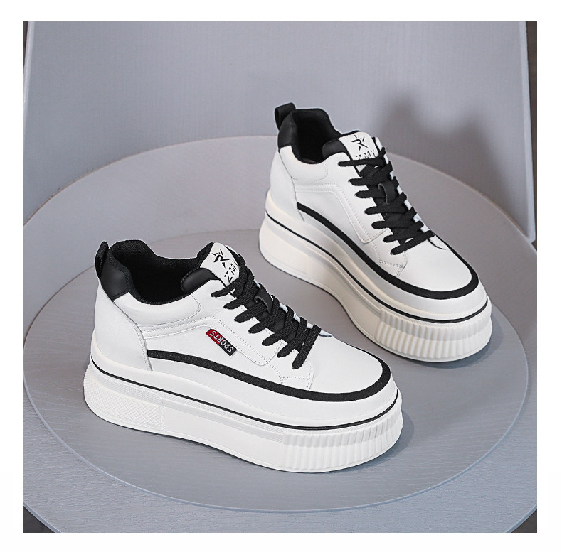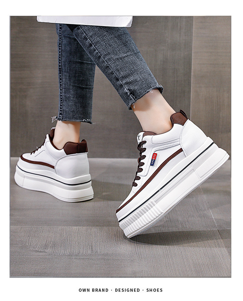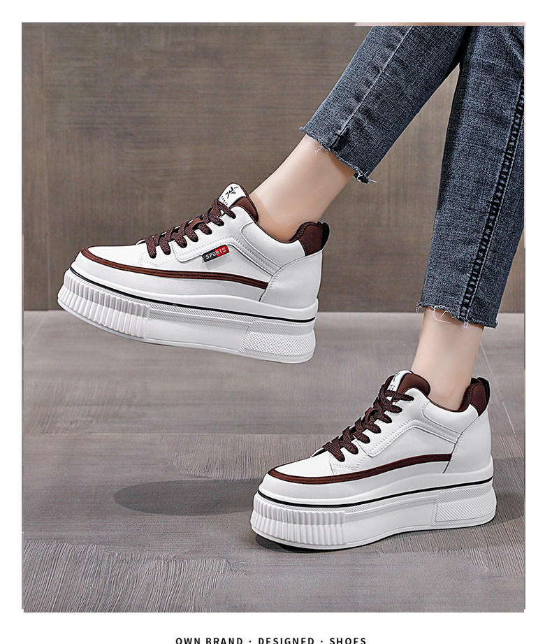 Genuine Leather White Sneakers for Women, 2026 Spring New Model, Versatile Genuine Leather, Thick-Soled, Height-Increasing, Lightweight Sports Shoes, Small Size
