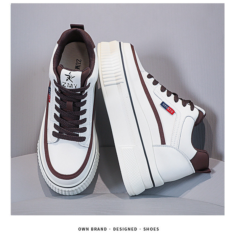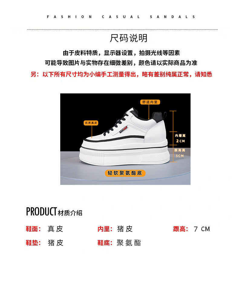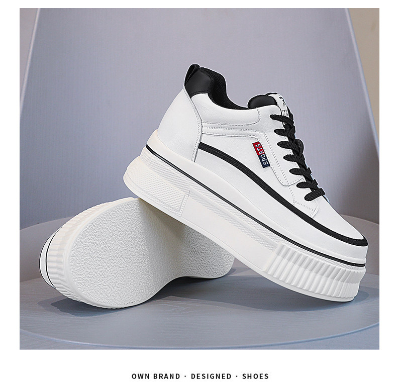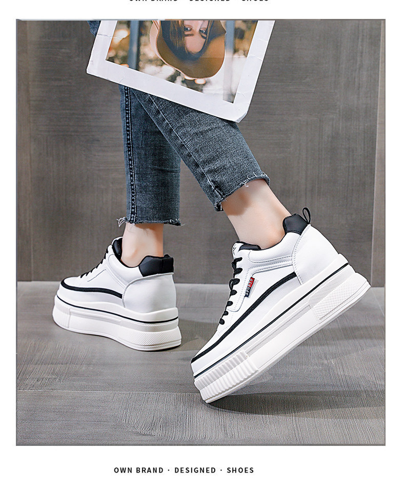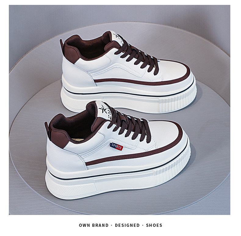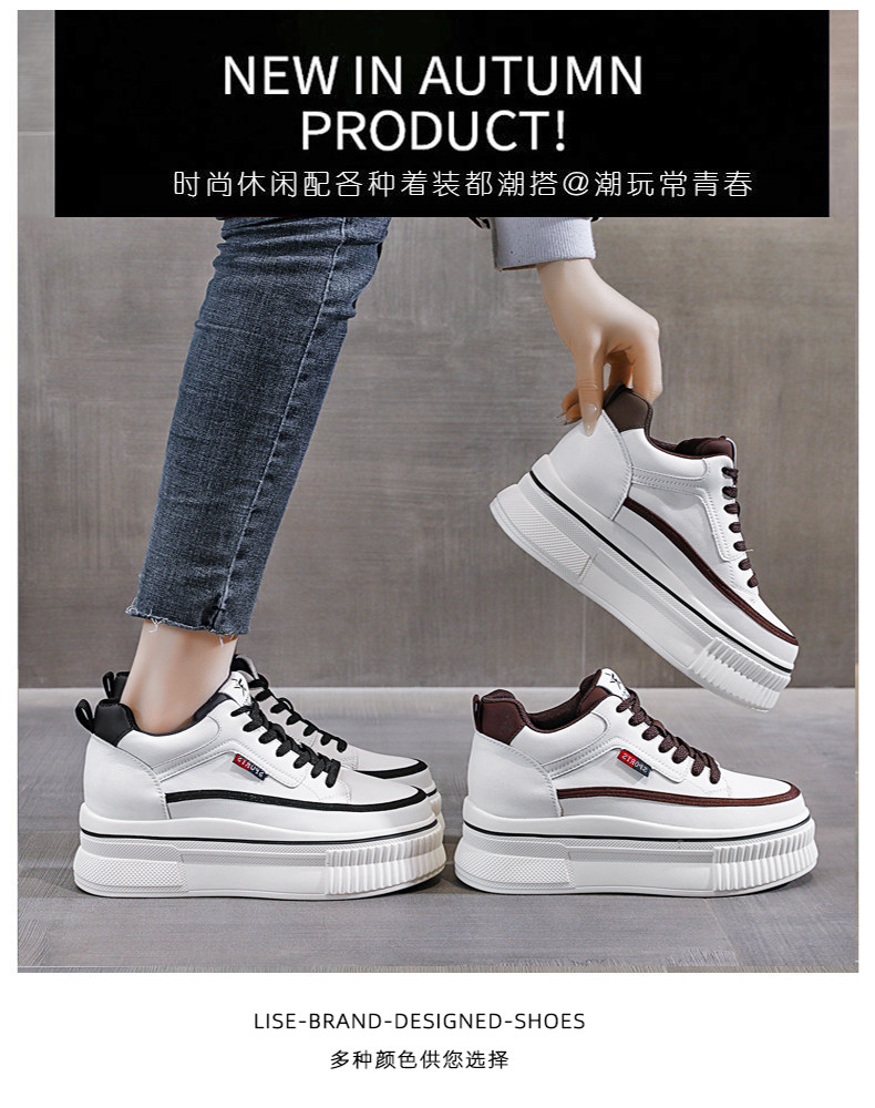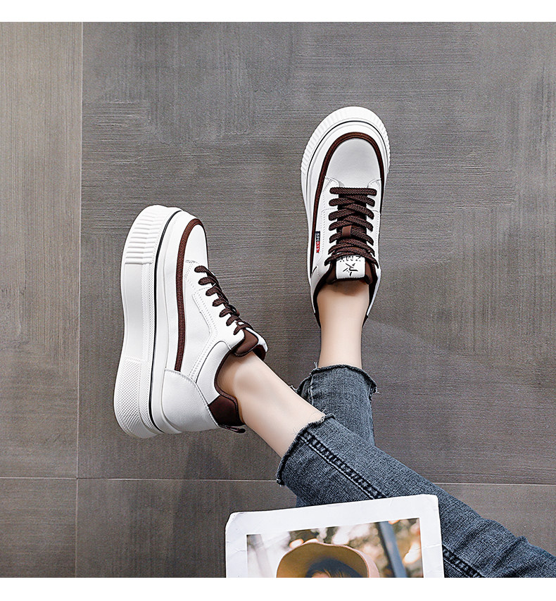 Genuine Leather White Sneakers for Women, 2026 Spring New Model, Versatile Genuine Leather, Thick-Soled, Height-Increasing, Lightweight Sports Shoes, Small Size