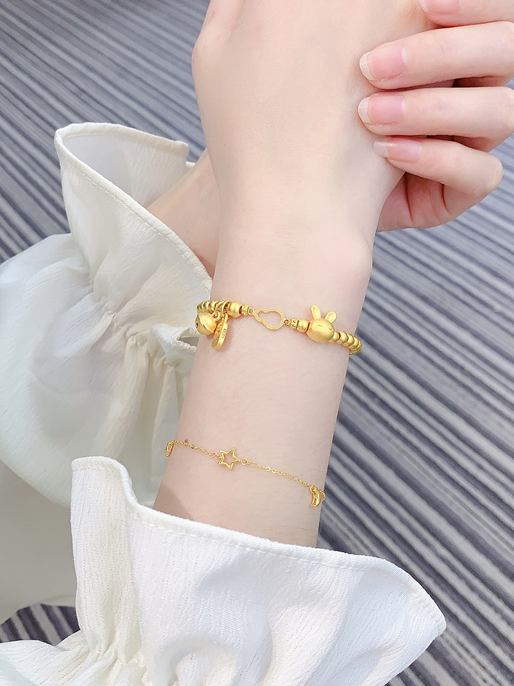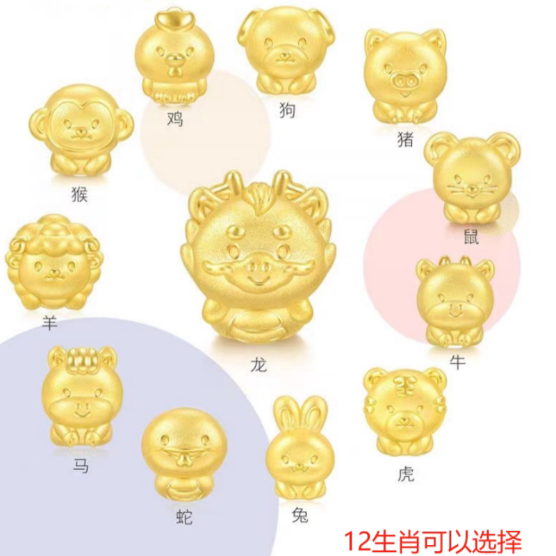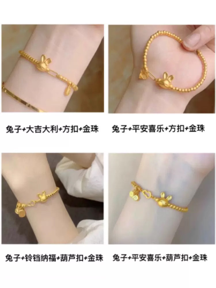 999 Pure Gold Twelve Zodiac Bracelets, Gold Rabbit and Dragon Fortune Beads, Pure Gold Peace and Joy Gold Bracelet