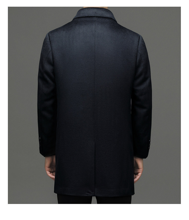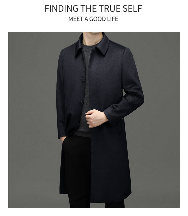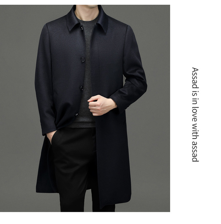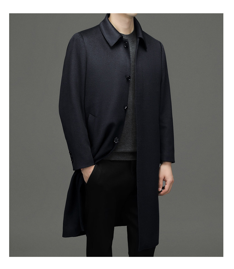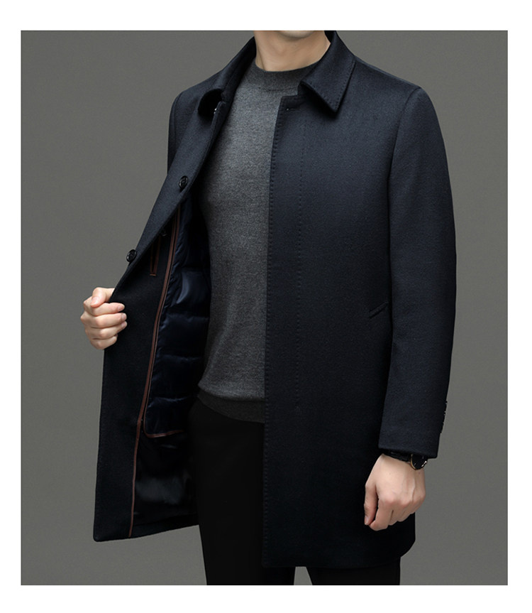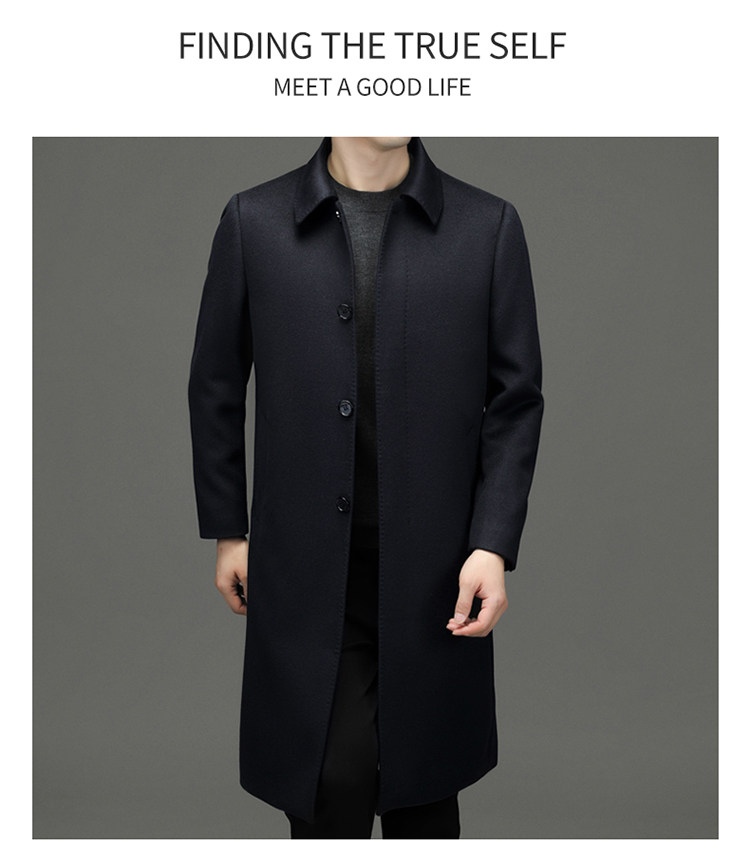 Hengyuanxiang 100% Cashmere Wool Coat for Men, Mid-Length Winter Coat, Long Over-The-Knee with Slits