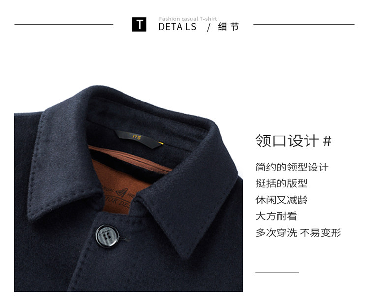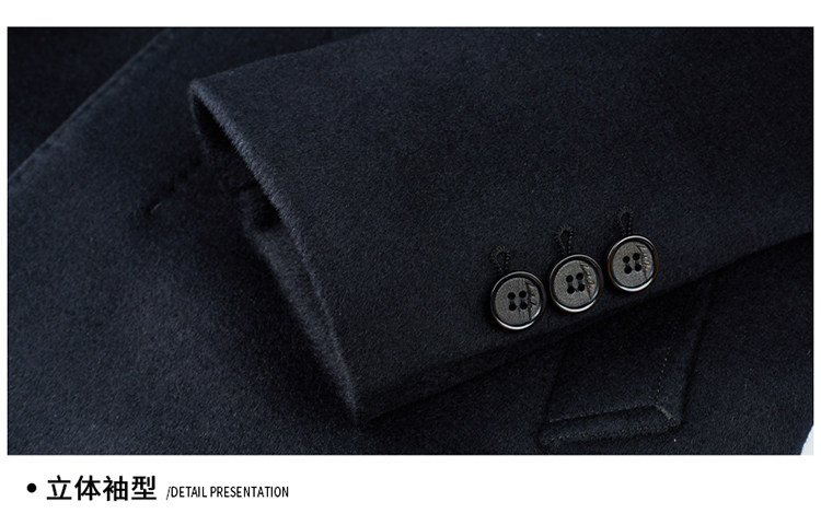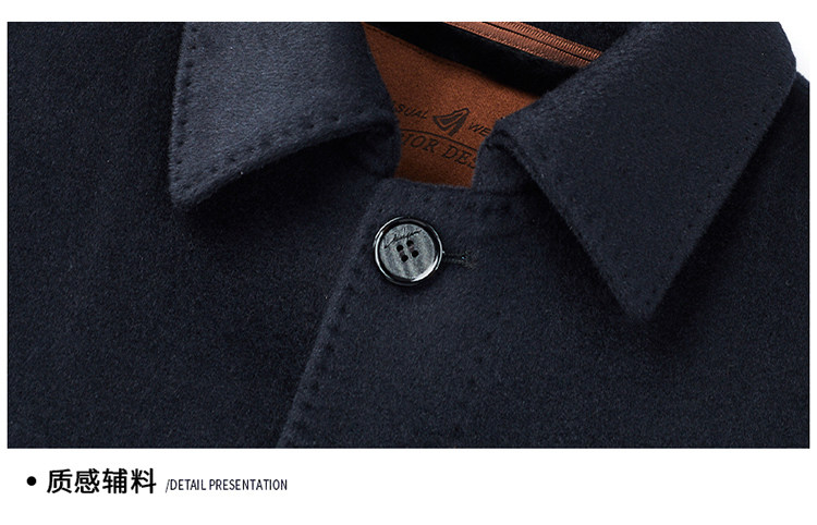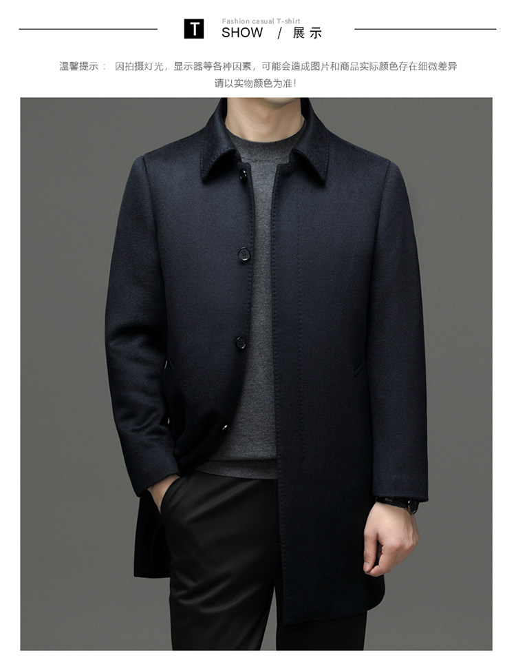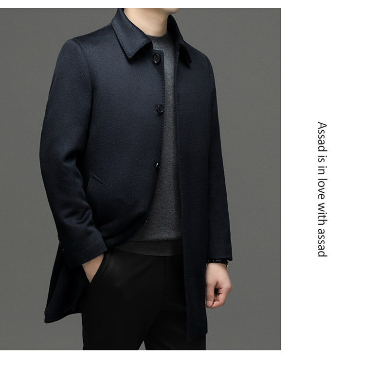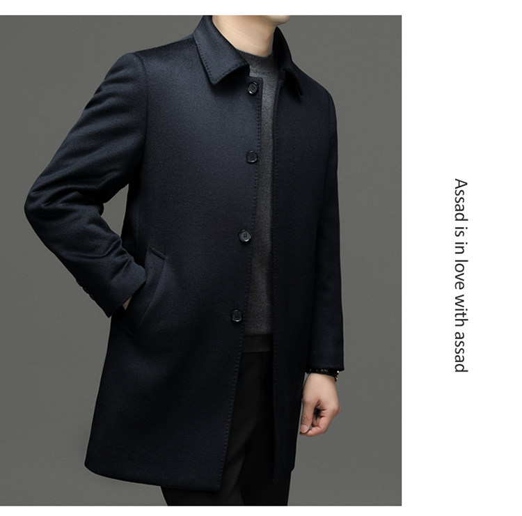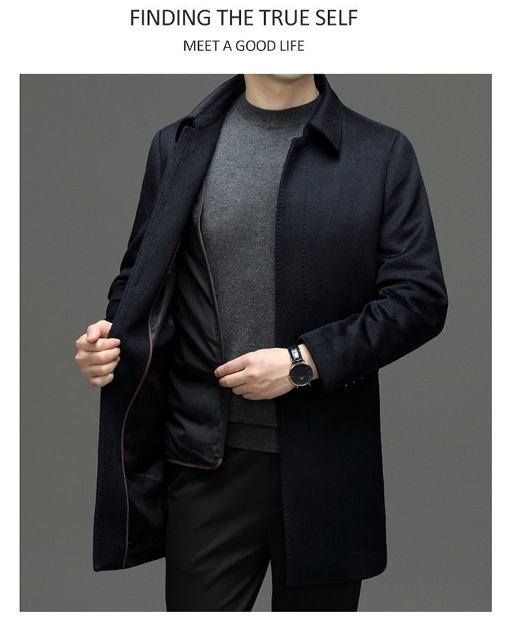 Hengyuanxiang 100% Cashmere Wool Coat for Men, Mid-Length Winter Coat, Long Over-The-Knee with Slits