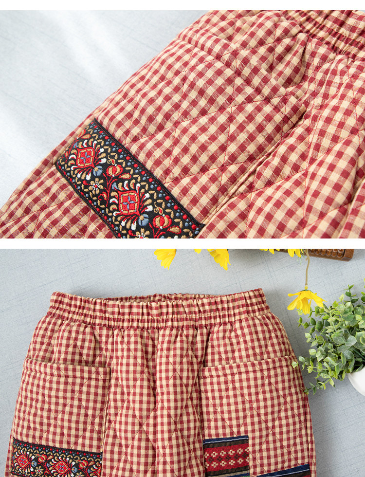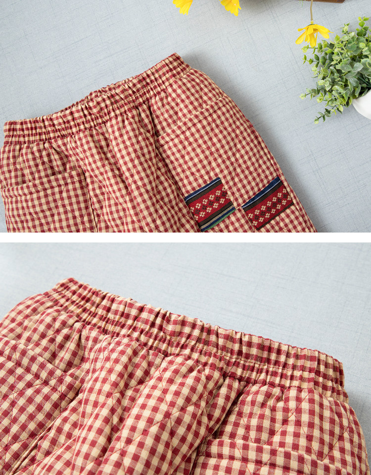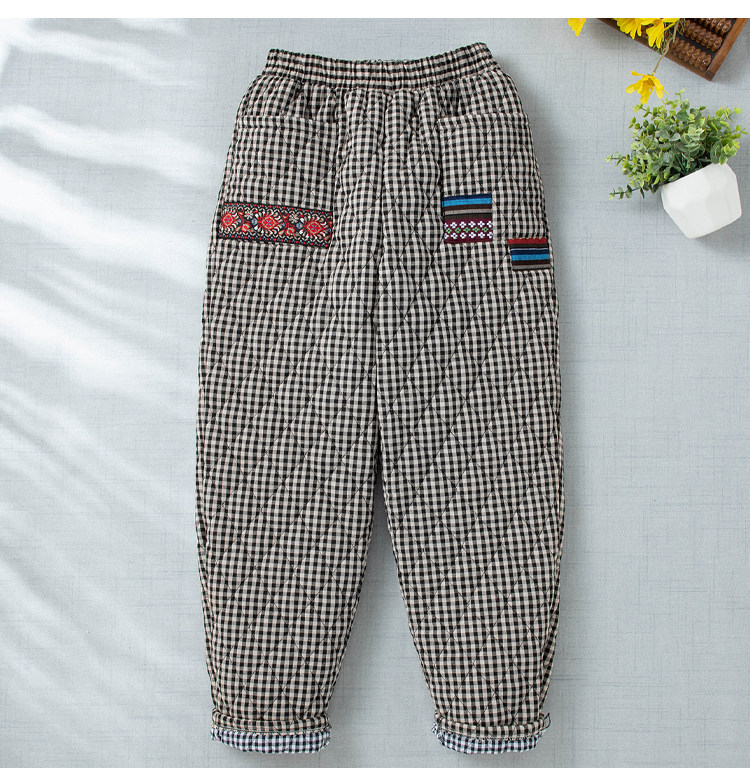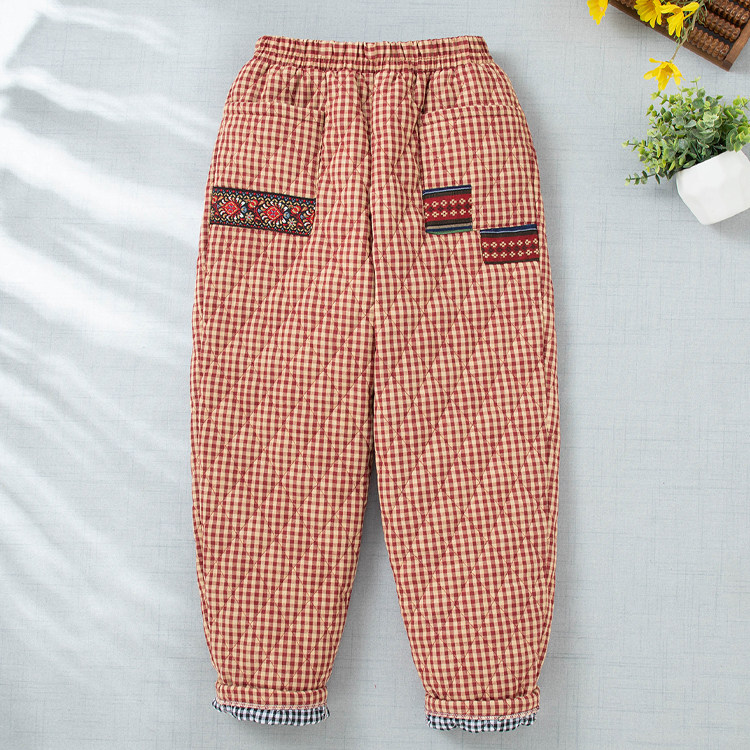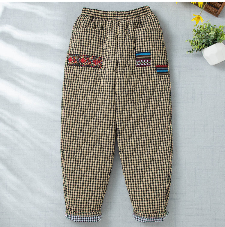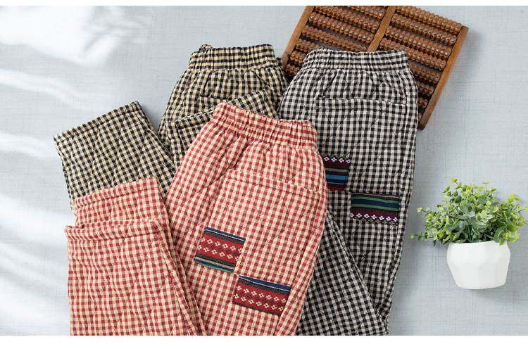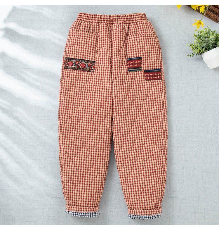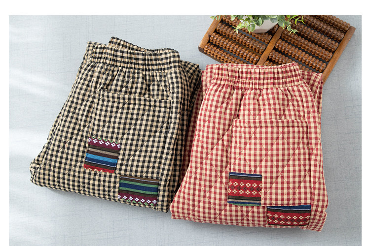 Bargain~ Japanese Style Original Lightweight down Cotton Pants for Women, Plus Size, Thickened, Warm Cotton-Linen Quilted Plaid Harem Pants