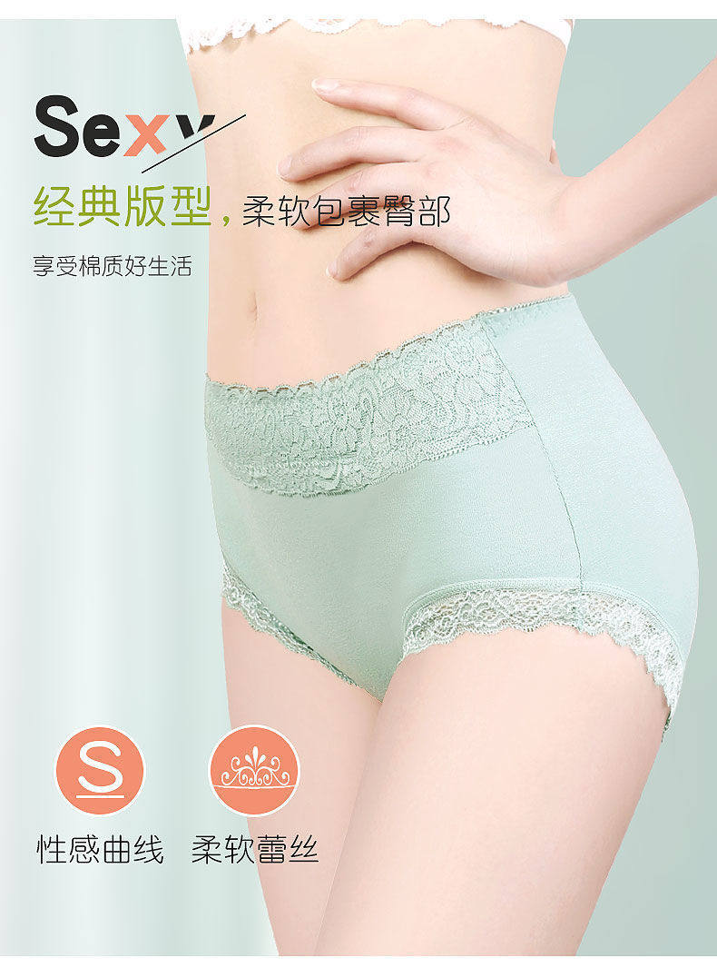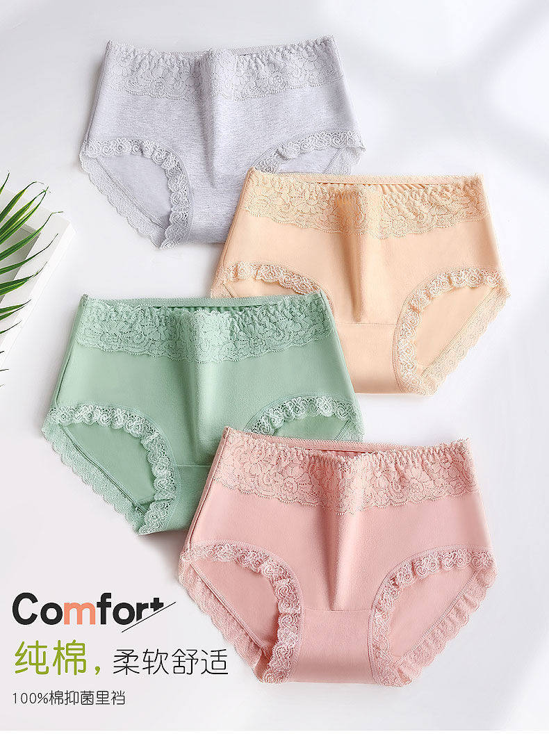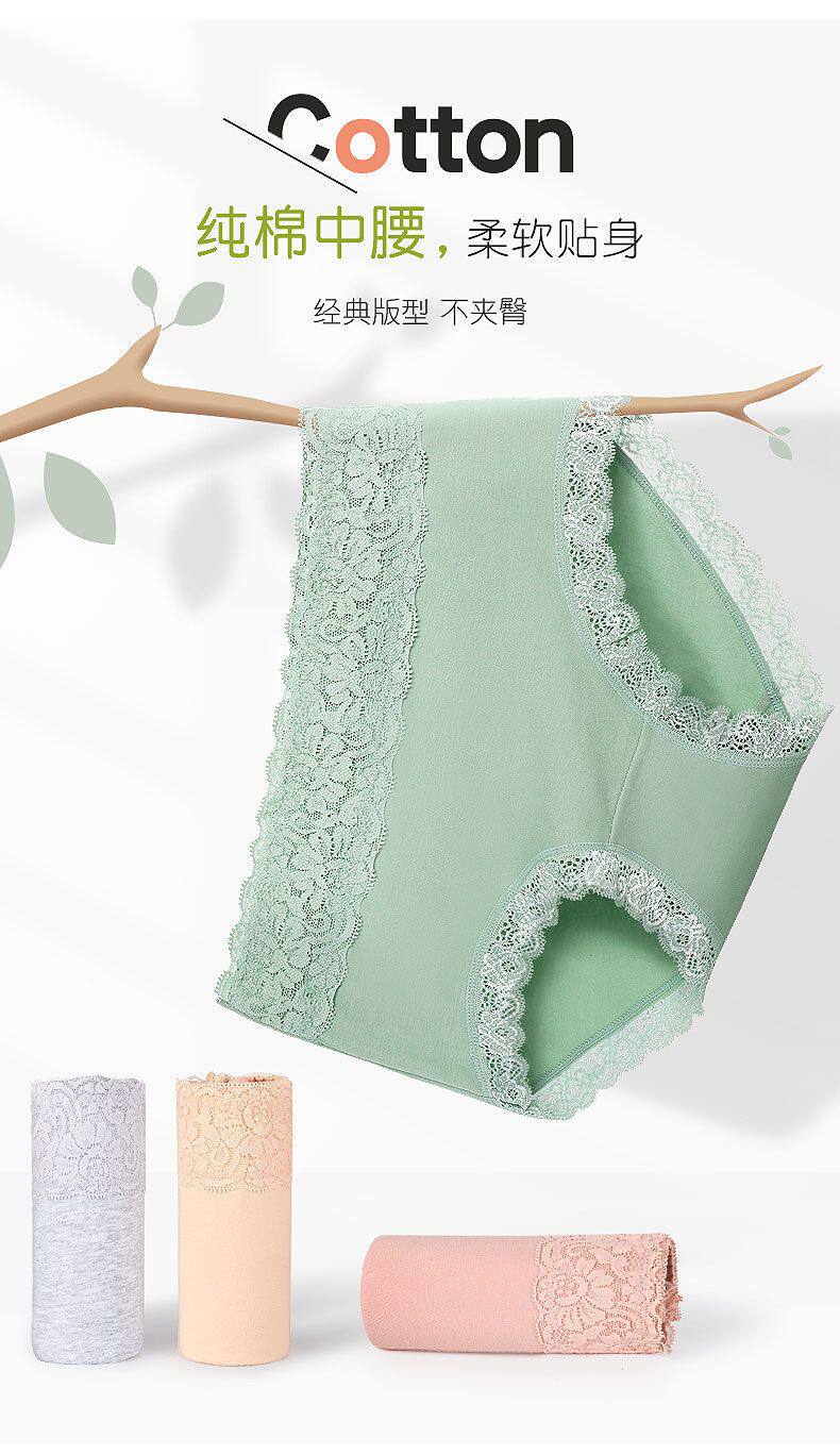 Women's Pure Cotton Antibacterial Mid-Waist 100% Cotton Seamless Large Size Lace Sexy Breathable Women's Briefs
