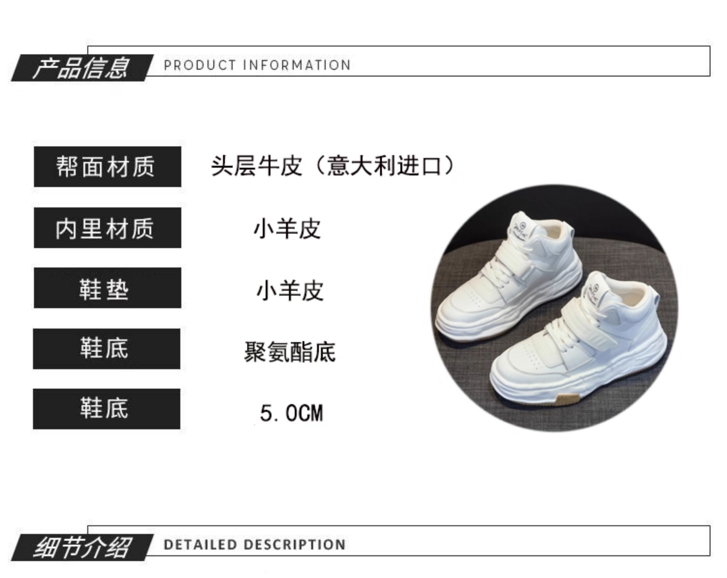Hong Kong Genuine Leather High-Top White Sneakers for Women 2025 Spring and Autumn New Style Velcro Versatile Thick-Soled Dissolving Sports Sneakers