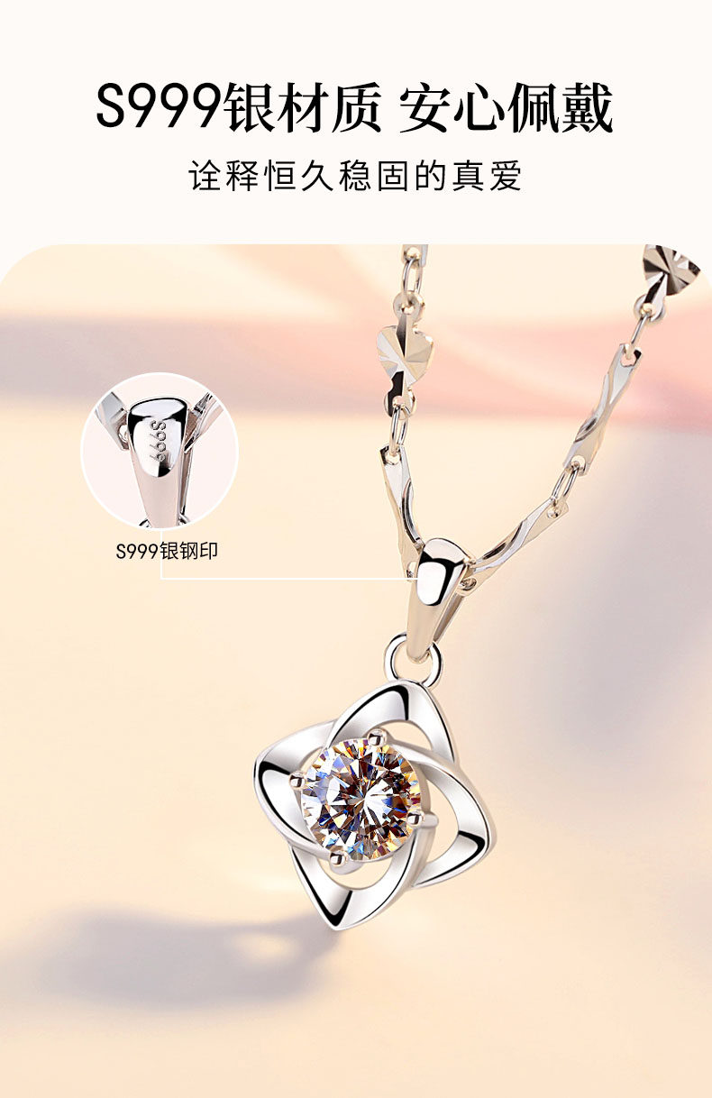 S999 Pure Silver Lucky Four-Leaf Clover Necklace for Women 2026 New Popular Collarbone Chain Birthday Valentine's Day Gift for Girlfriend