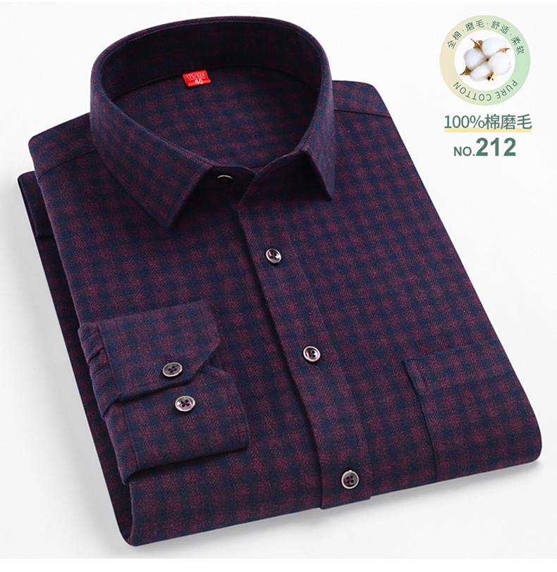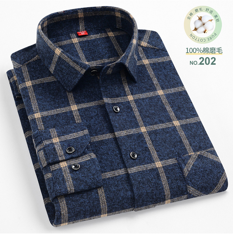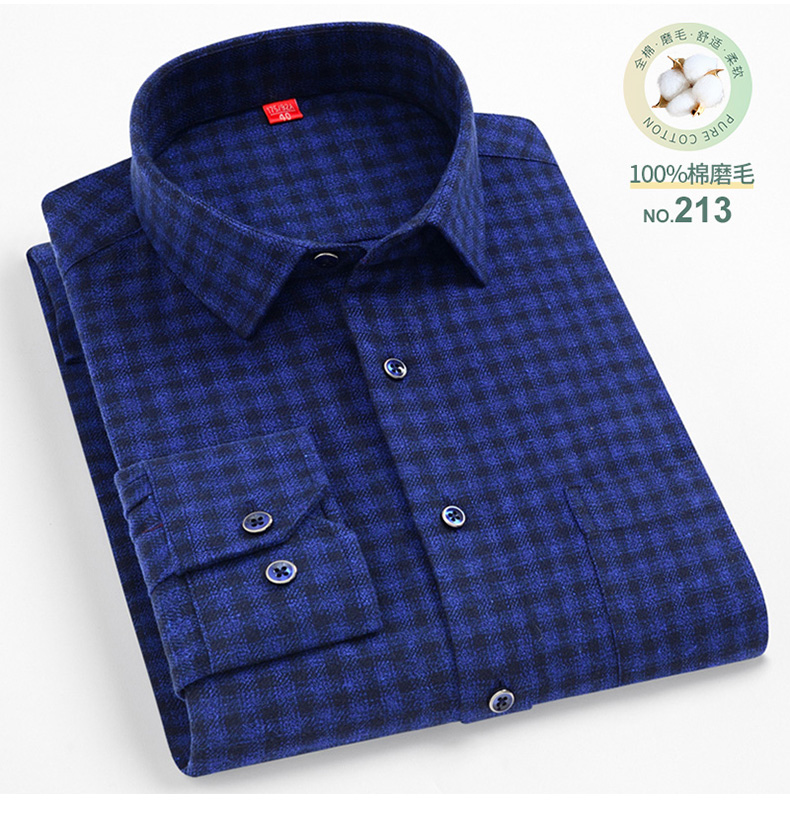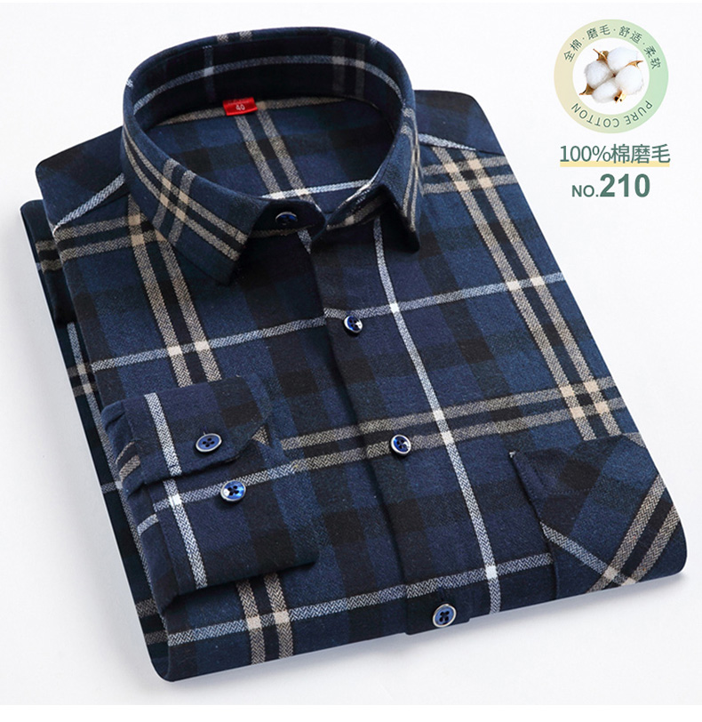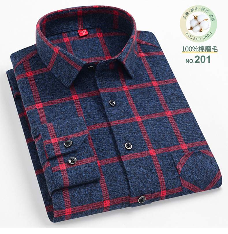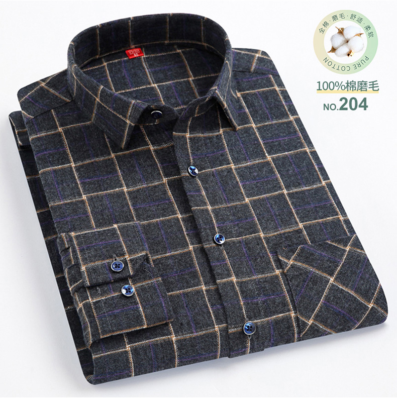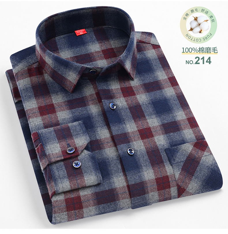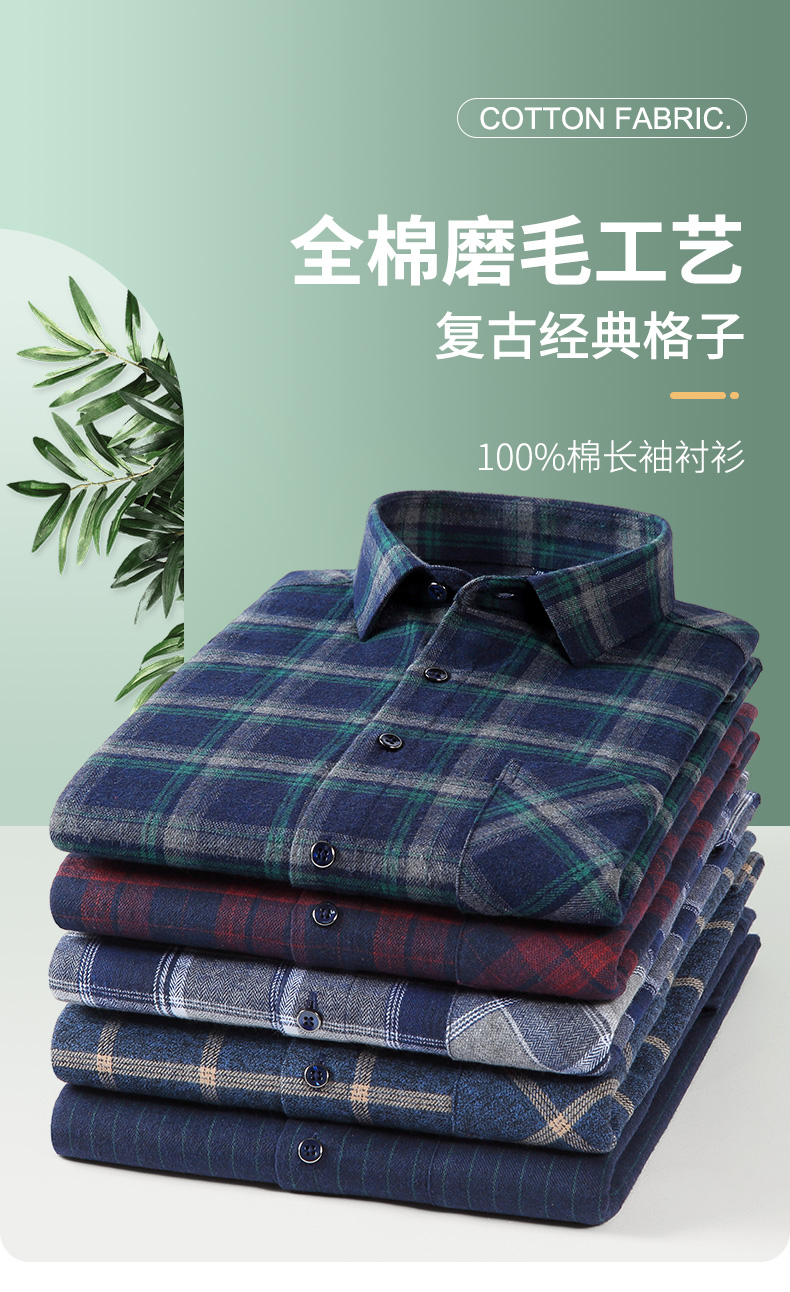 Paul 100% Pure Cotton Men's Brushed Long-Sleeve Shirt, Middle-Aged Casual Spring and Autumn Style, All-Cotton Plaid Shirt, Dad's Clothing