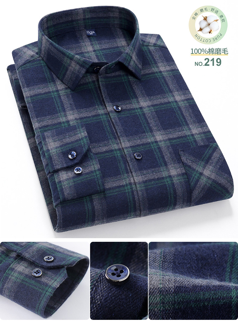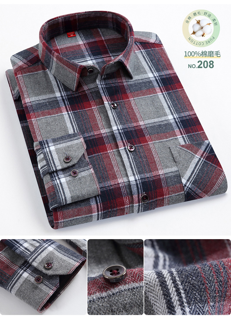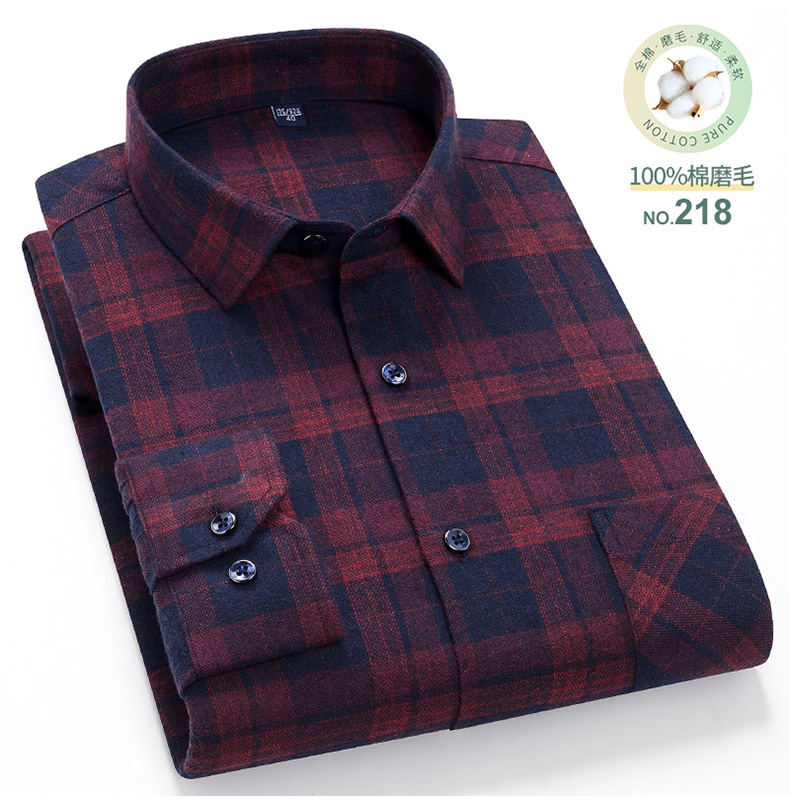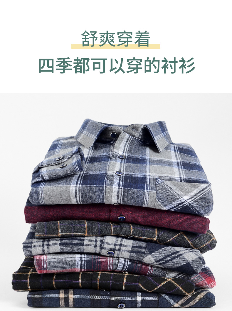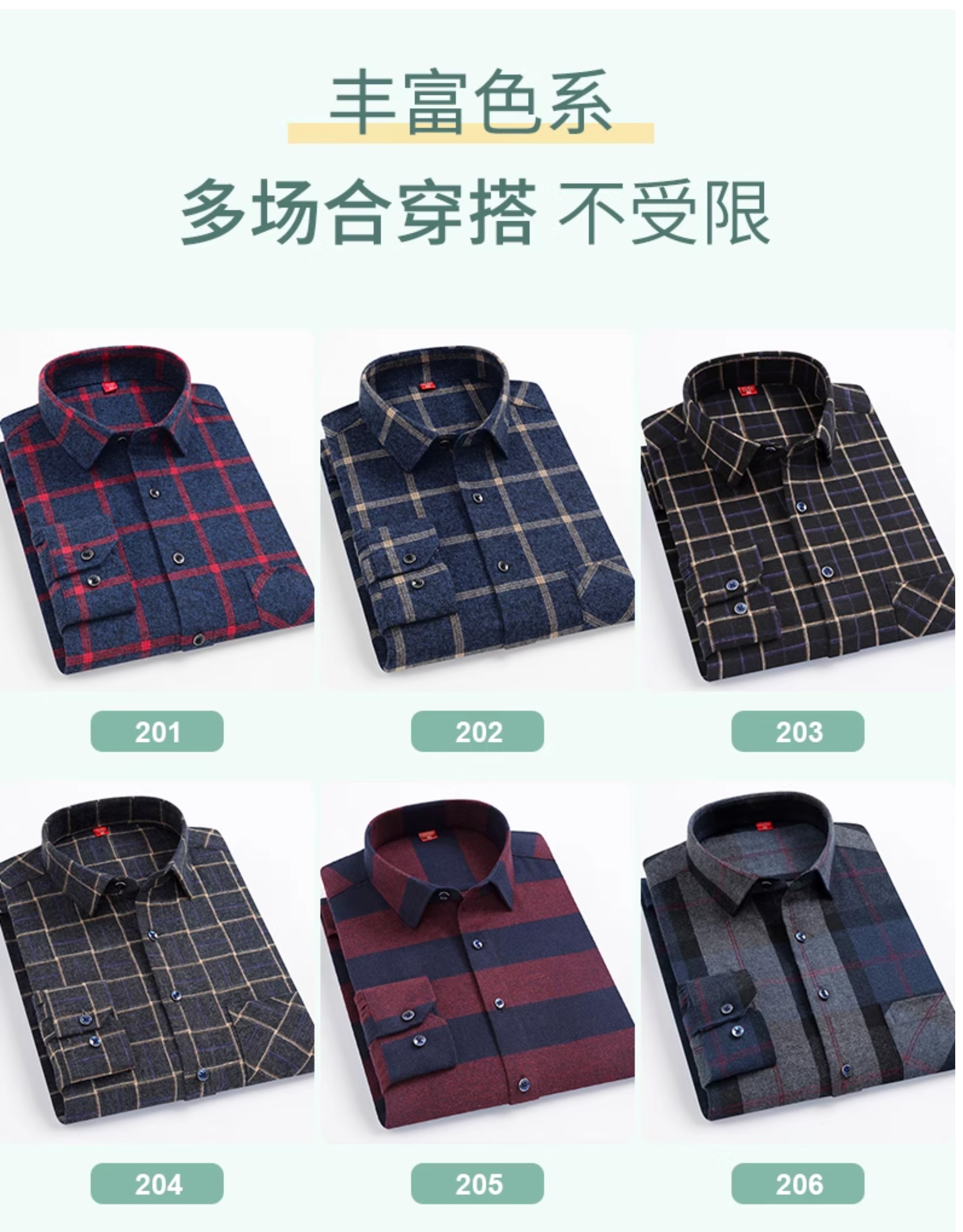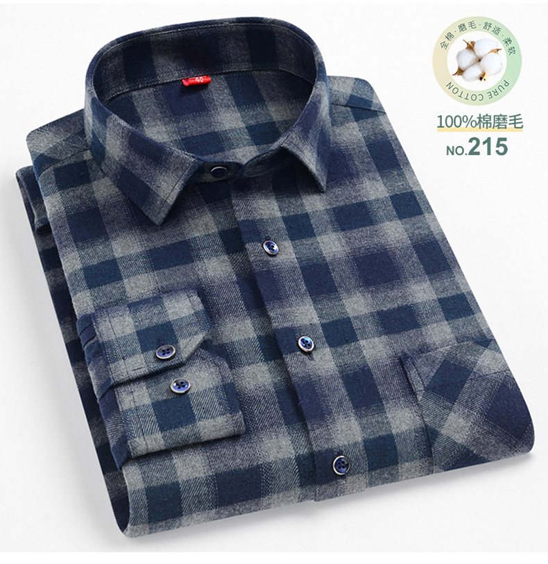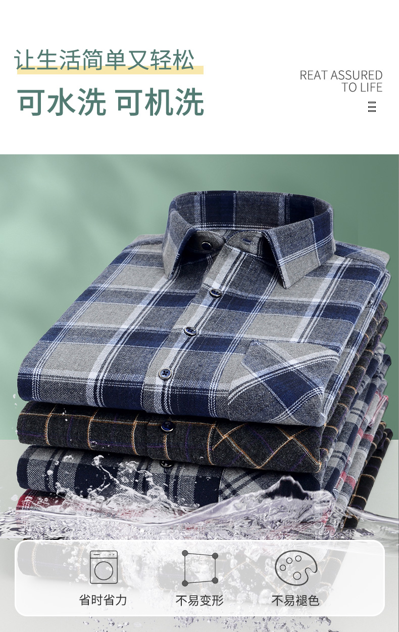 Paul 100% Pure Cotton Men's Brushed Long-Sleeve Shirt, Middle-Aged Casual Spring and Autumn Style, All-Cotton Plaid Shirt, Dad's Clothing