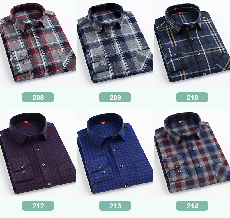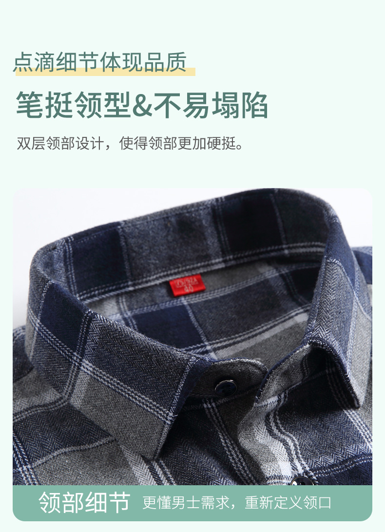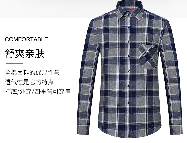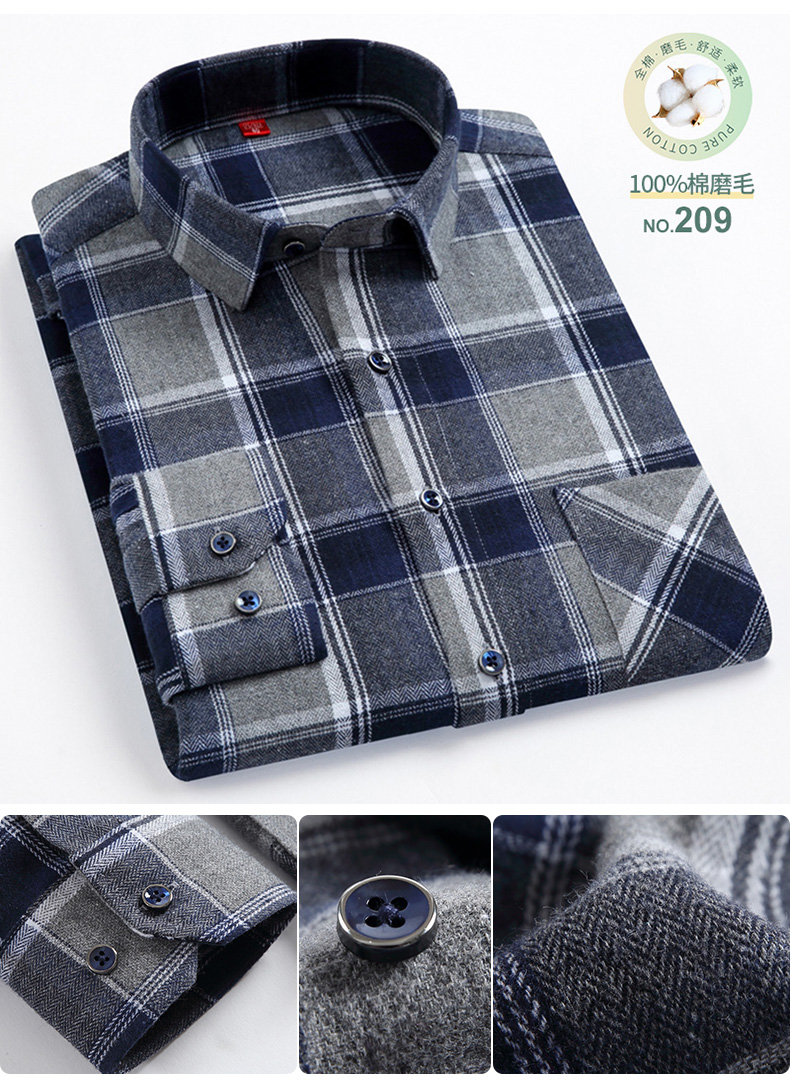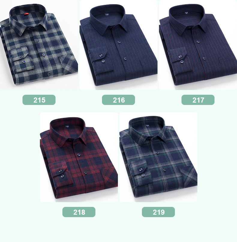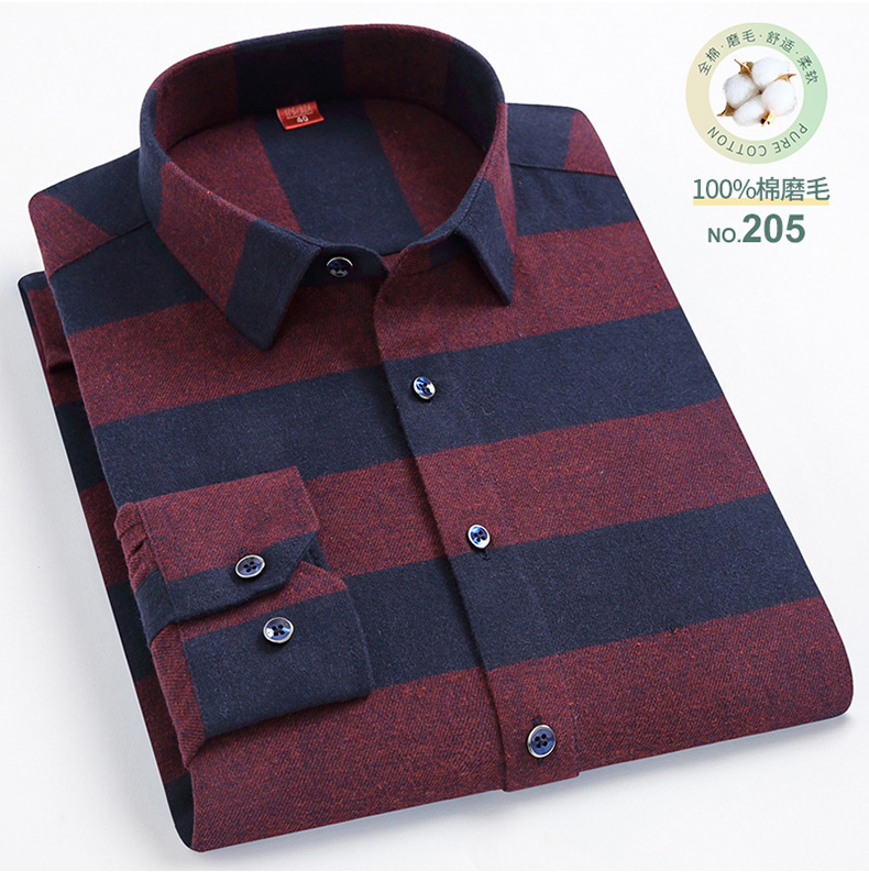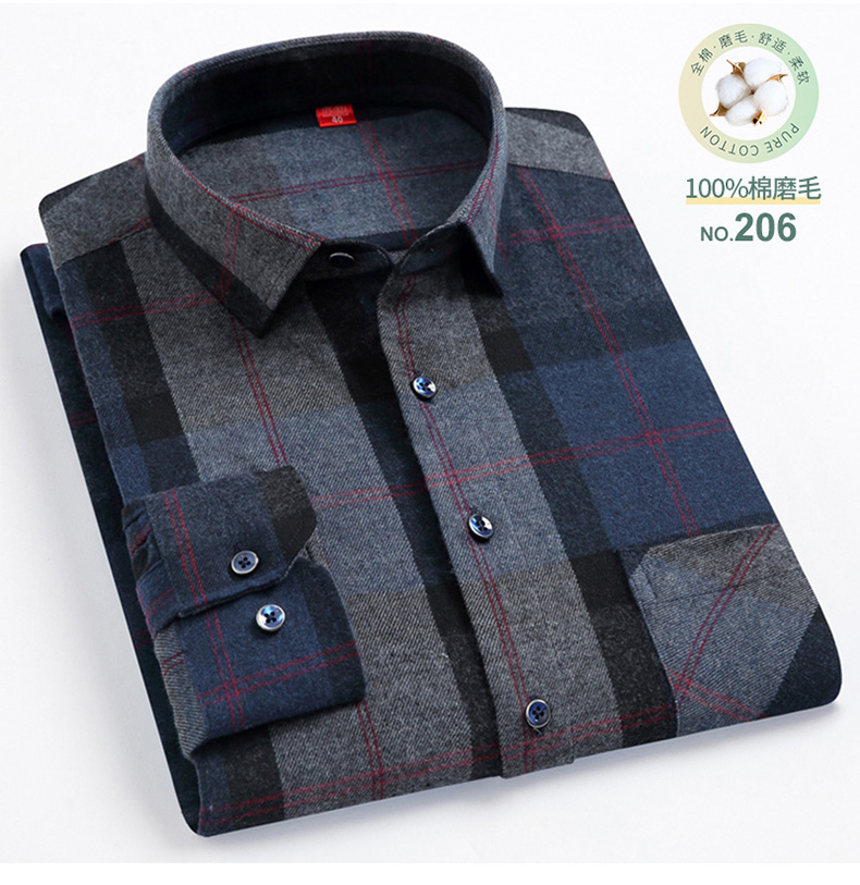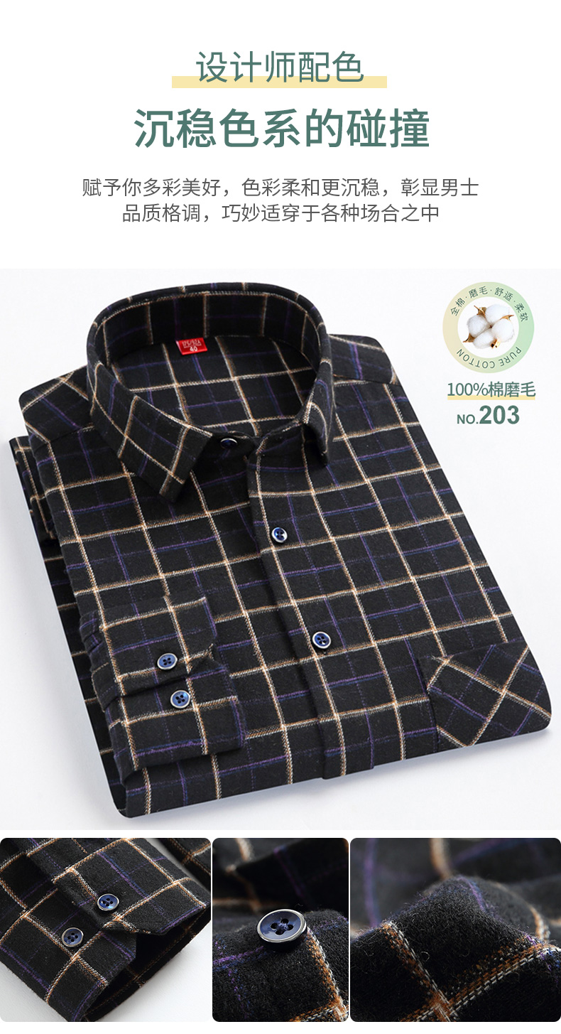 Paul 100% Pure Cotton Men's Brushed Long-Sleeve Shirt, Middle-Aged Casual Spring and Autumn Style, All-Cotton Plaid Shirt, Dad's Clothing