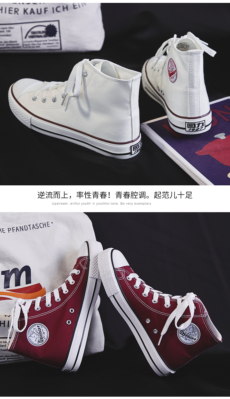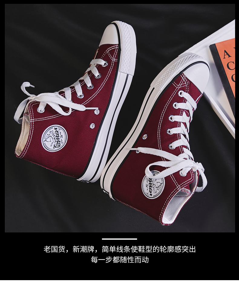 Pull Back Canvas Shoes for Women, High-Top Red Canvas Shoes, Women's 2025 Spring New Trendy Student Casual Cloth Shoes, Board Shoes for Girls