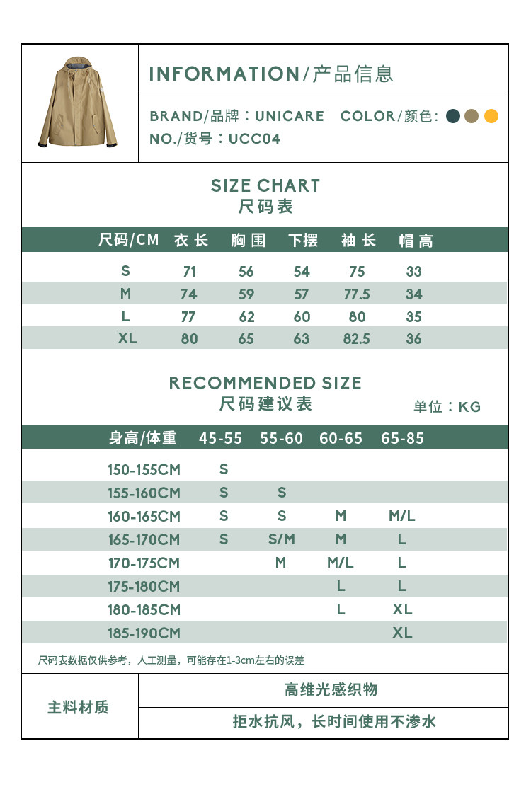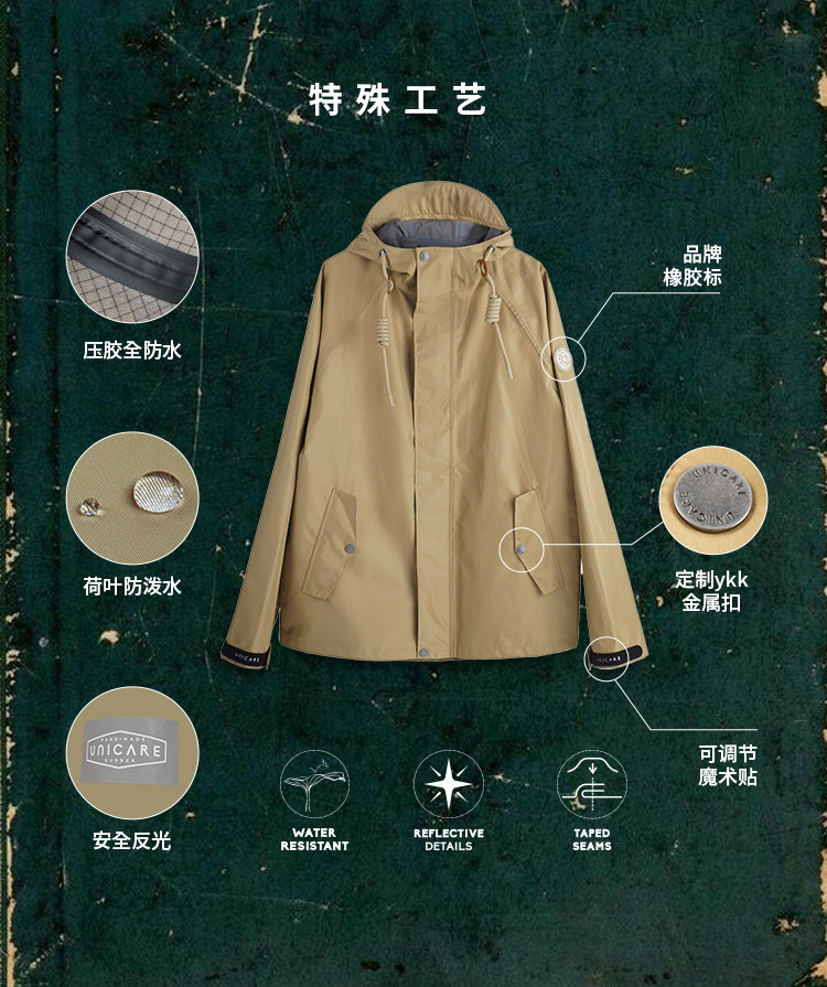Unicare Professional Outdoor Camping Softshell Jacket-Style Raincoat, Functional Retro Waterproof and Wind-Resistant