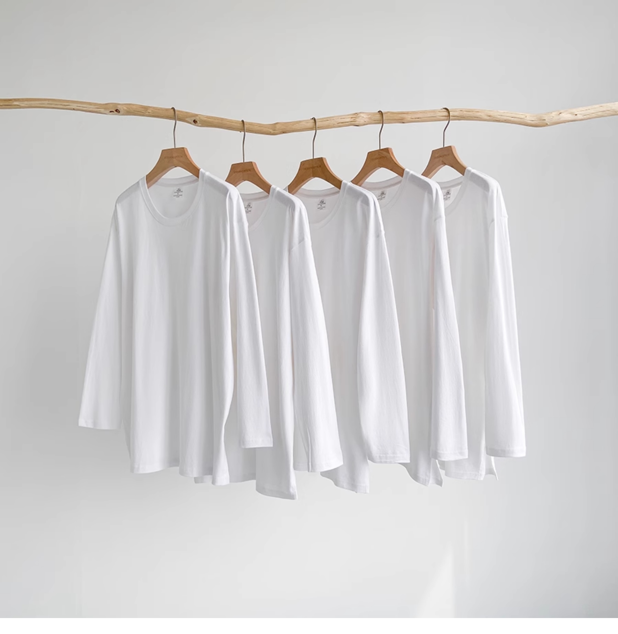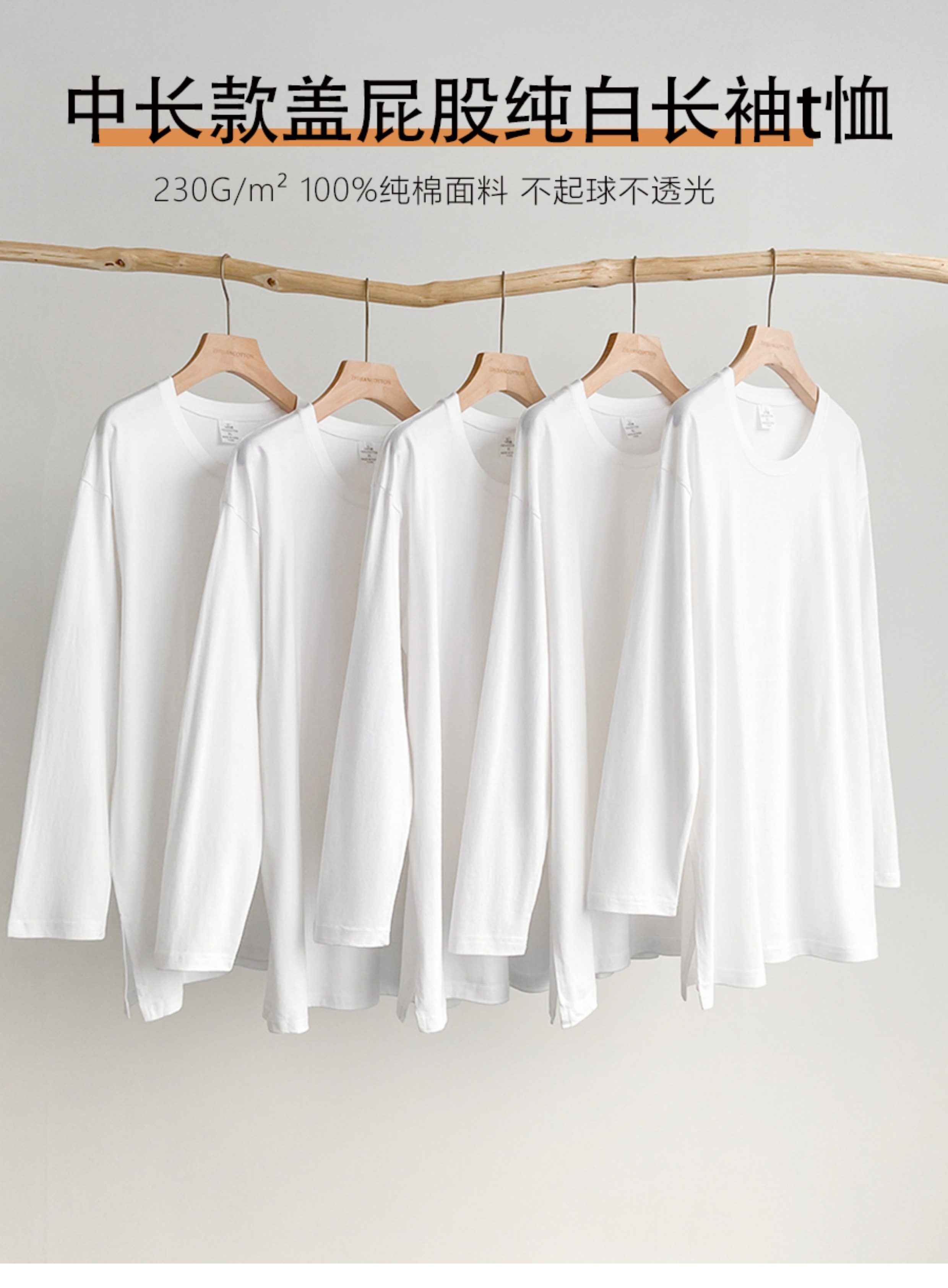 Simple Pure Cotton Long-Sleeve T-Shirt, White Base Layer Top for Women, Mid-Length Sweatshirt to Cover the Buttocks, 2025 Autumn Top