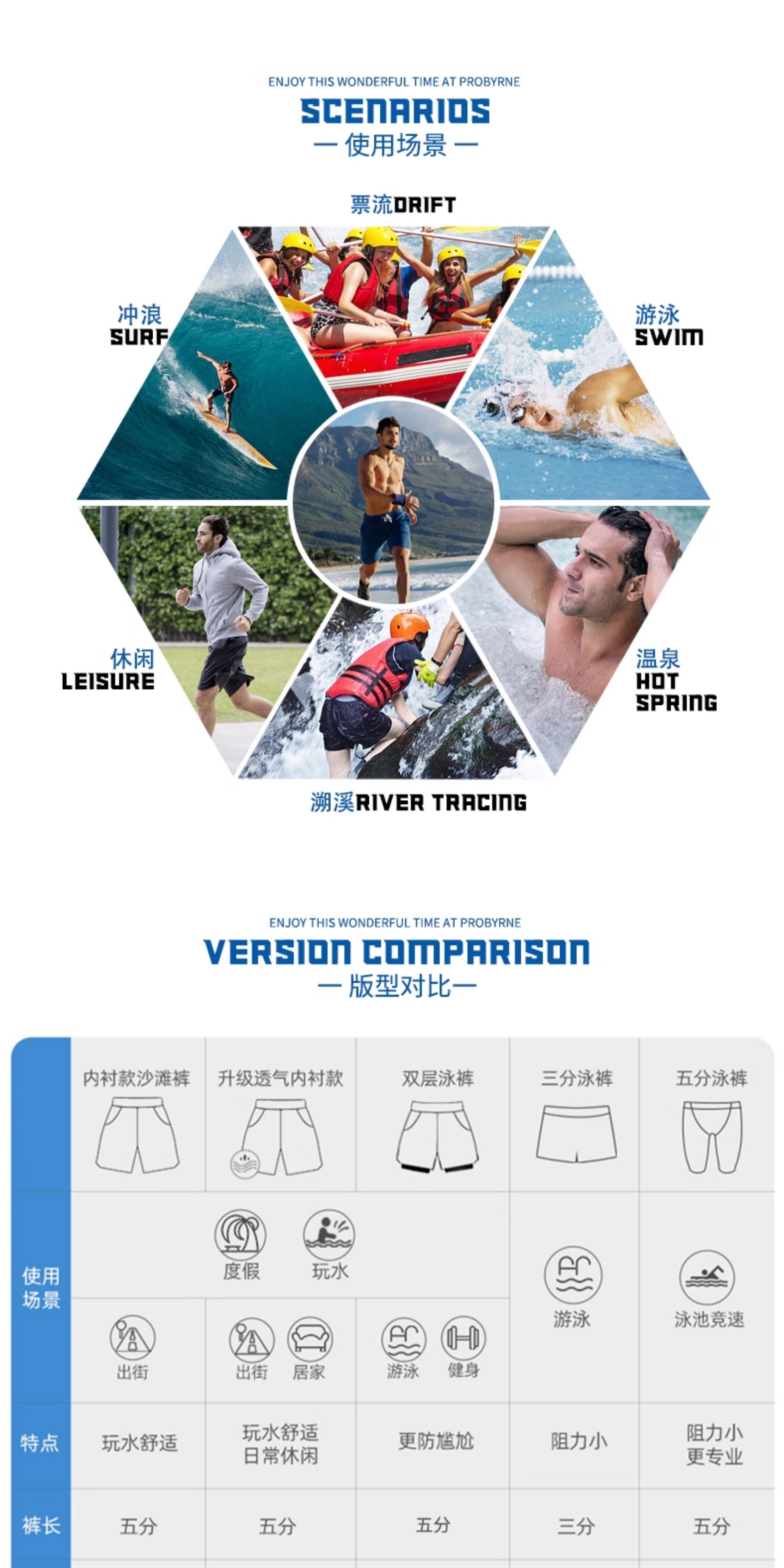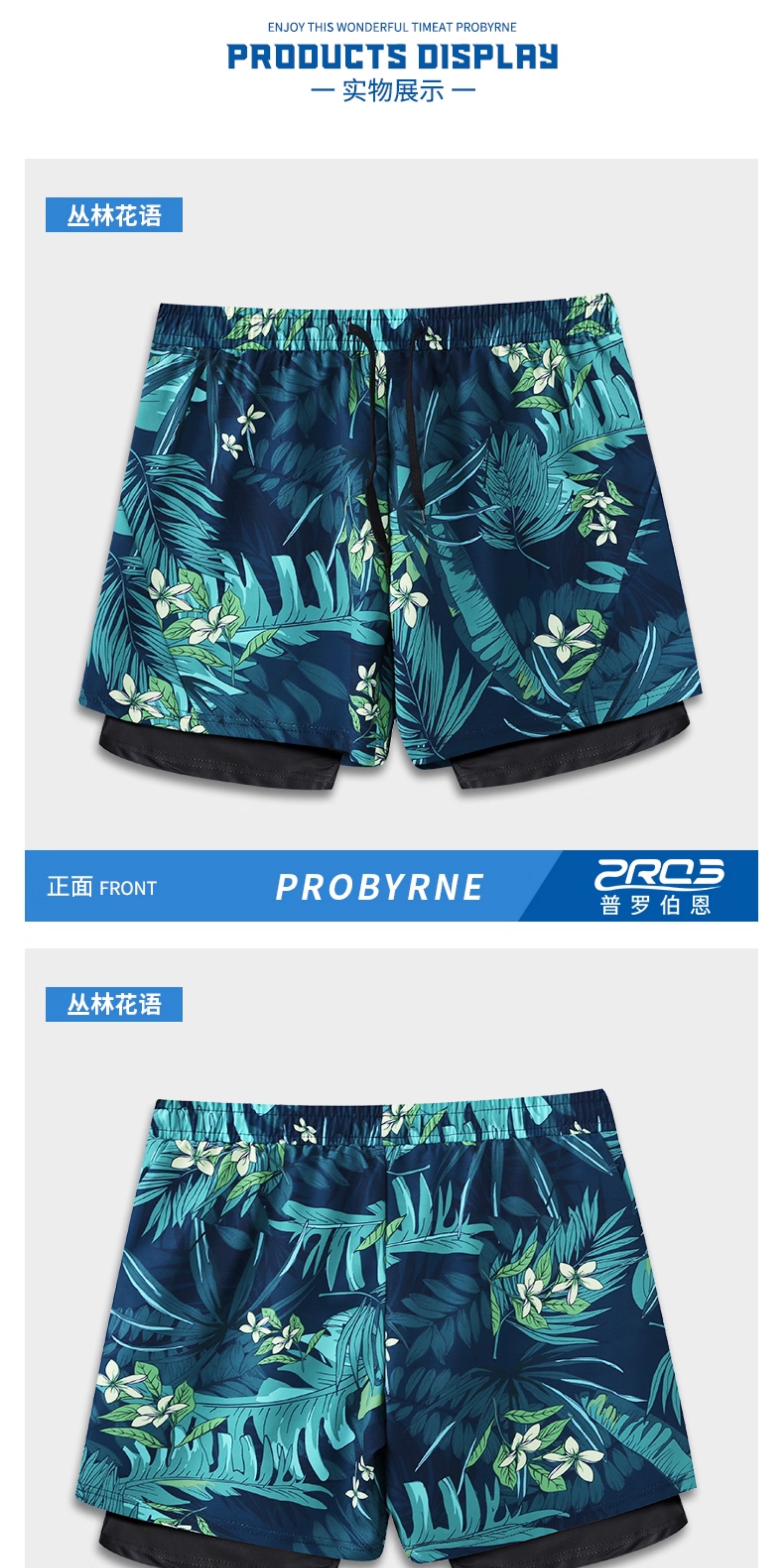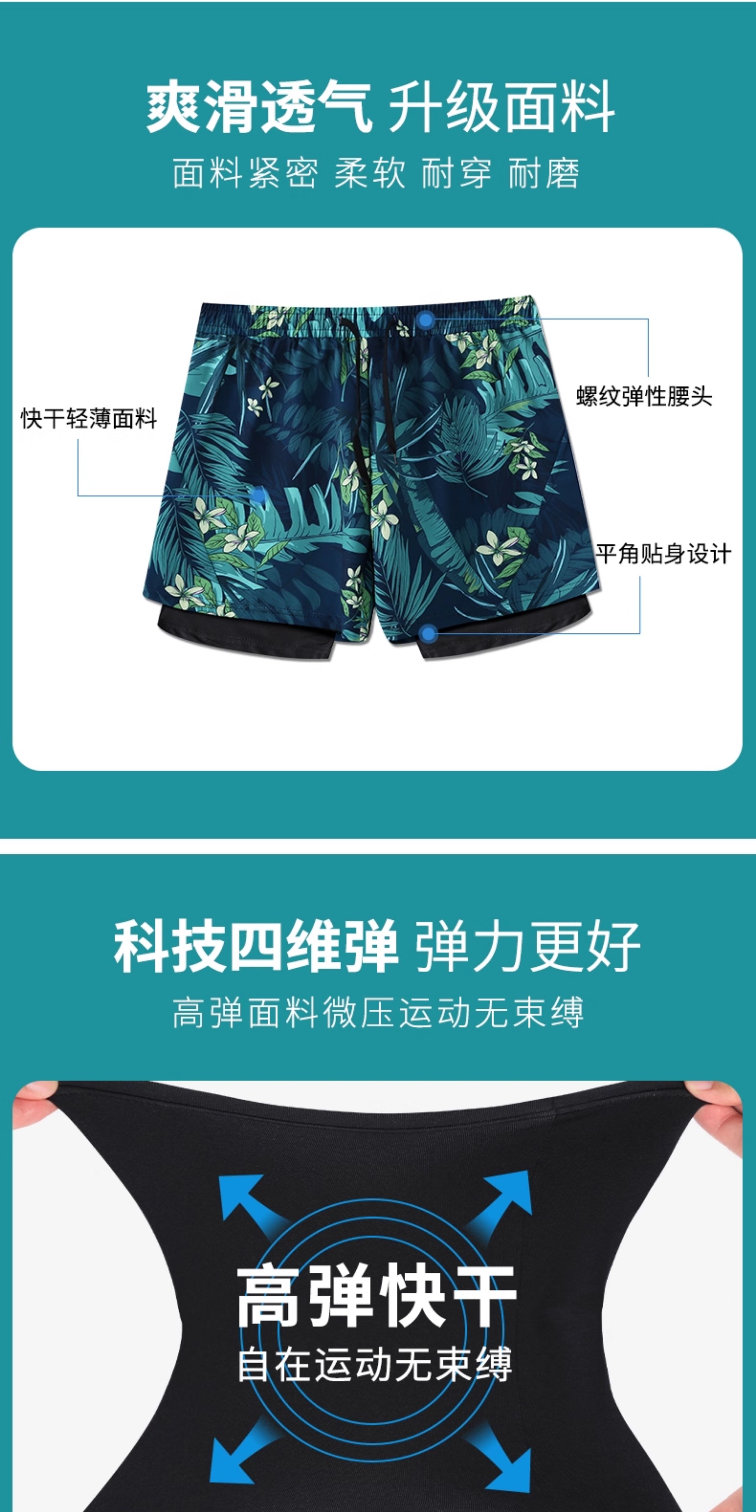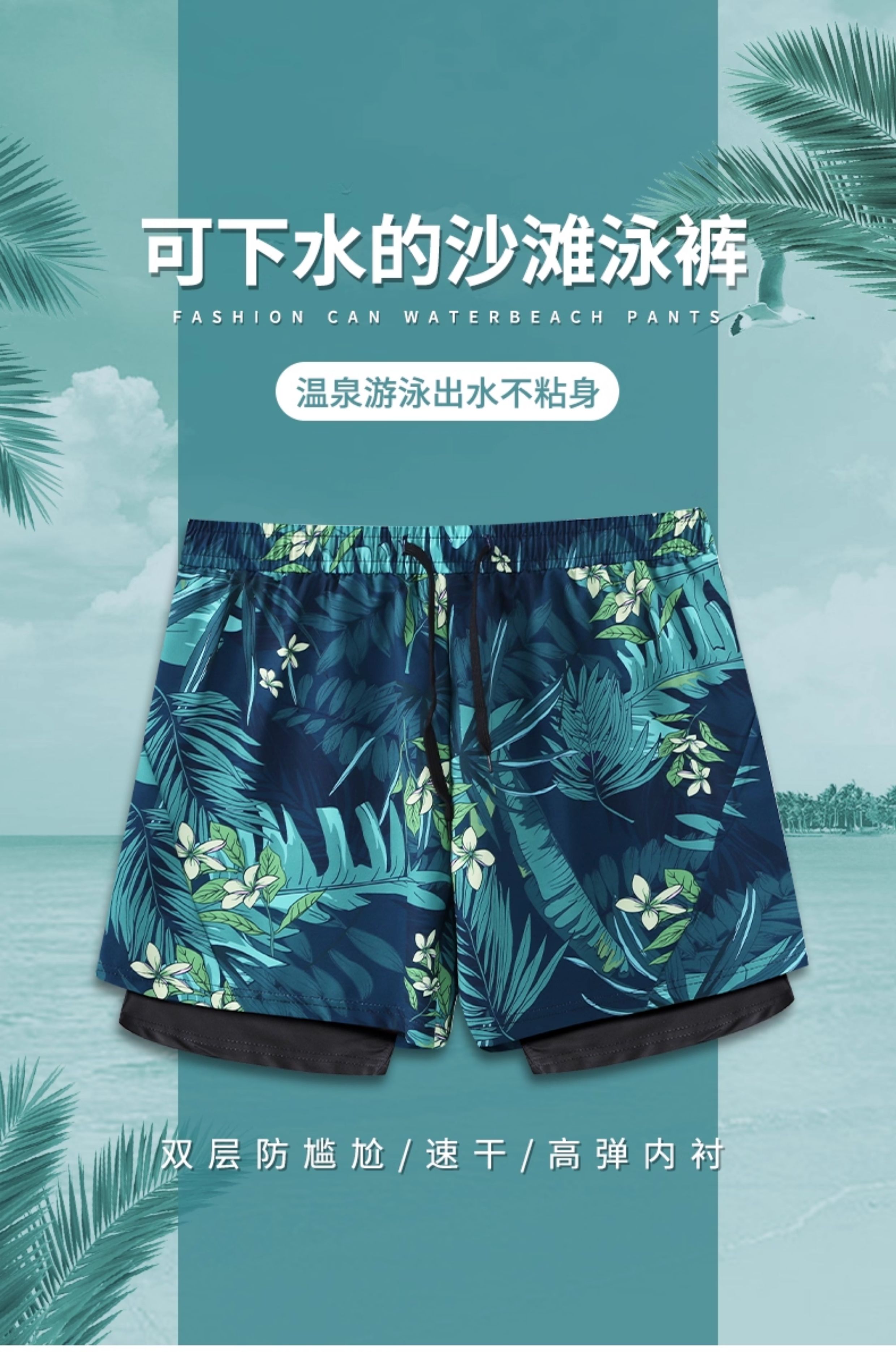Double-Layer Anti-Embarrassment Beach Shorts Men's Swimwear Quick-Drying Couple's Lined Five-Point Shorts Seaside Hot Spring Large Size Swim Trunks