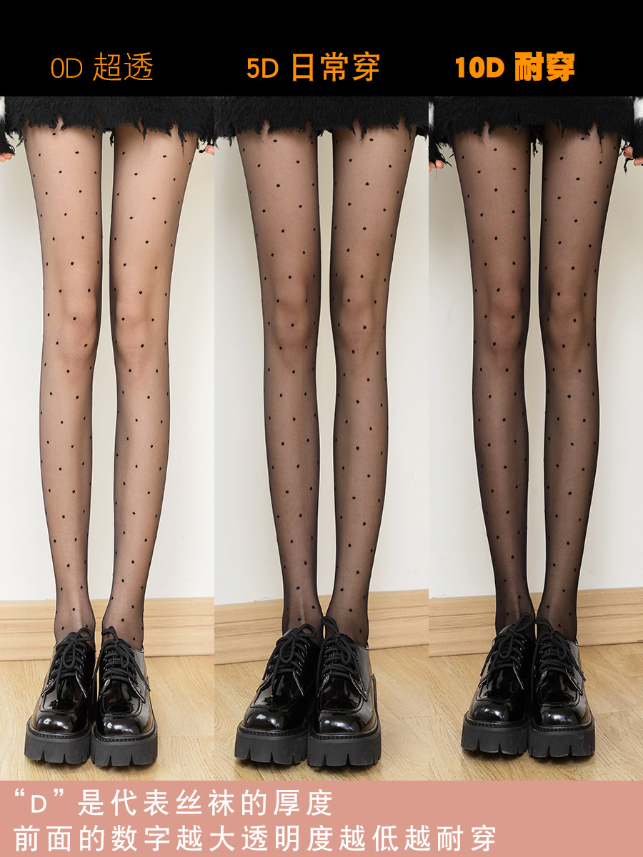 Polka Dot Stockings for Women in Spring and Autumn, Thin Black Dotted Pantyhose, 0D Black Sheer Pantyhose, Heart-Shaped Black Stockings