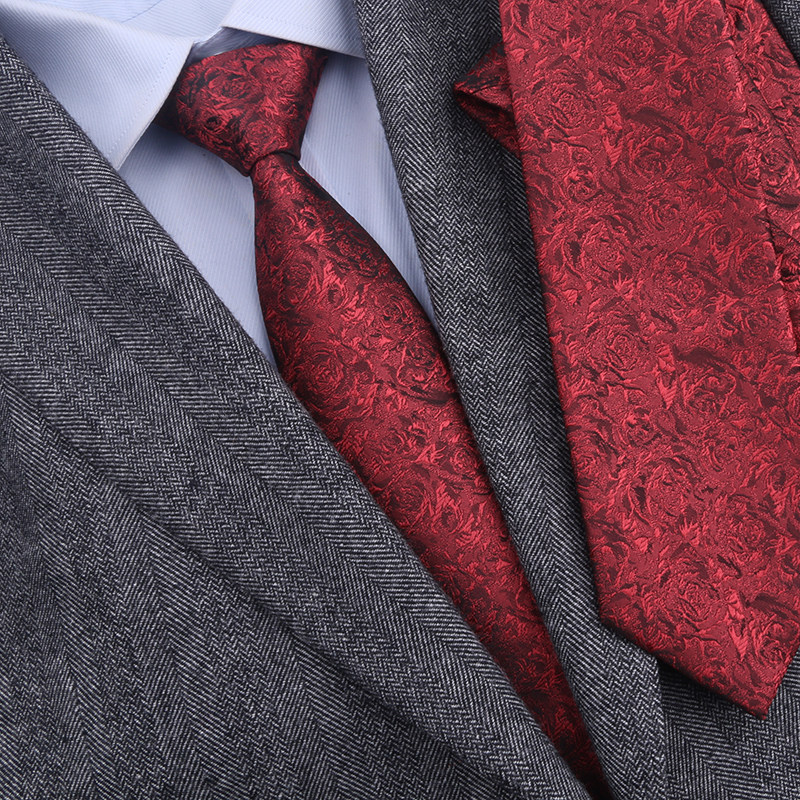 Burgundy Rose Mulberry Silk Tie Men's Formal Business Groom Wedding Professional Burgundy Zipper Tie