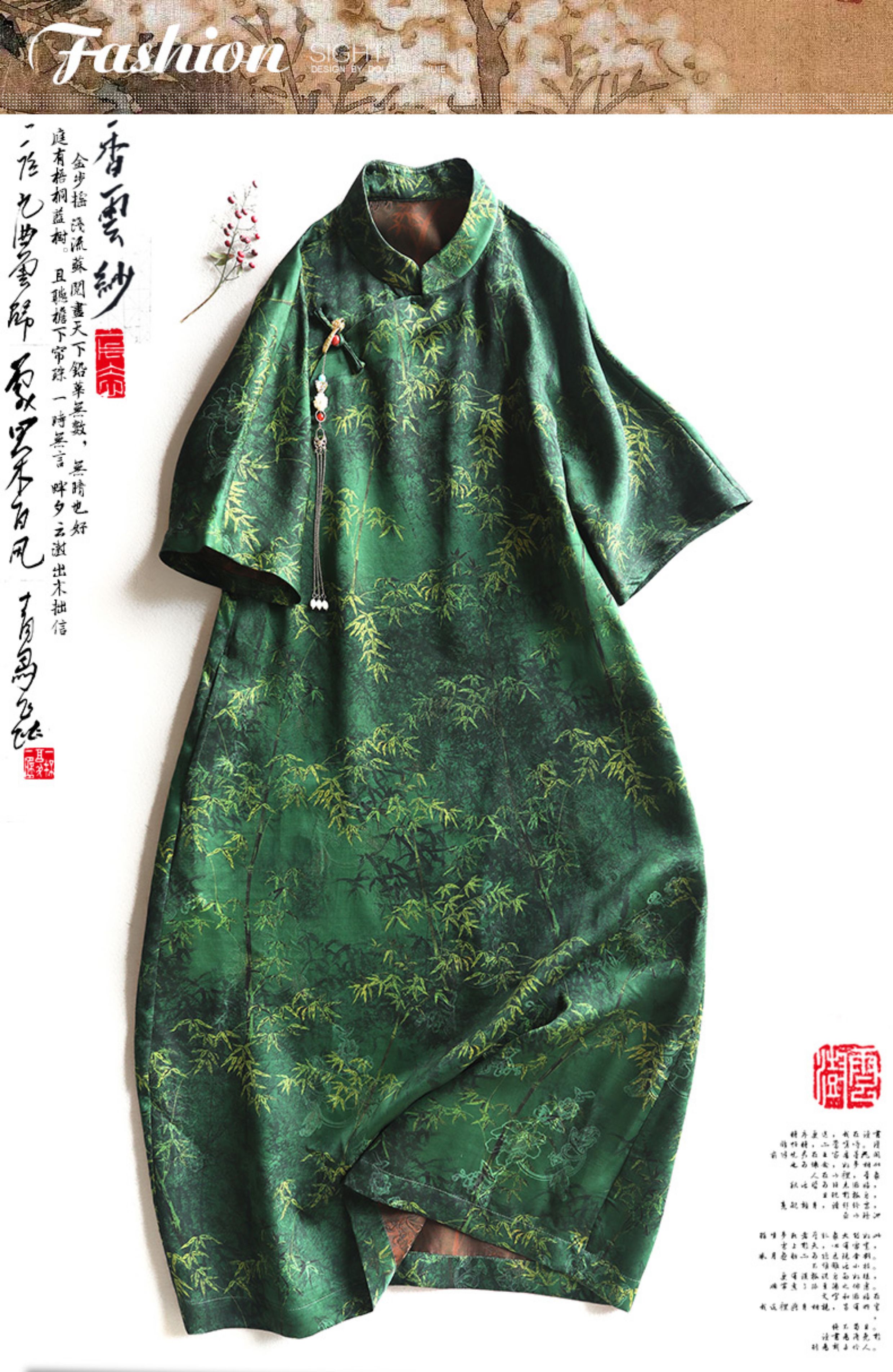 Yunshu Original Floral Fragrant Cloud Silk Light Chinese-Style Improved Loose Cheongsam Dress New Chinese-Style Artistic Long Dress for Summer