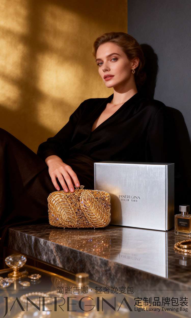 High-End Evening Dress with Evening Clutch Bag, Women's Light Luxury Wedding Cheongsam Bag, Gold Rhinestone Banquet Clutch Bag