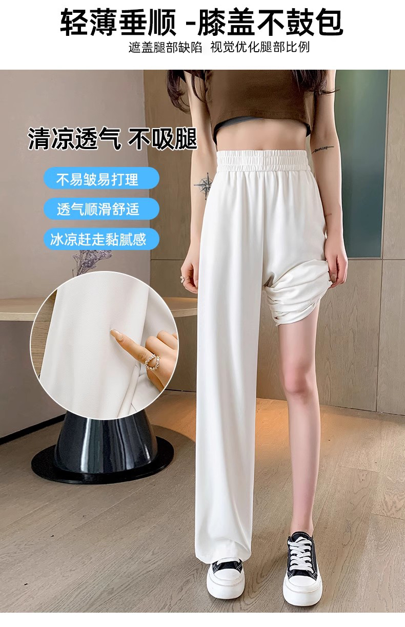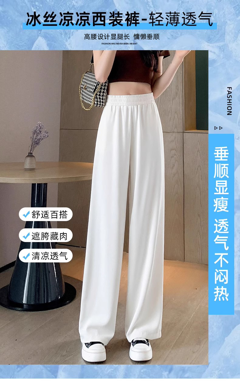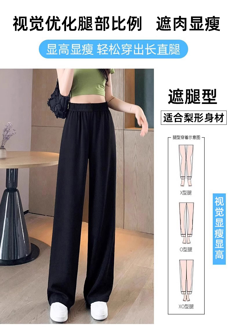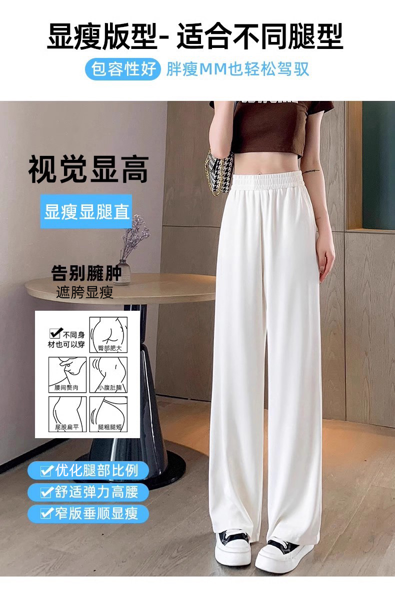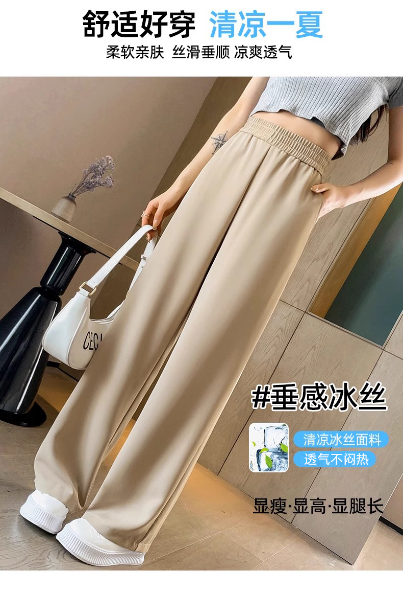 2025 Summer Ice Silk Thin Narrow Wide-Leg Suit Pants for Women, Spring and Autumn High-Waisted Loose Casual Slimming Draped Straight-Leg Pants