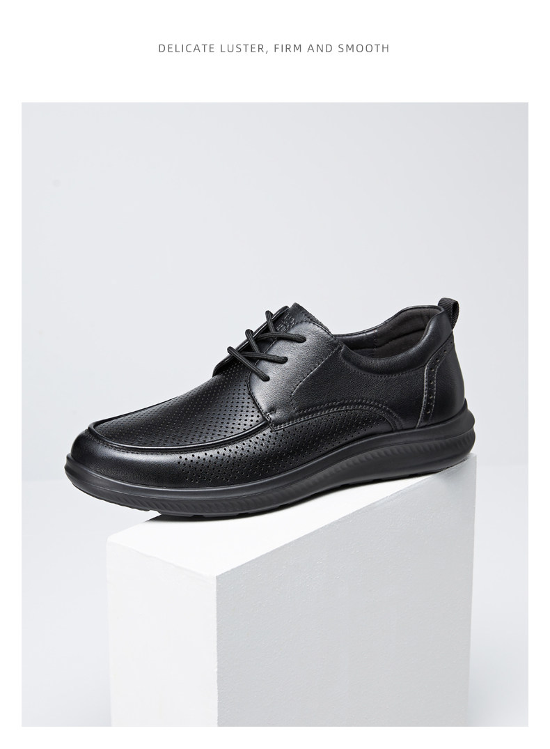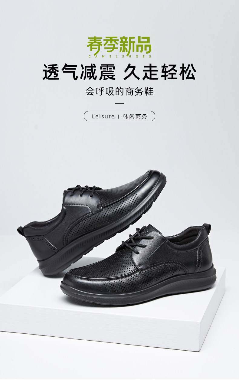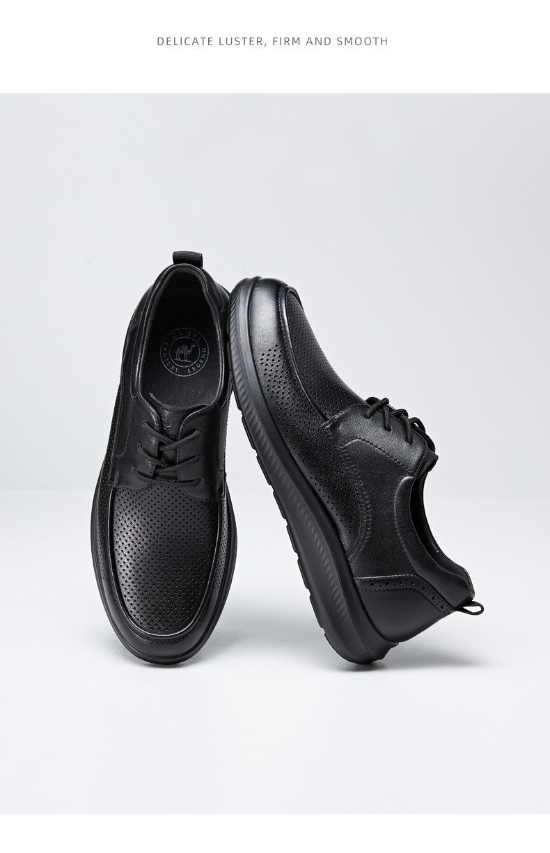 Camel Men's Shoes Comfortable 2026 Summer New Leather Shoes Men's Cowhide Breathable Perforated Casual Business Dad Shoes