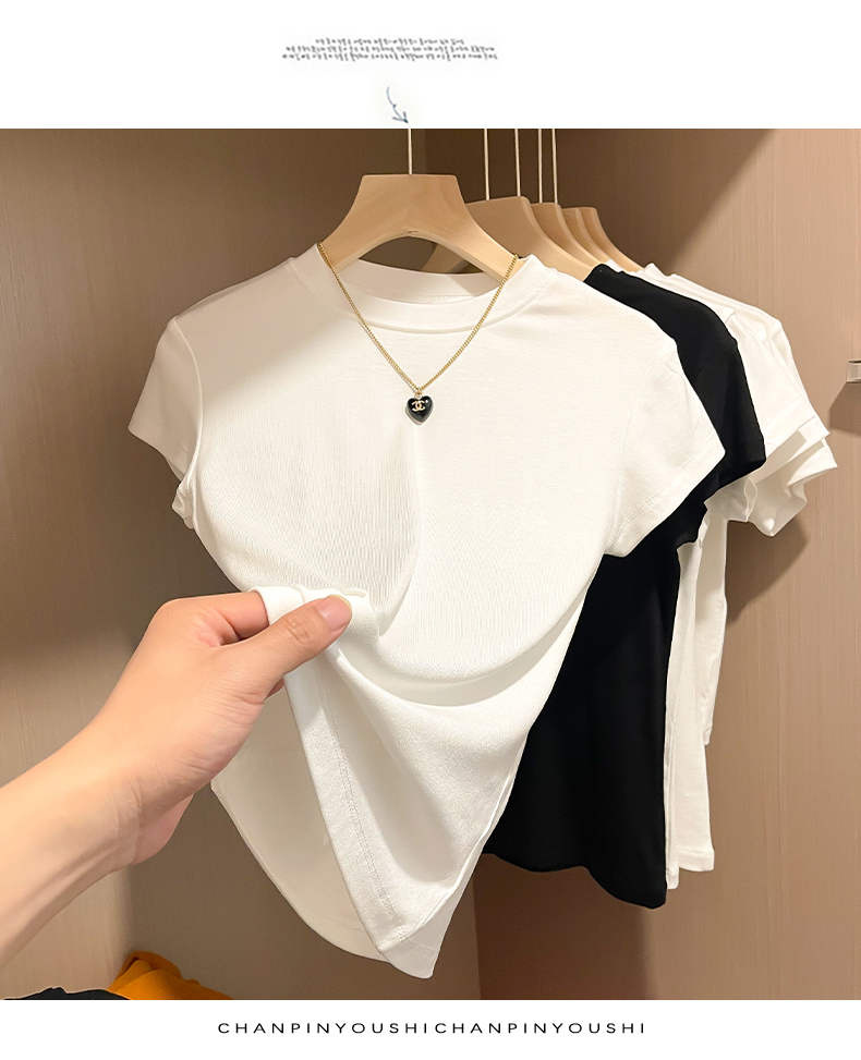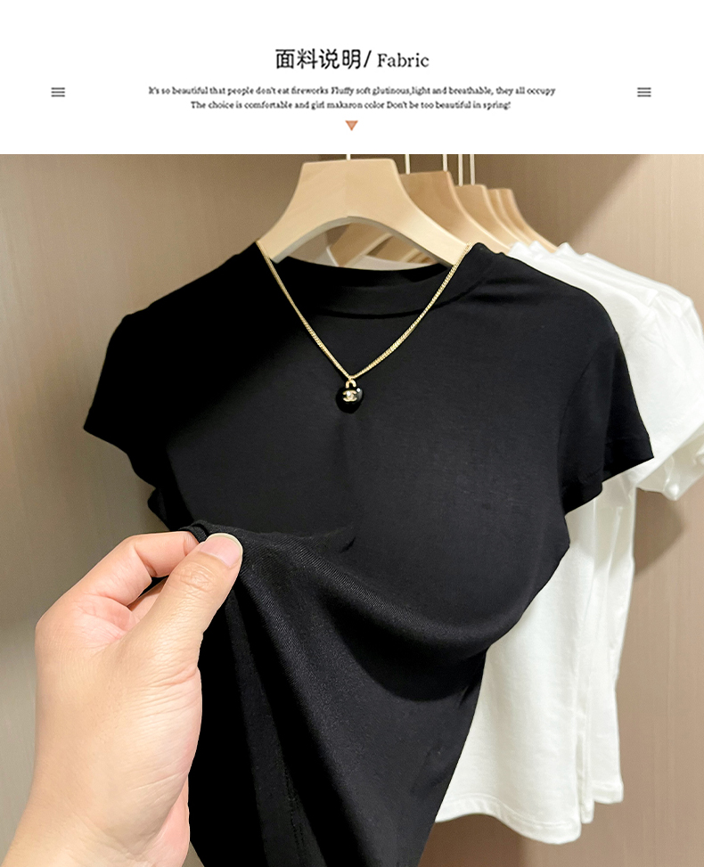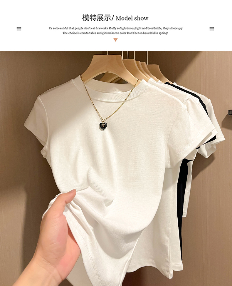 2025 Early Spring New Short-Sleeved T-Shirt for Women, Regular Shoulder, White, Summer Half-High Collar Top, Slim Fit Shirt, Base Layer Shirt