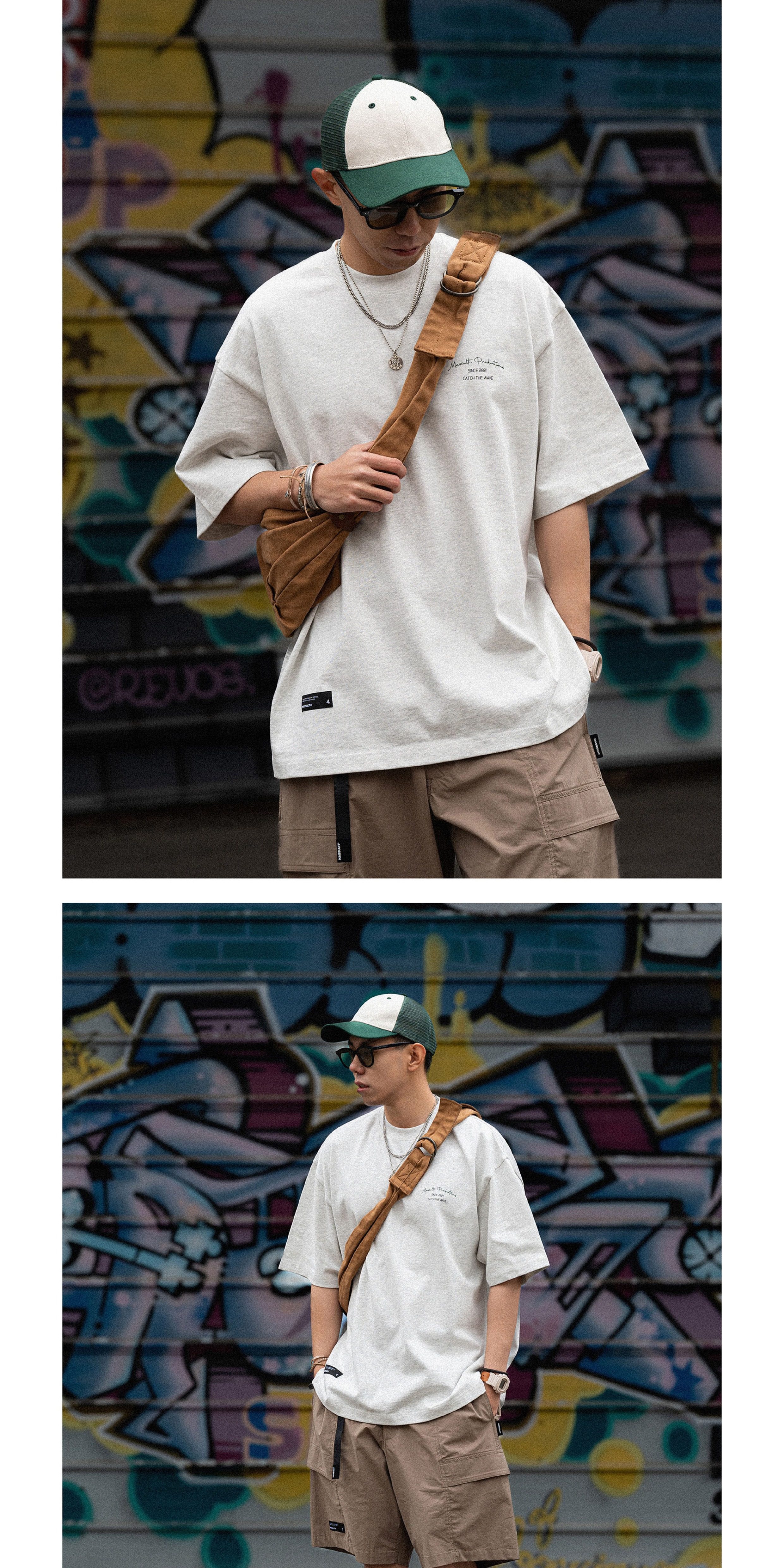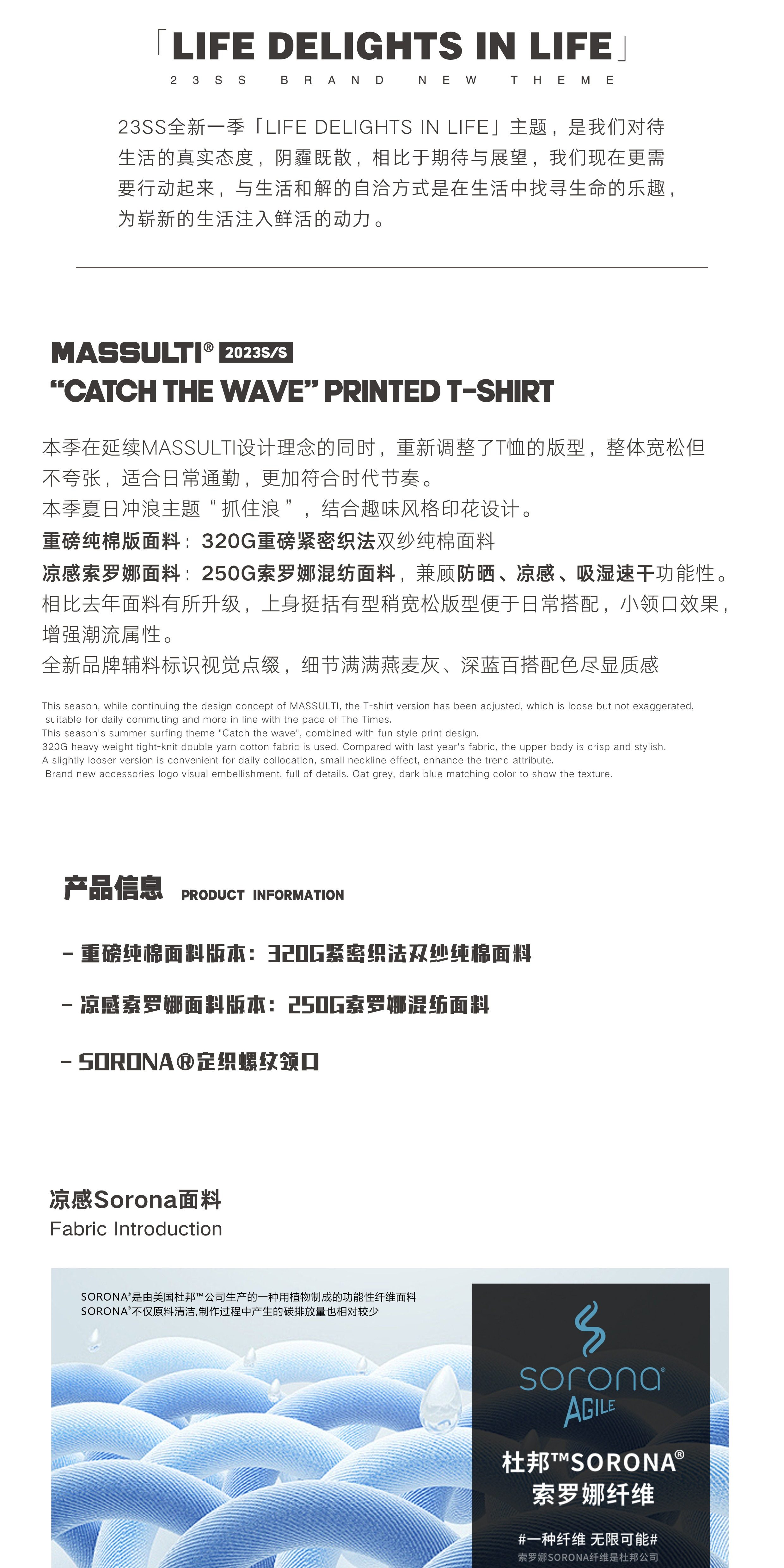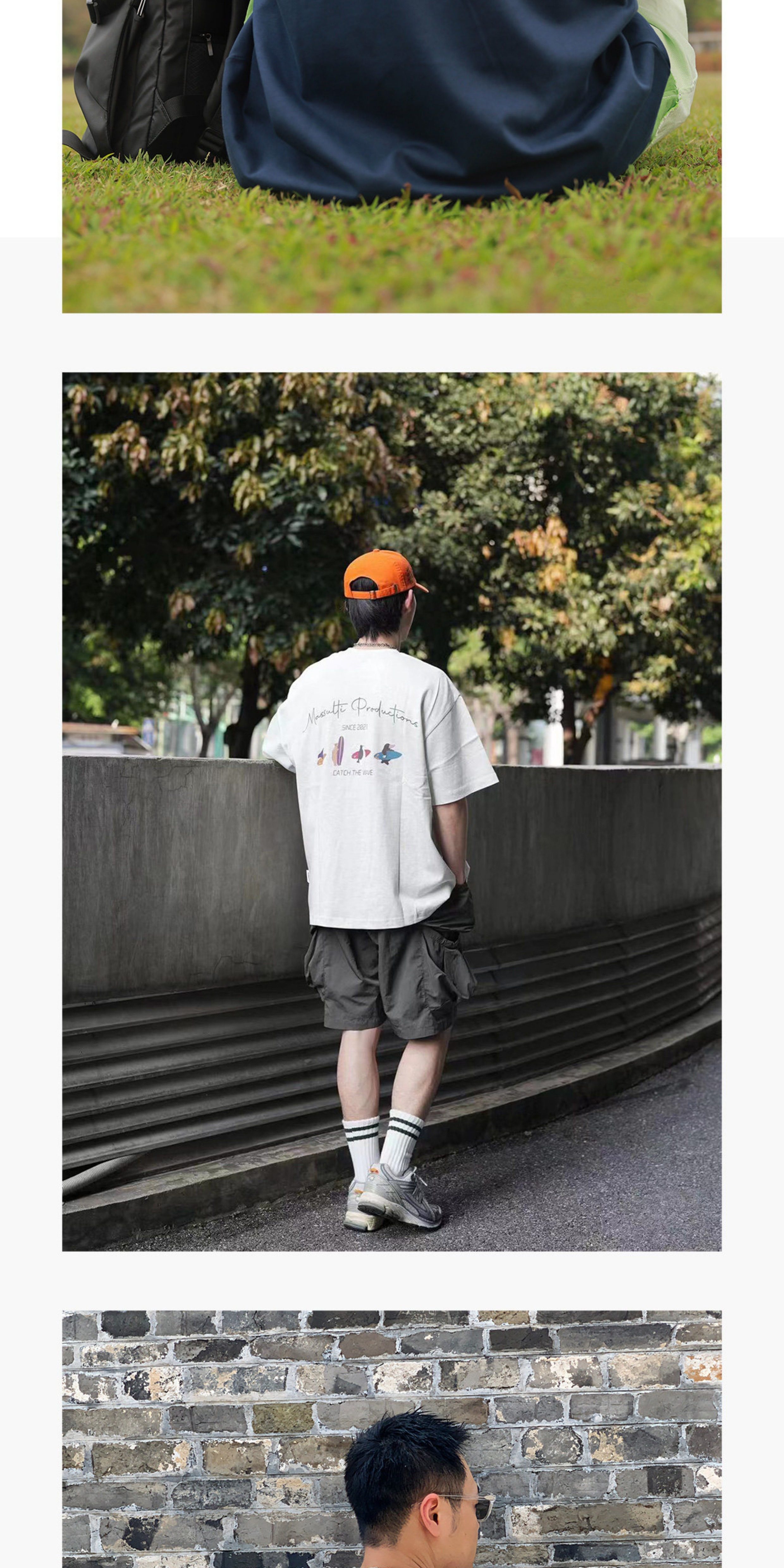 Massulti Japanese Style Summer New Fun Surf Print Loose Tee Base Layer Pure Cotton Heavyweight Short-Sleeve T-Shirt